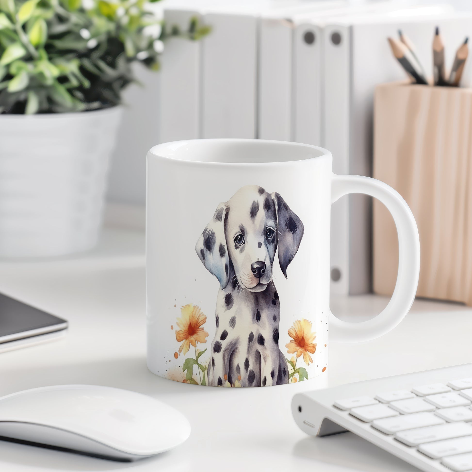 Hrnek s roztomilým dalmatinovým štěnětem je ideální pro milovníky psů a zvířat. Tento hrnek potěší každého, kdo hledá originální dárek pro přátele nebo rodinu. Materiál: keramika. Objem: 330 ml. Vhodné do myčky i mikrovlnky. Díky svému designu přináší radost do každodenního pití.