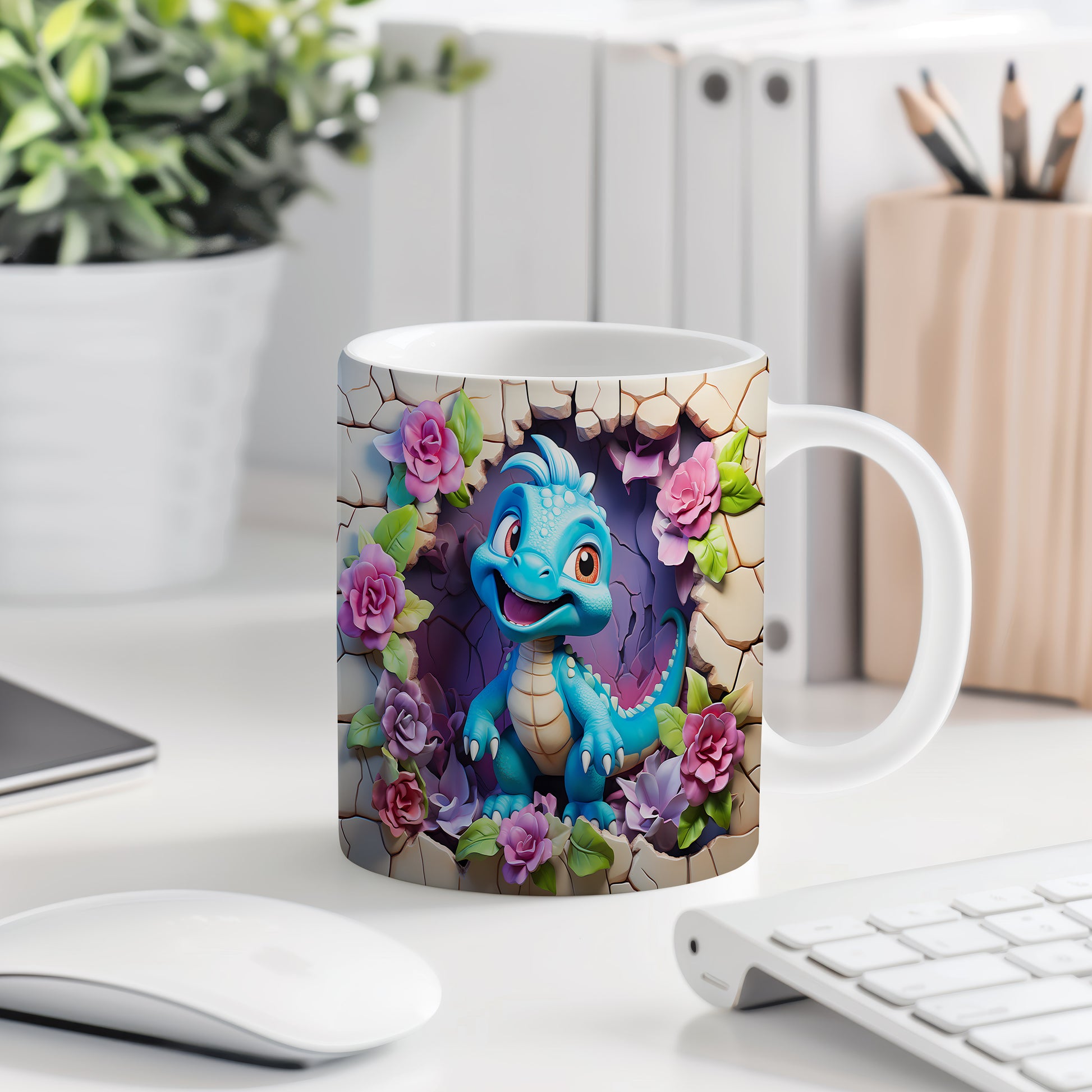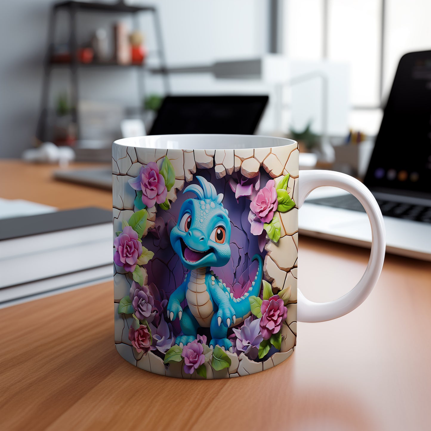 Na hrnku je zobrazen roztomilý modrý dinosaur s širokým úsměvem. Tento hrnek je ideální pro děti i dospělé, kteří mají rádi zábavné motivy. Skvělý tip na dárek pro milovníky dinosaurů. Materiál: keramika. Objem: 330 ml. Vhodné do myčky i mikrovlnky. Používání tohoto hrnku přináší radost a dobrou náladu při každém doušku.
