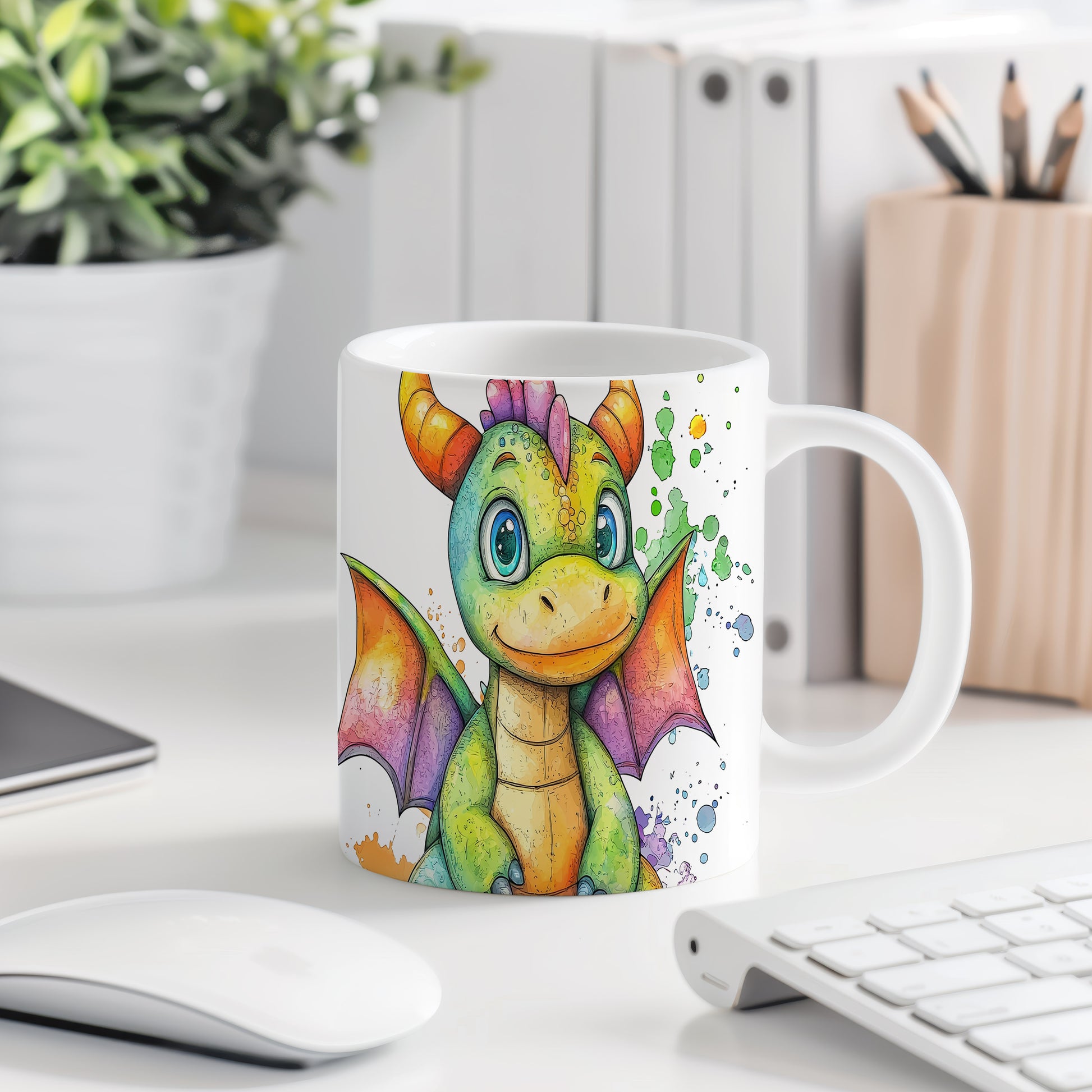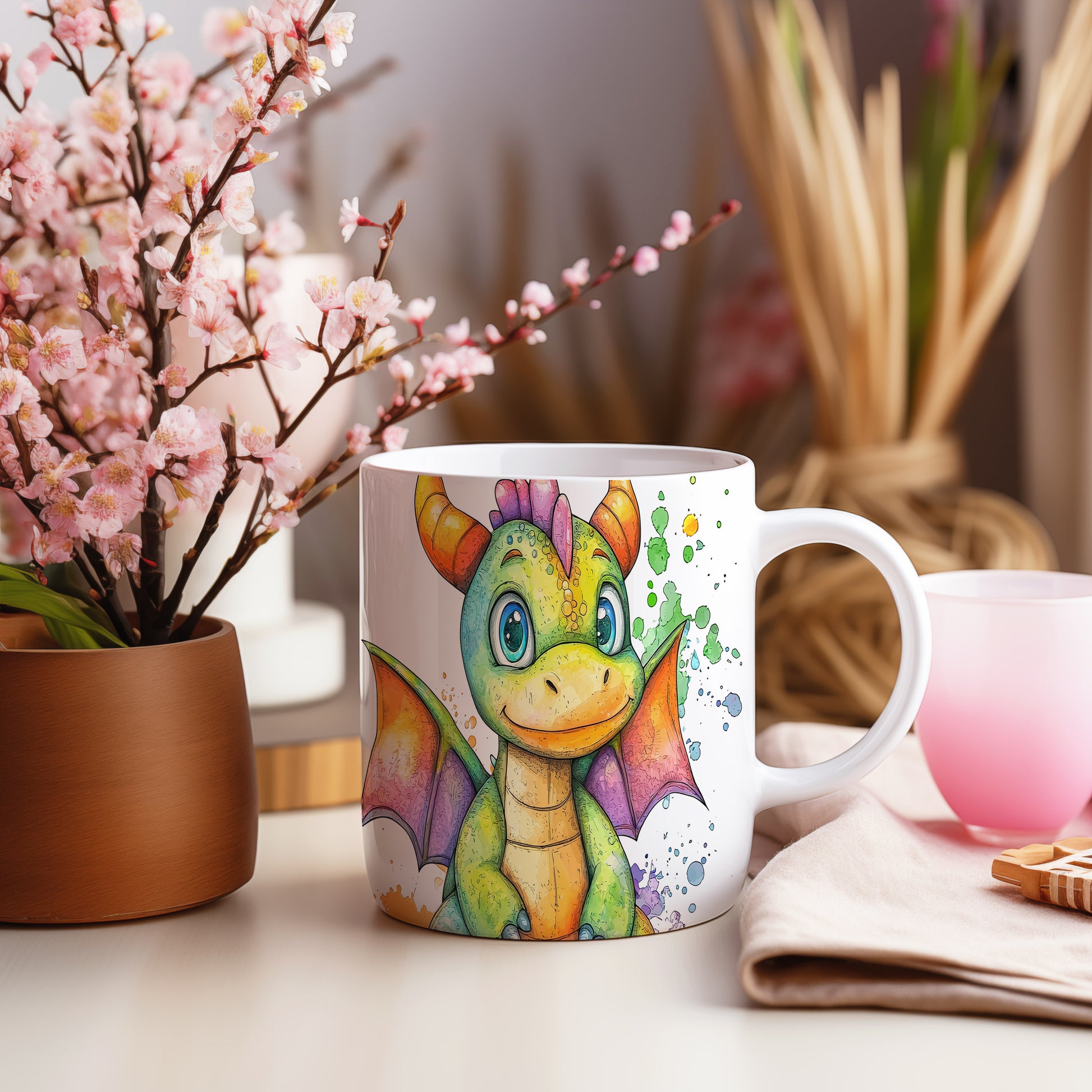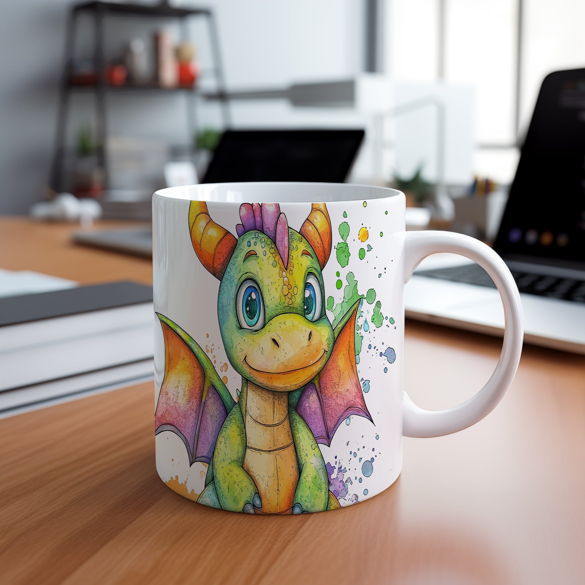 Tento hrnek zobrazuje roztomilého draka s velkýma očima a barevnými křídly. Je ideální pro milovníky fantasy a zábavných designů, skvělý tip na dárek pro děti i dospělé. Materiál: keramika. Objem: 330 ml. Vhodné do myčky i mikrovlnky. Používání tohoto hrnku přináší radost a oživí každé pití.
