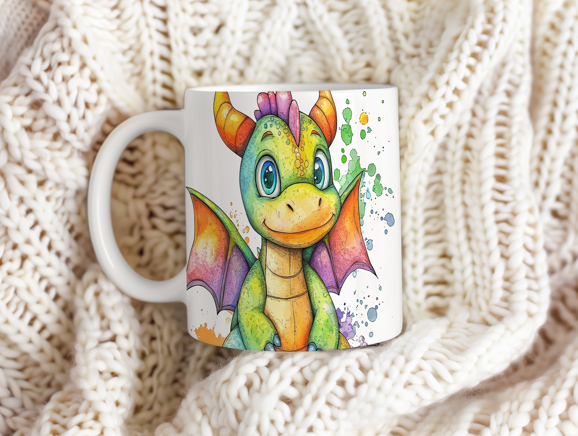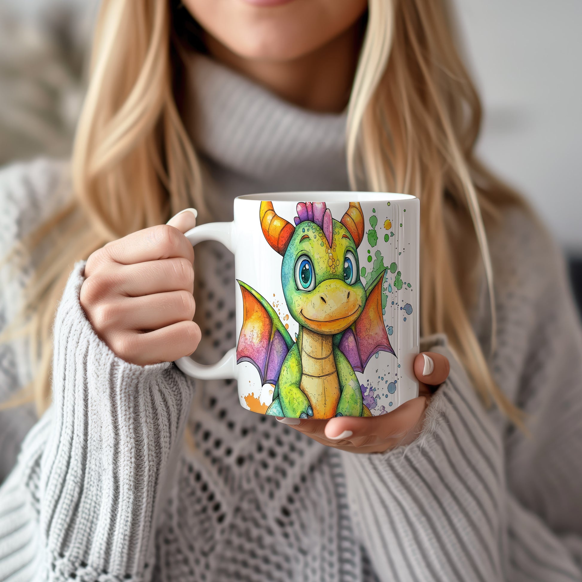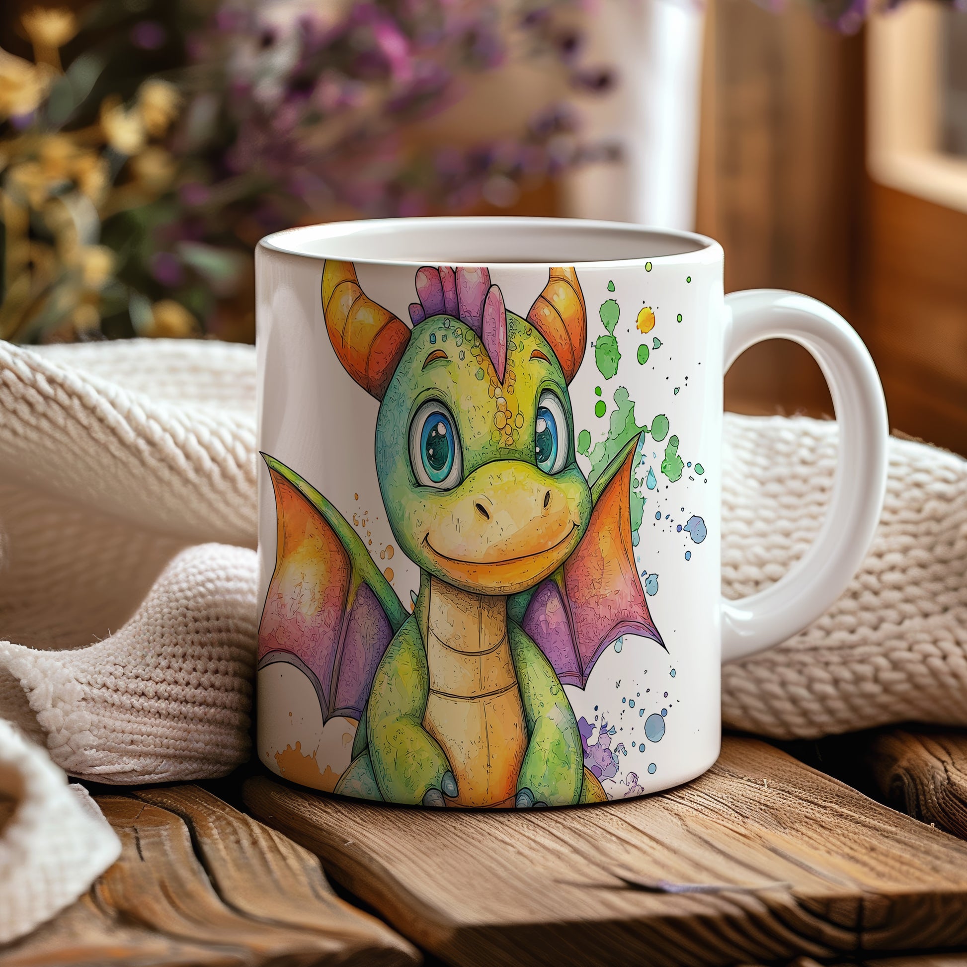 Tento hrnek zobrazuje roztomilého draka s velkýma očima a barevnými křídly. Je ideální pro milovníky fantasy a zábavných designů, skvělý tip na dárek pro děti i dospělé. Materiál: keramika. Objem: 330 ml. Vhodné do myčky i mikrovlnky. Používání tohoto hrnku přináší radost a oživí každé pití.