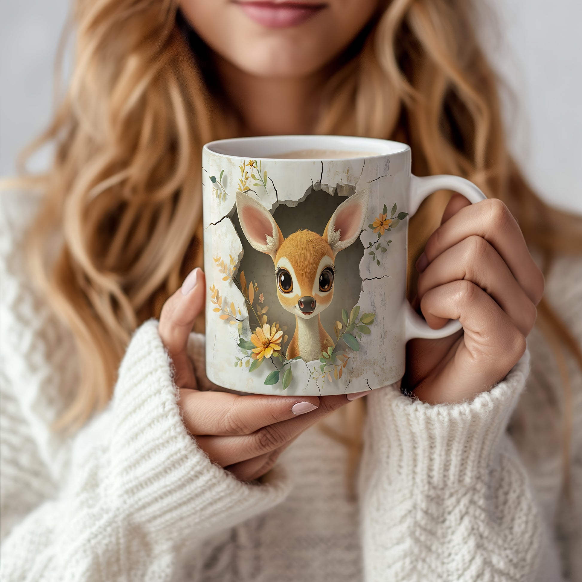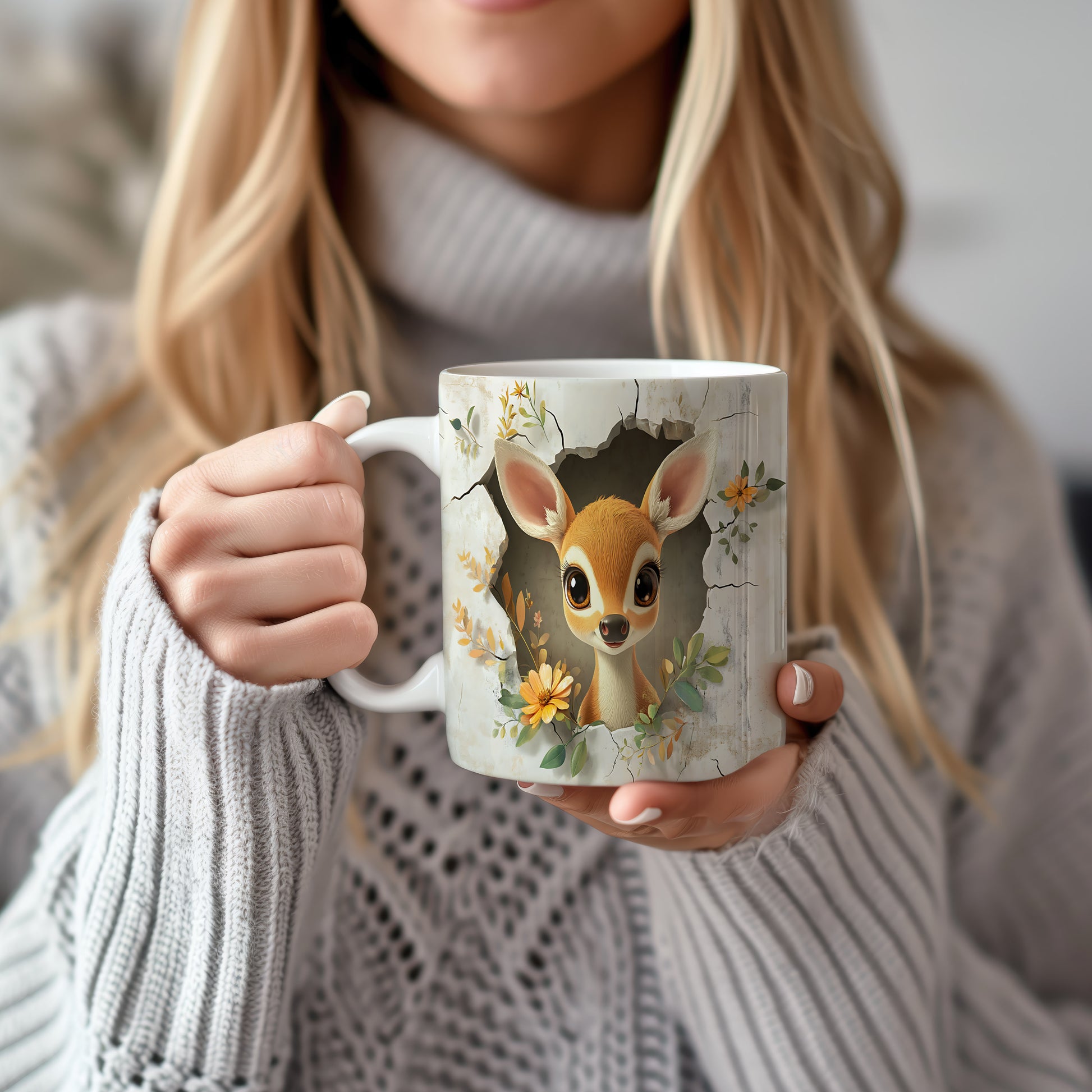Tento keramický hrnek s roztomilým jelenčkem a květinami je ideální volbou pro milovníky přírody. Skvěle se hodí jako dárek pro přátele nebo rodinu, kteří ocení originální design. Materiál: keramika. Objem: 330 ml. Vhodné do myčky i mikrovlnky. Používání tohoto hrnku přináší radost a zútulňuje každé posezení.