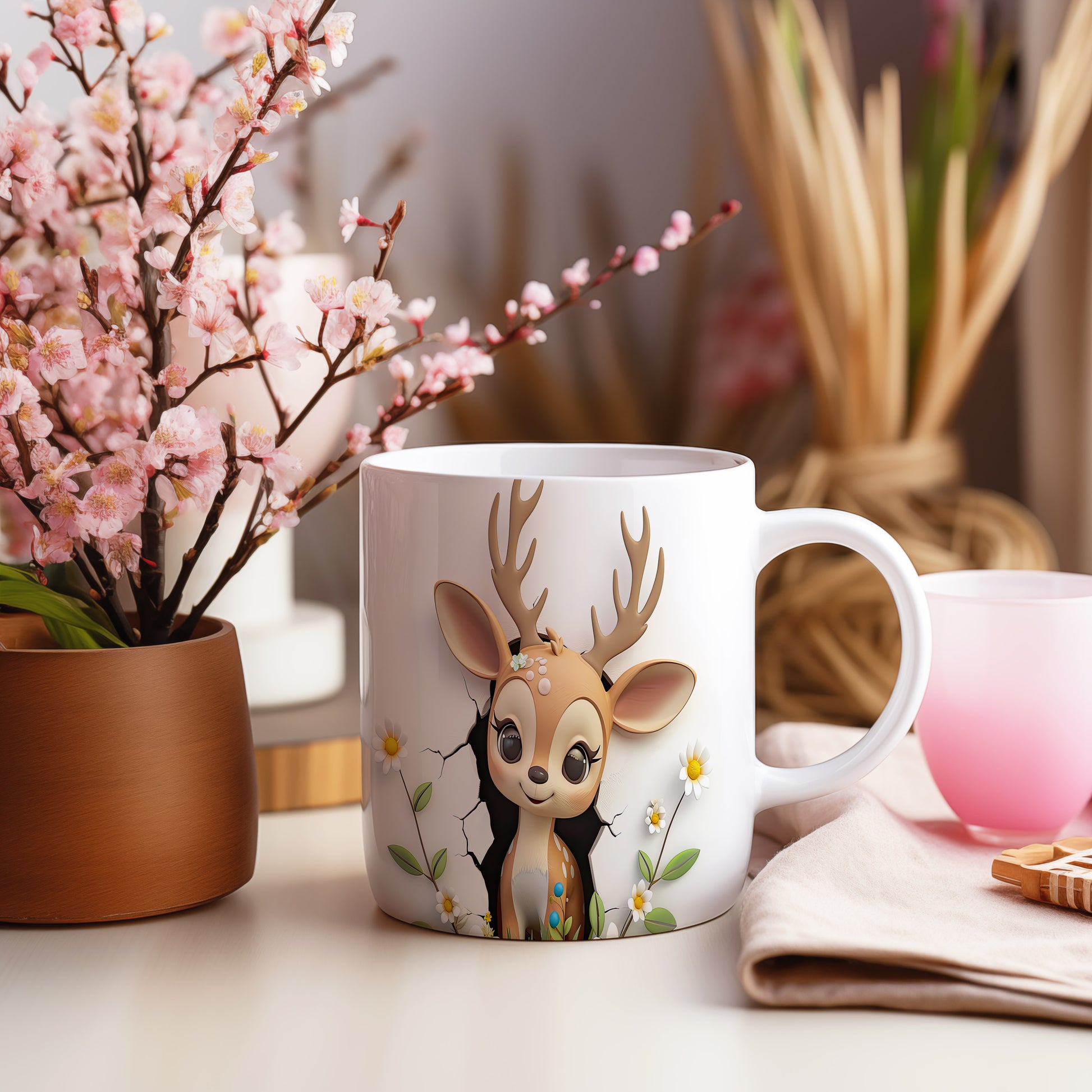 Hrnek s roztomilým jelenem v květinovém stylu je ideální volbou pro milovníky přírody a zvířat. Tento hrnek se skvěle hodí jako dárek pro přátele nebo rodinu, kteří ocení jedinečný design. Materiál: keramika. Objem: 330 ml. Vhodné do myčky i mikrovlnky. Používání tohoto hrnku přináší radost z každého doušku.
