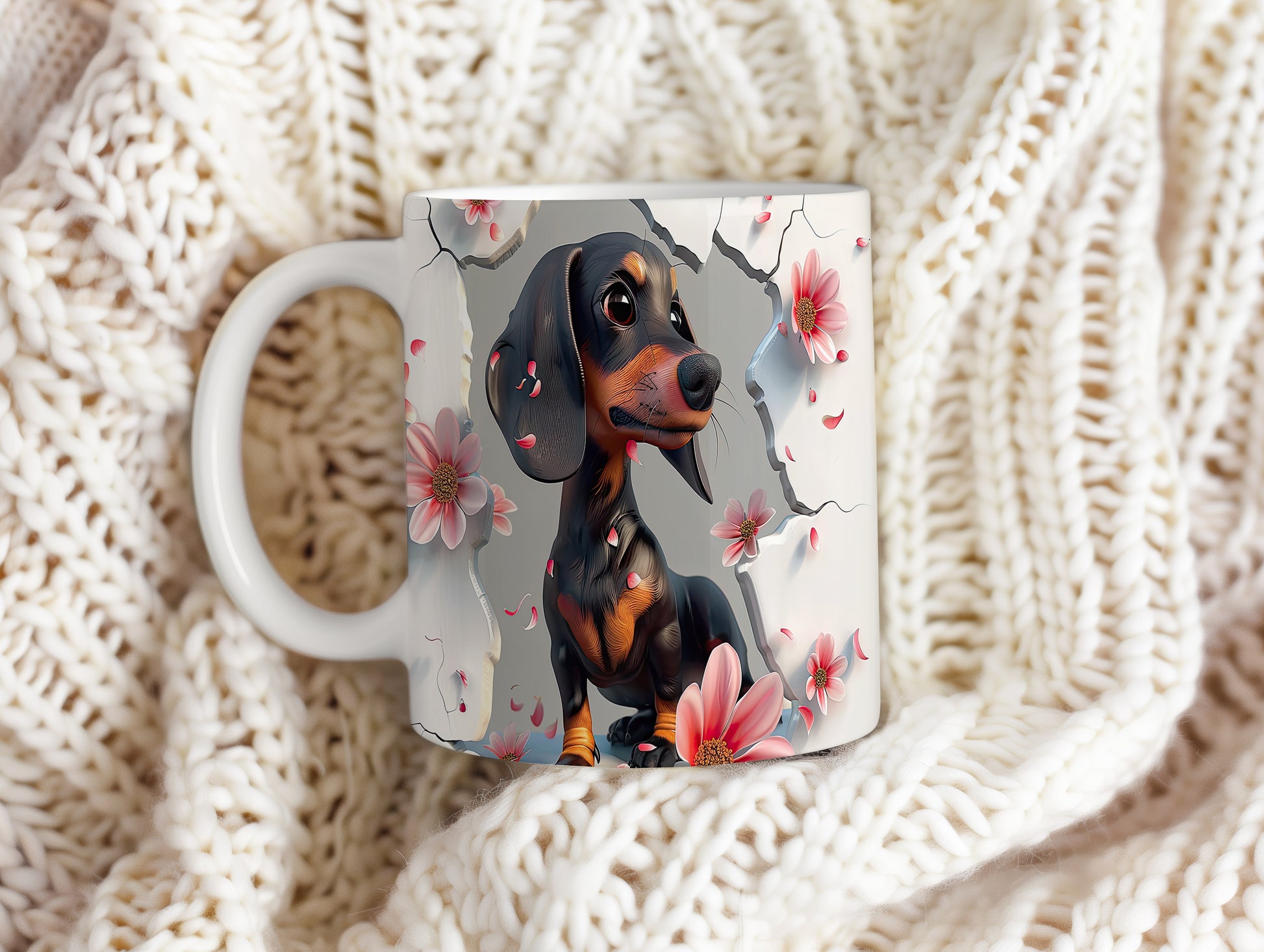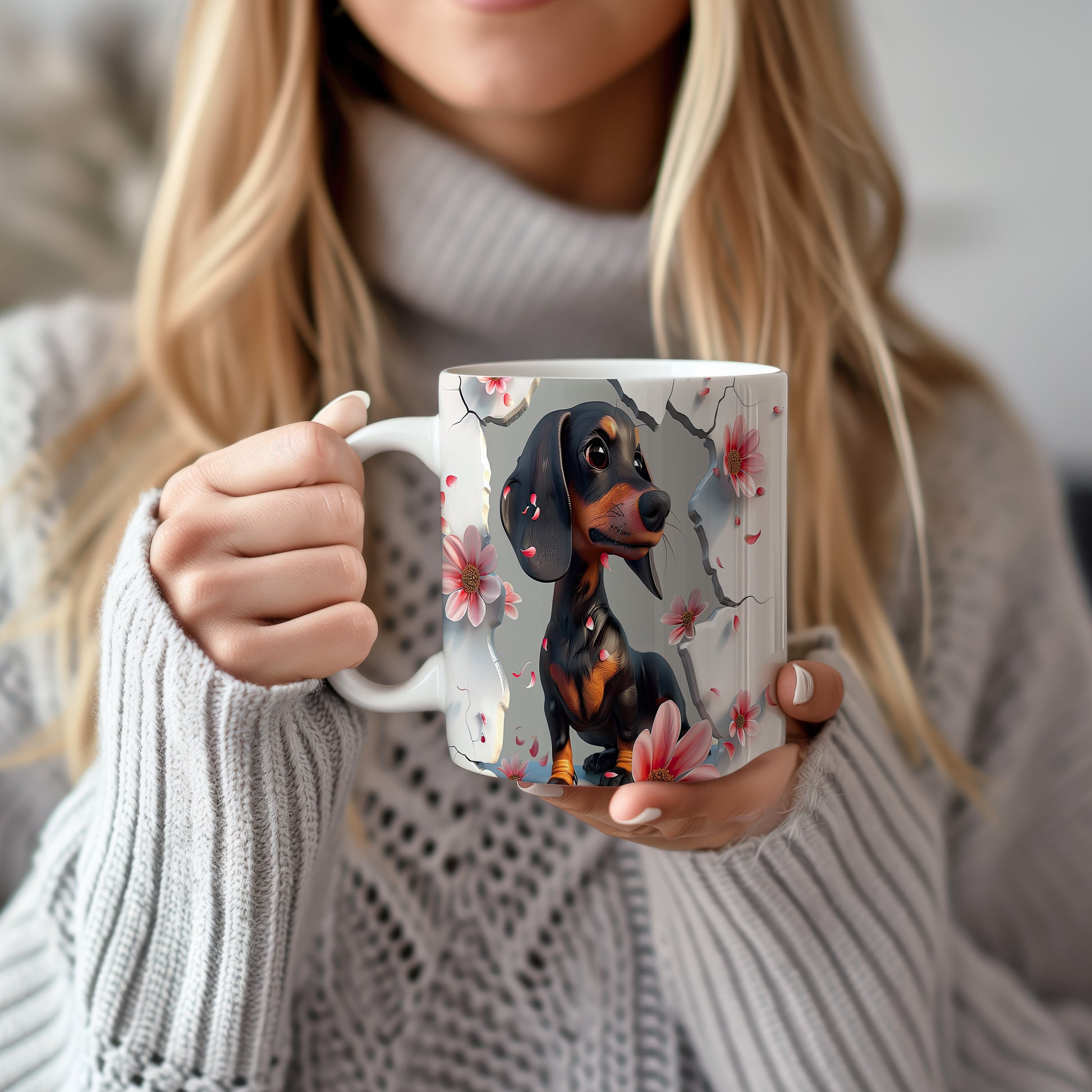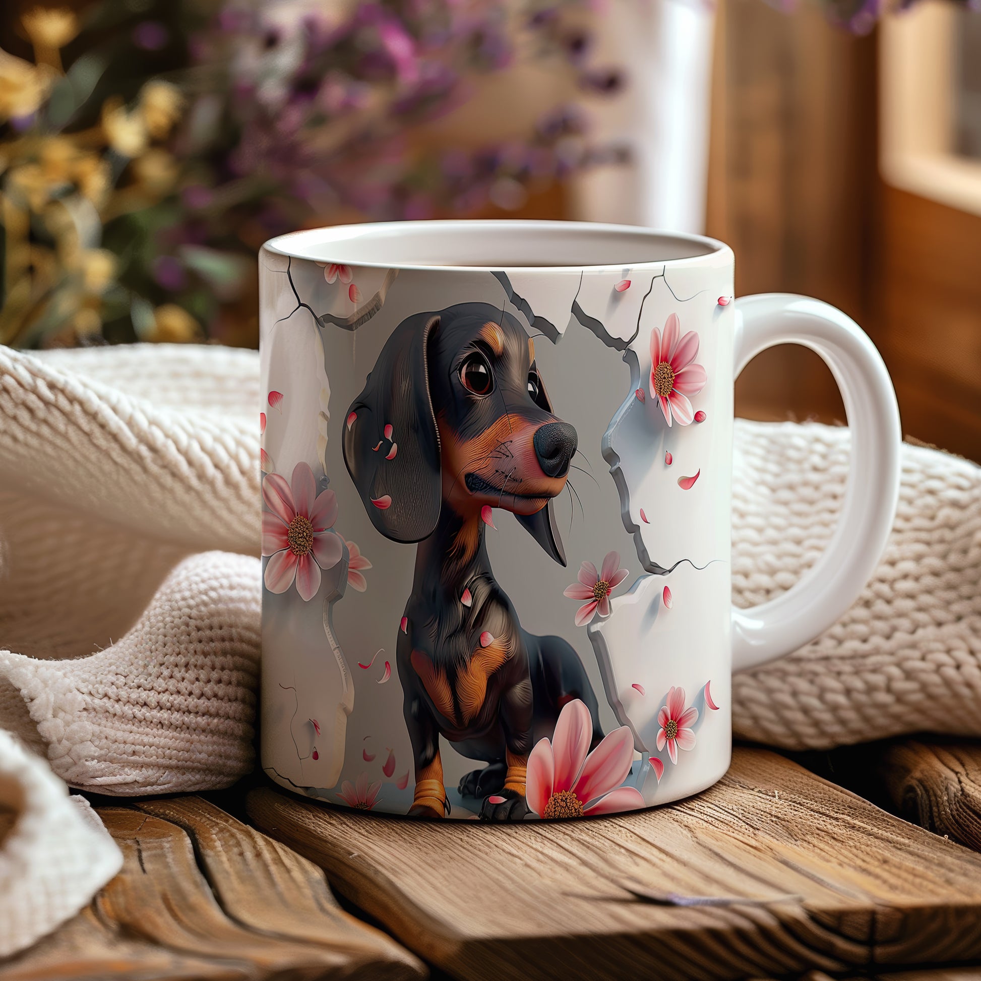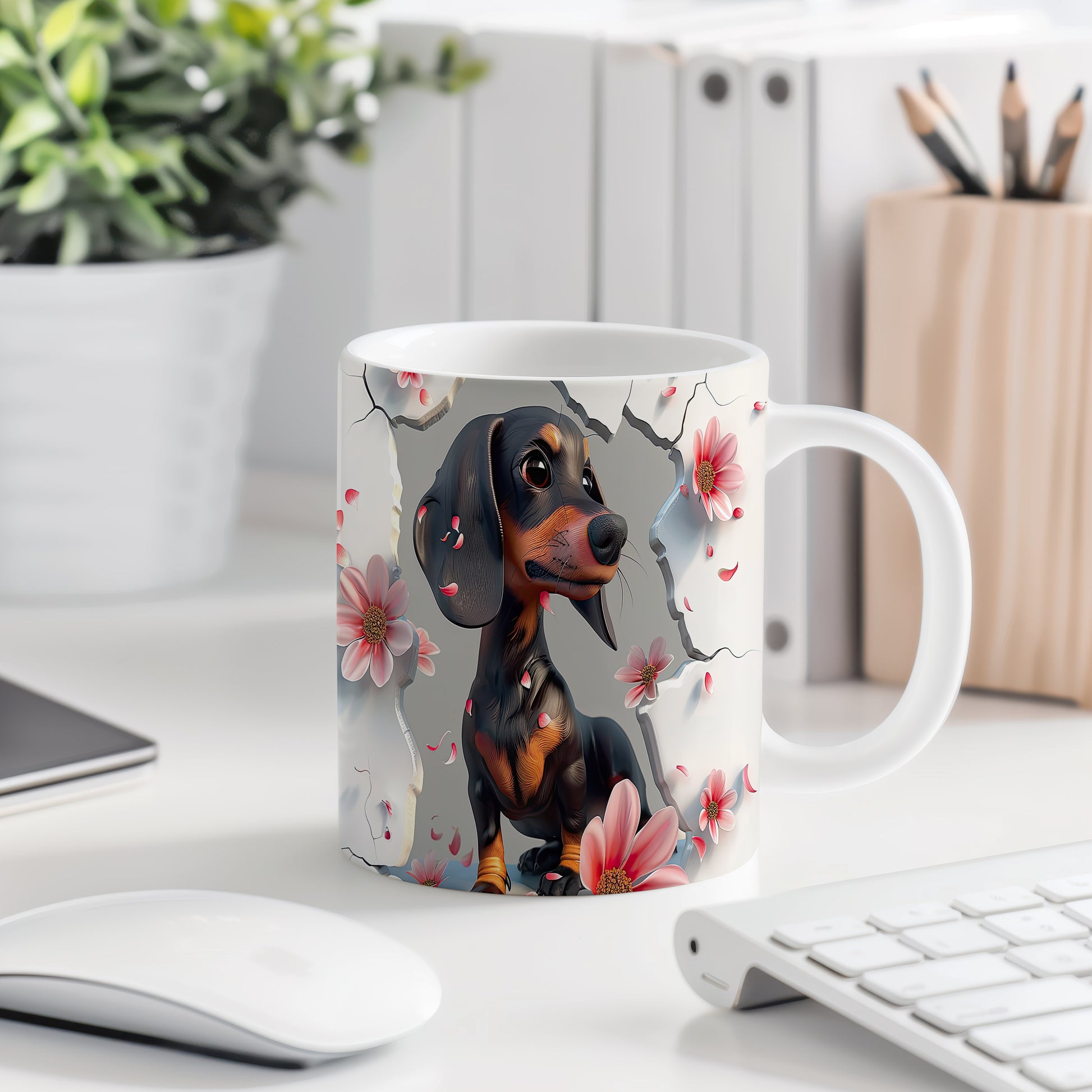 Tento hrnek s motivem roztomilého jezevčíka a květin je skvělou volbou pro milovníky psů. Je ideální jako dárek pro přátele nebo rodinu, kteří mají rádi zvířata. Materiál: keramika. Objem: 330 ml. Vhodné do myčky i mikrovlnky. S tímto hrnkem si můžete vychutnat svůj oblíbený nápoj s úsměvem.
