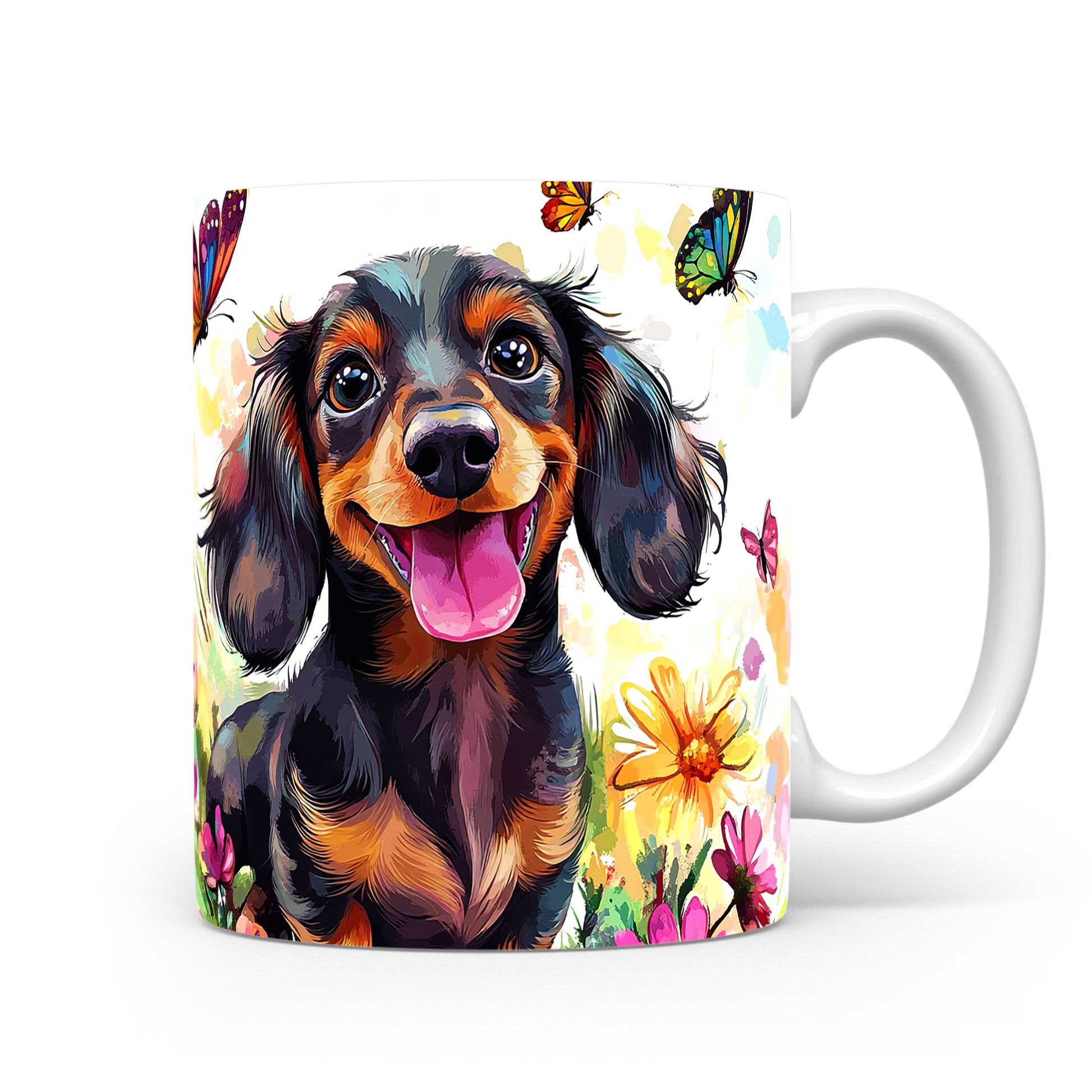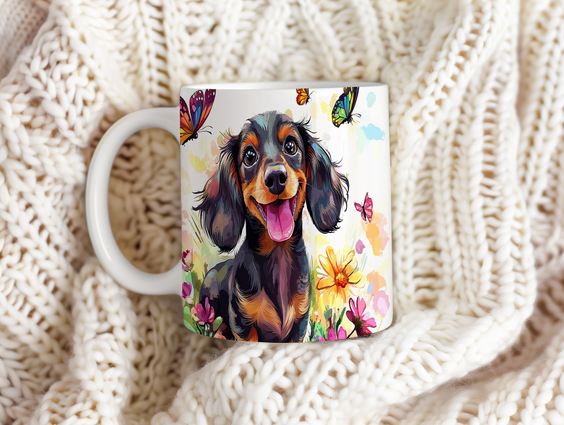 Hrnek s roztomilým jezevčíkem – modrými detaily