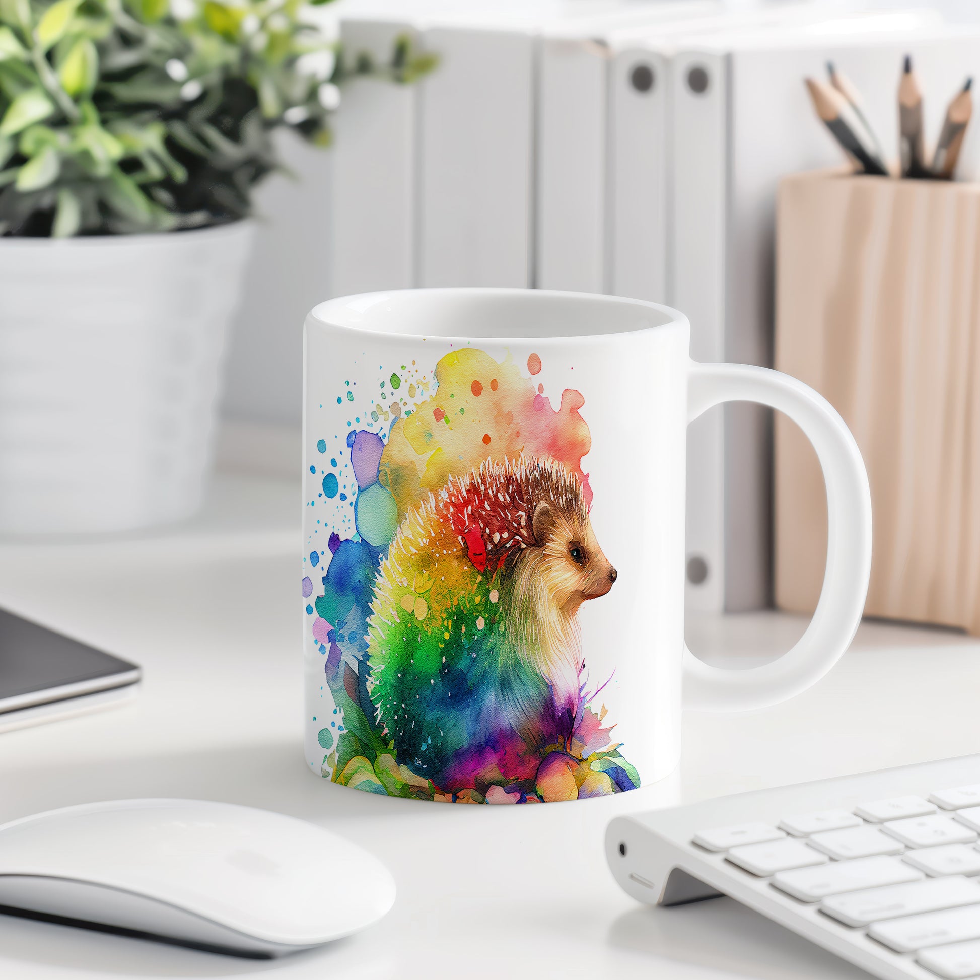 Hrnek s roztomilým ježkem v duhových barvách je skvělým doplňkem pro každého milovníka přírody. Tento hrnek je ideální jako dárek pro děti i dospělé, kteří ocení jeho veselý design. Materiál: keramika. Objem: 330 ml. Vhodné do myčky i mikrovlnky. Používání tohoto hrnku přináší radost a pozitivní energii do každodenního pití.