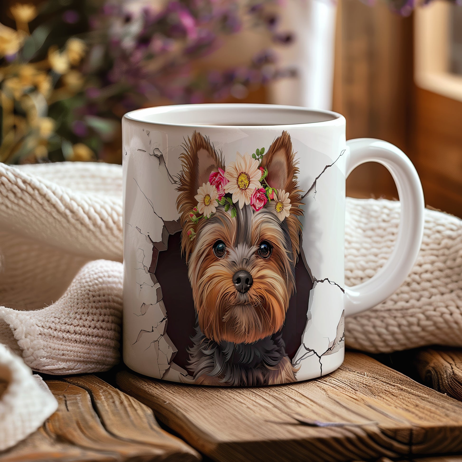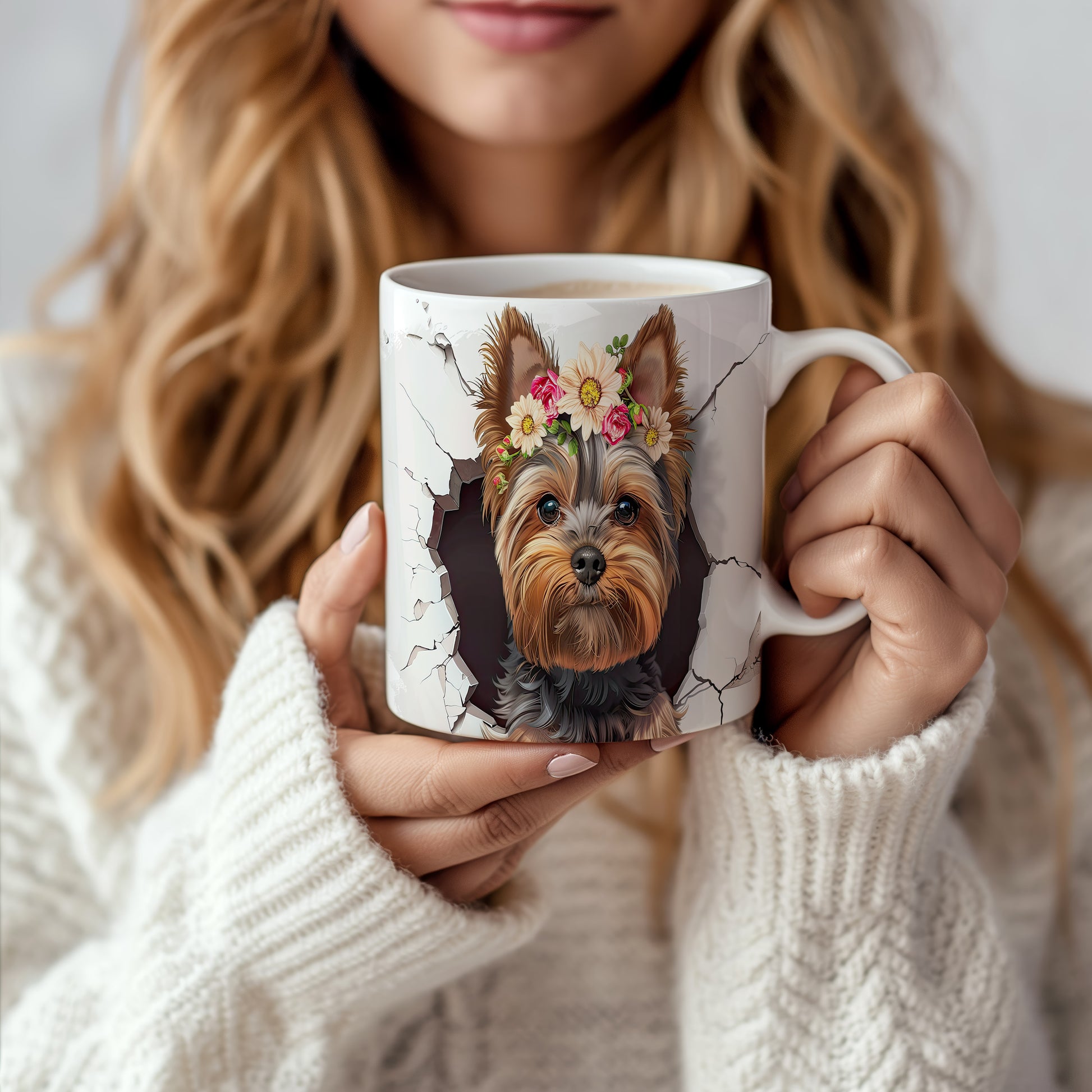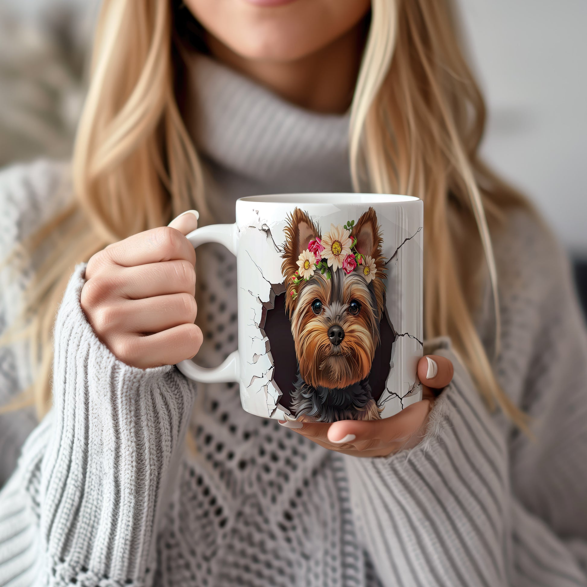 Tento hrnek zobrazuje roztomilého jorkšírského teriéra, ideální pro milovníky psů a domácích mazlíčků. Skvělý tip na dárek pro přátele nebo rodinu, kteří ocení originální design. Materiál: keramika. Objem: 330 ml. Vhodné do myčky i mikrovlnky. Používání tohoto hrnku přináší radost a útulnost do každodenního pití.