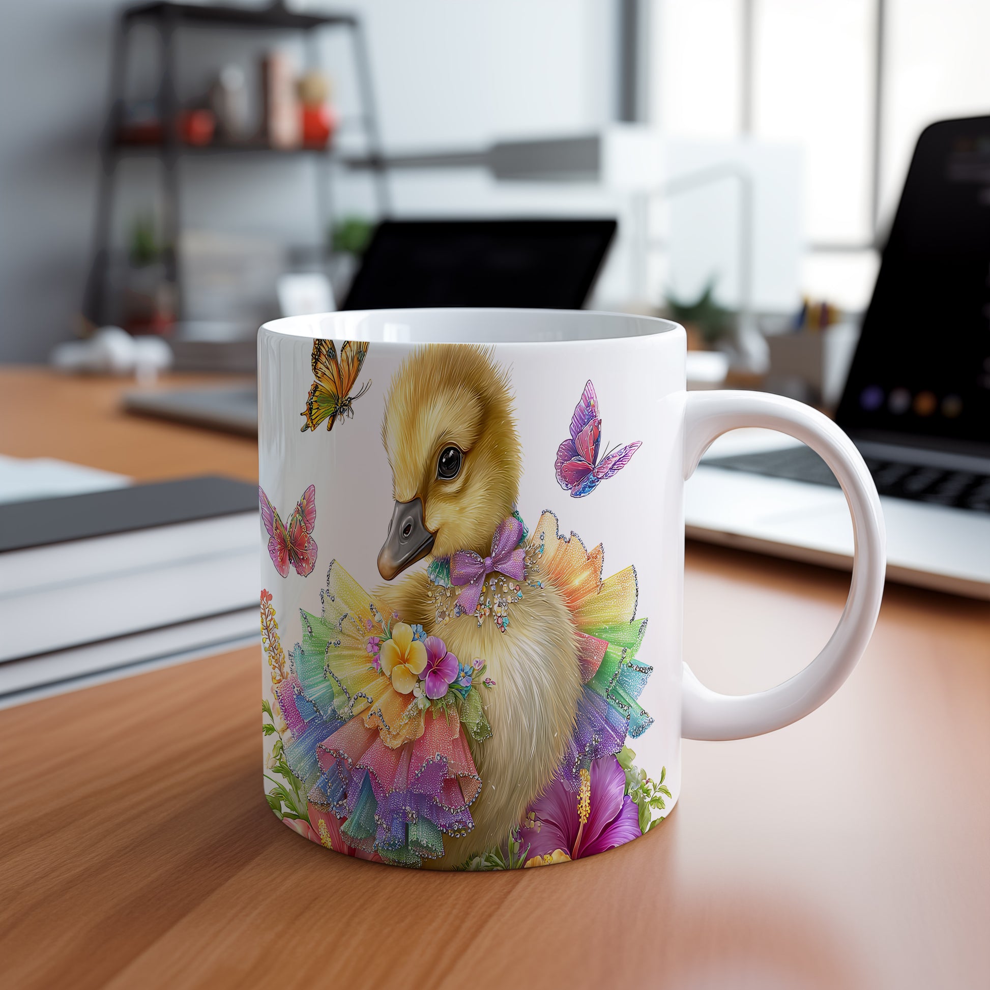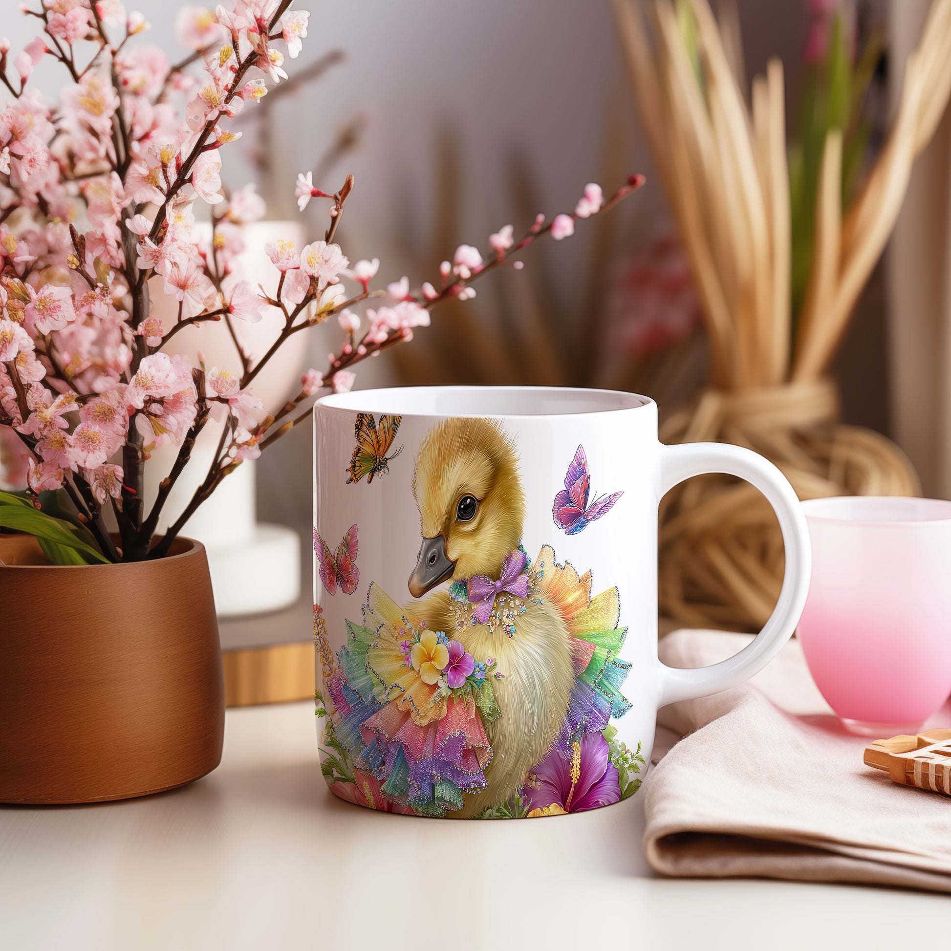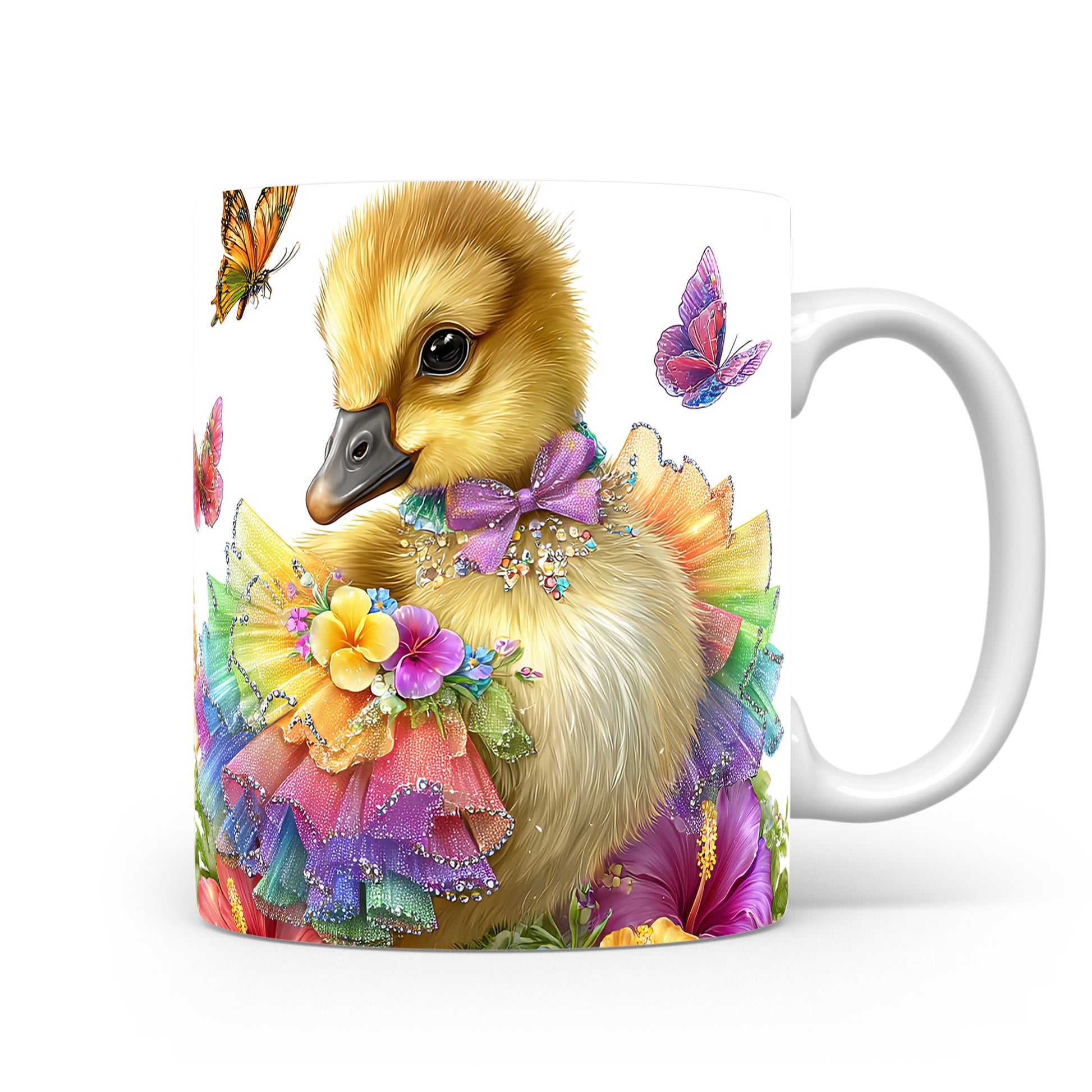 Na hrnku je vyobrazeno roztomilé kachňátko v barevném kostýmu s květinami a mašlí. Tento hrnek je ideální pro milovníky zvířat a skvělým dárkem pro děti i dospělé. Materiál: keramika. Objem: 330 ml. Vhodné do myčky i mikrovlnky. Používání tohoto hrnku přináší radost a oživí každé ráno.