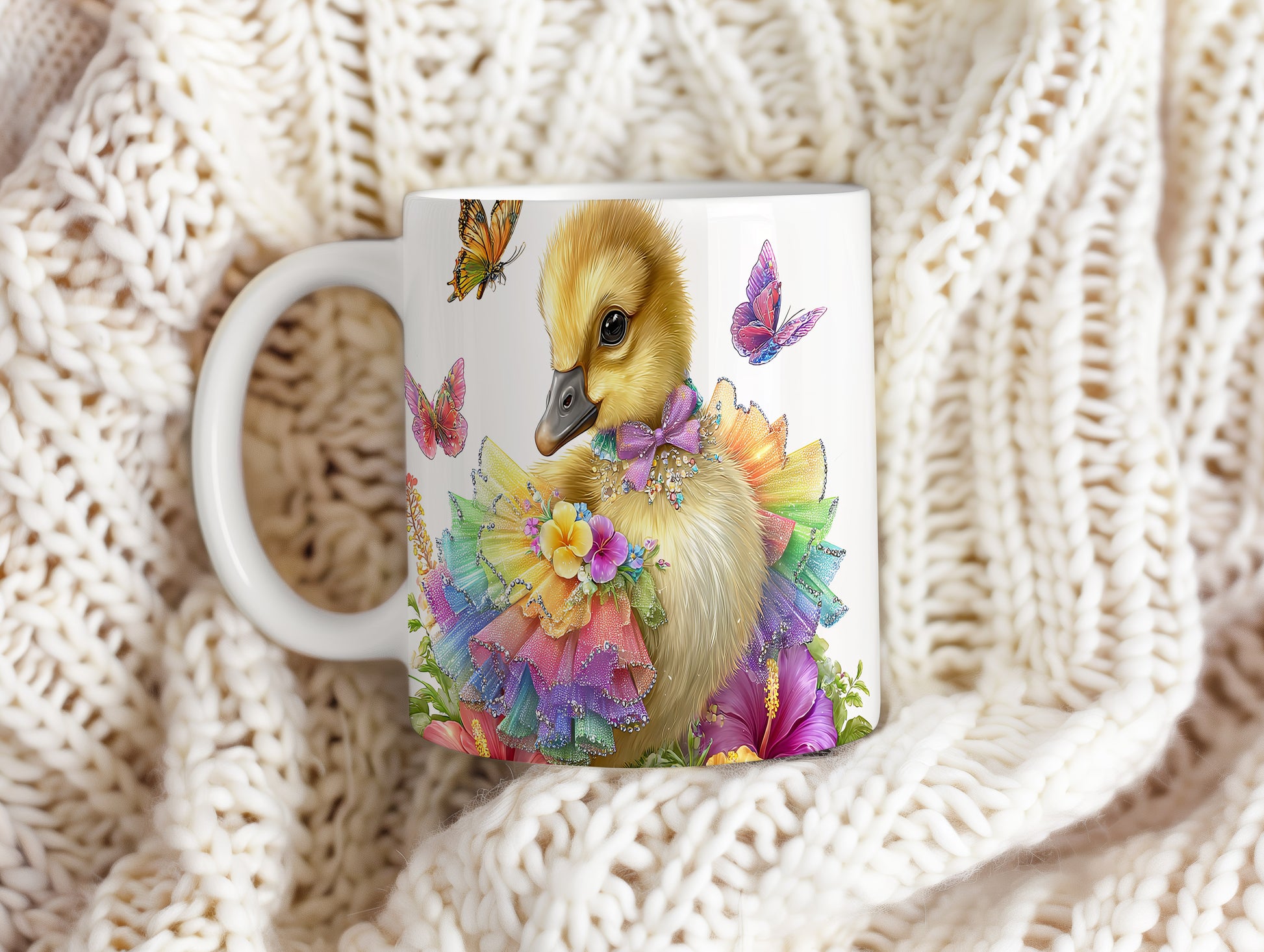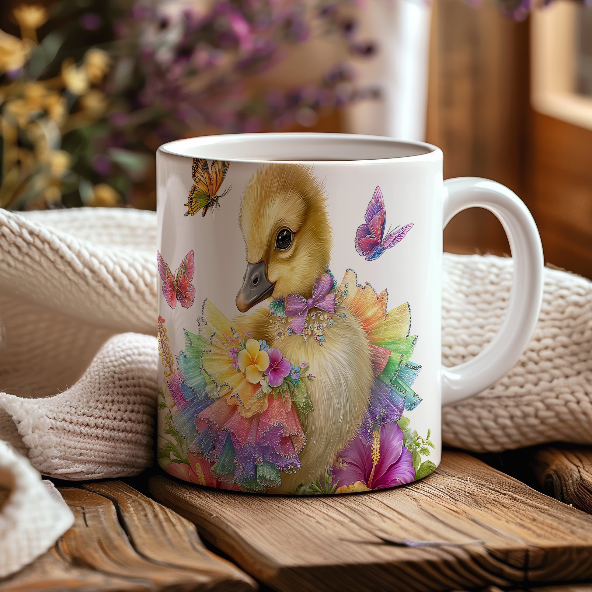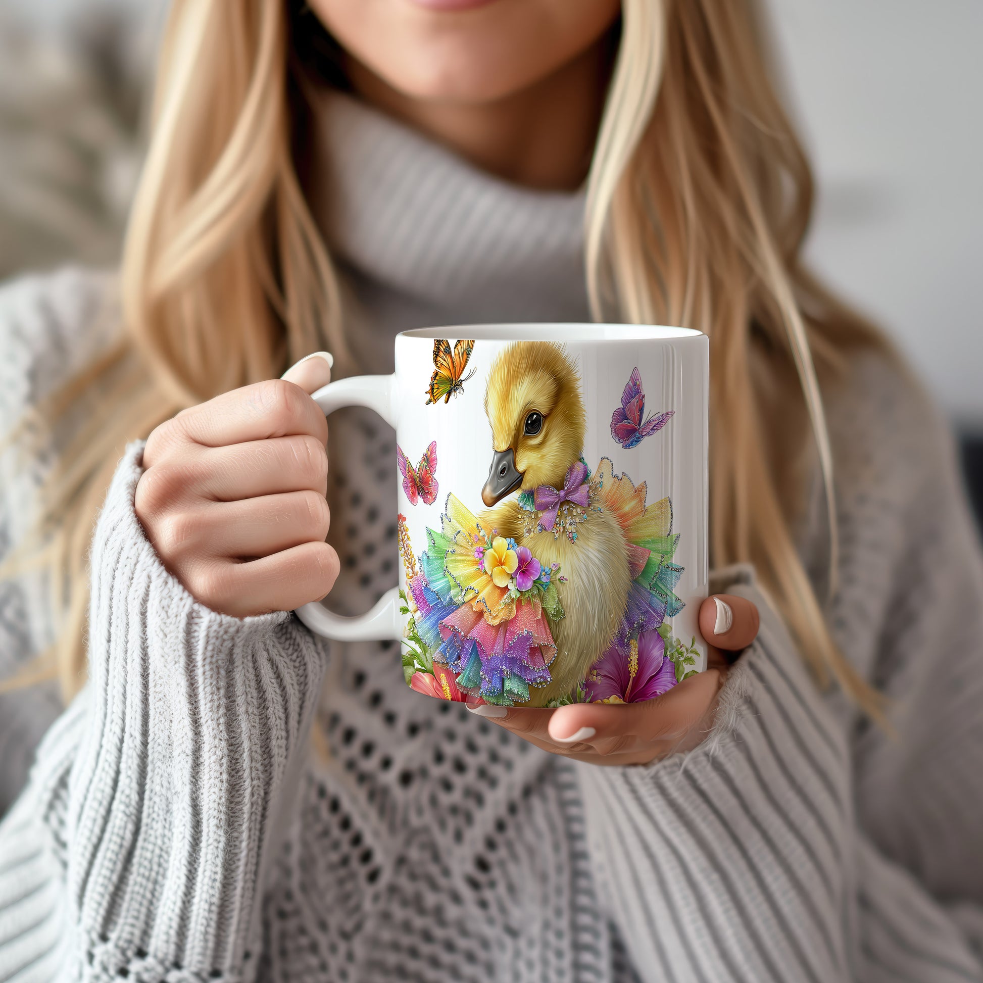 Na hrnku je vyobrazeno roztomilé kachňátko v barevném kostýmu s květinami a mašlí. Tento hrnek je ideální pro milovníky zvířat a skvělým dárkem pro děti i dospělé. Materiál: keramika. Objem: 330 ml. Vhodné do myčky i mikrovlnky. Používání tohoto hrnku přináší radost a oživí každé ráno.