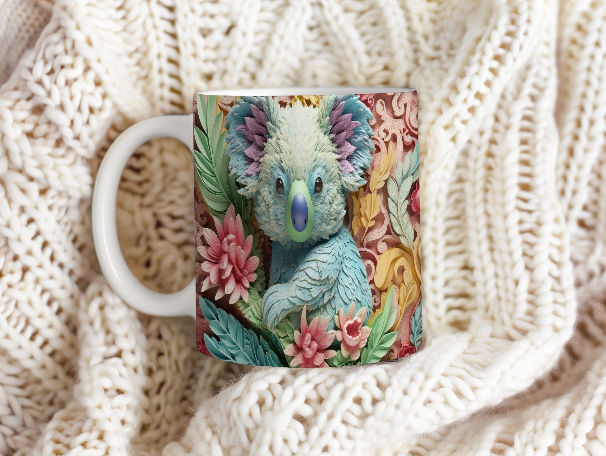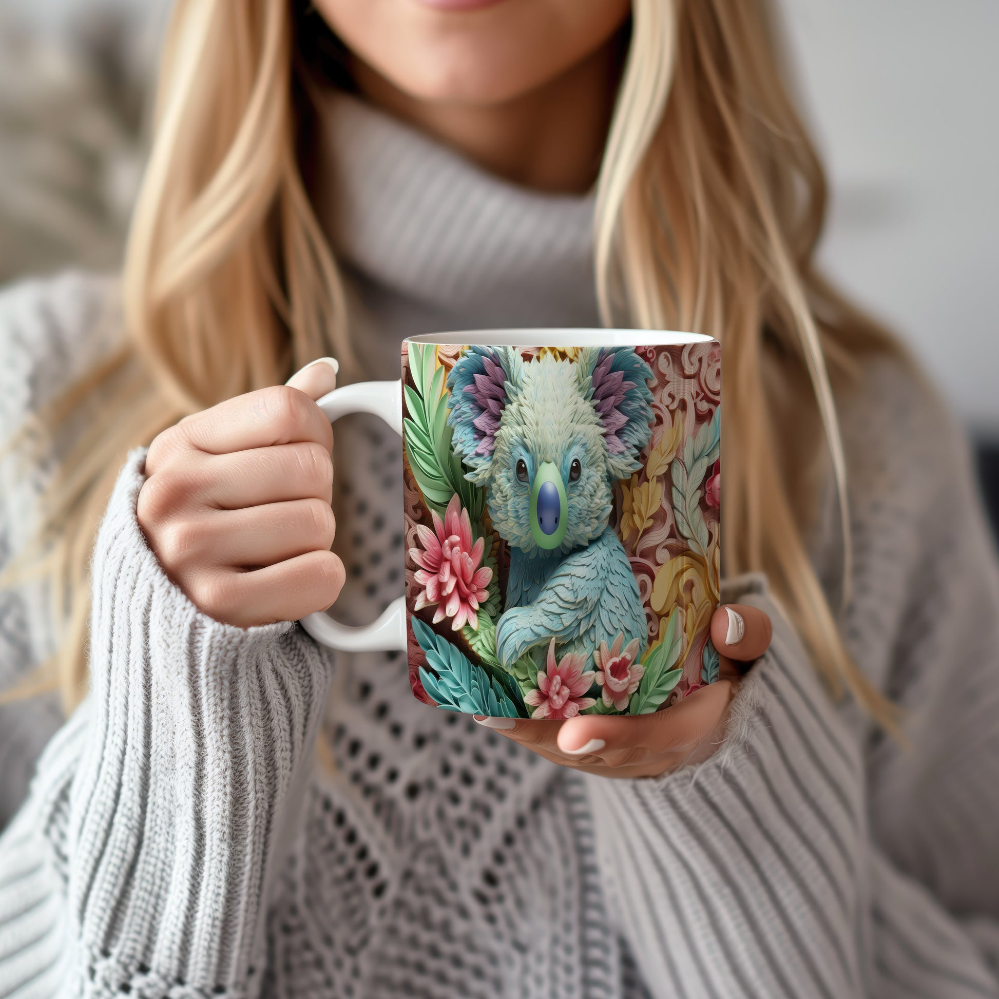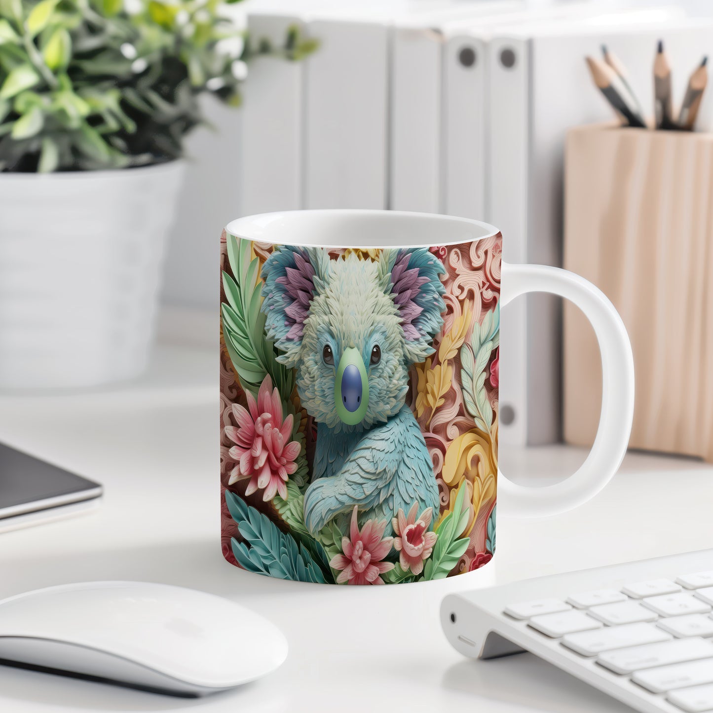 Tento hrnek zobrazuje roztomilého koalu obklopeného květinami v jasných barvách. Je ideální pro milovníky zvířat a přírody, skvělý tip na dárek pro každého, kdo má rád přírodu. Materiál: keramika. Objem: 330 ml. Vhodné do myčky i mikrovlnky. Používání tohoto hrnku přináší radost a barevnost do každodenního pití.