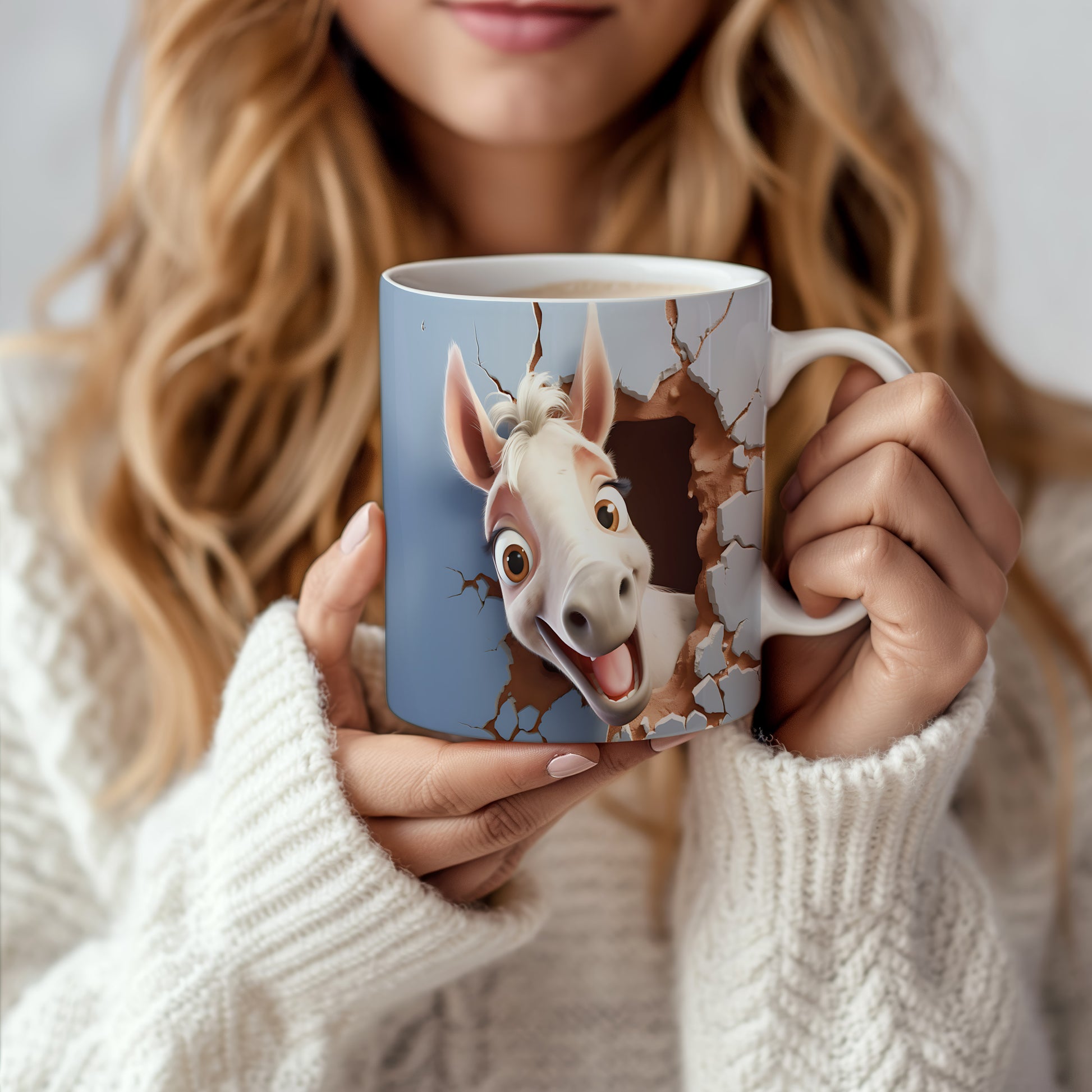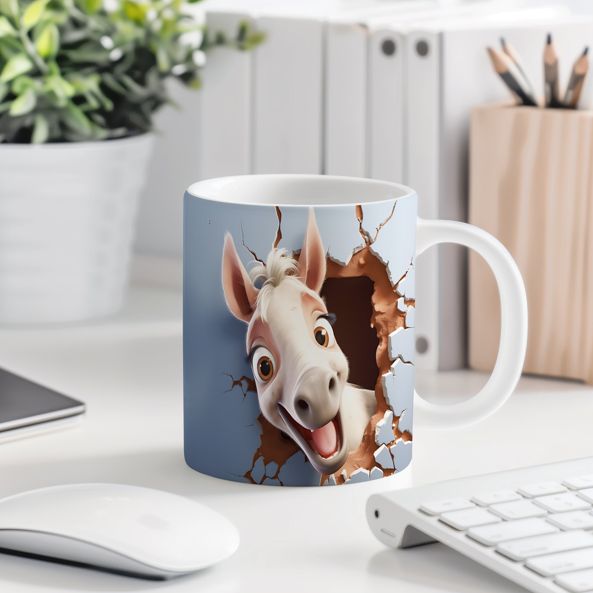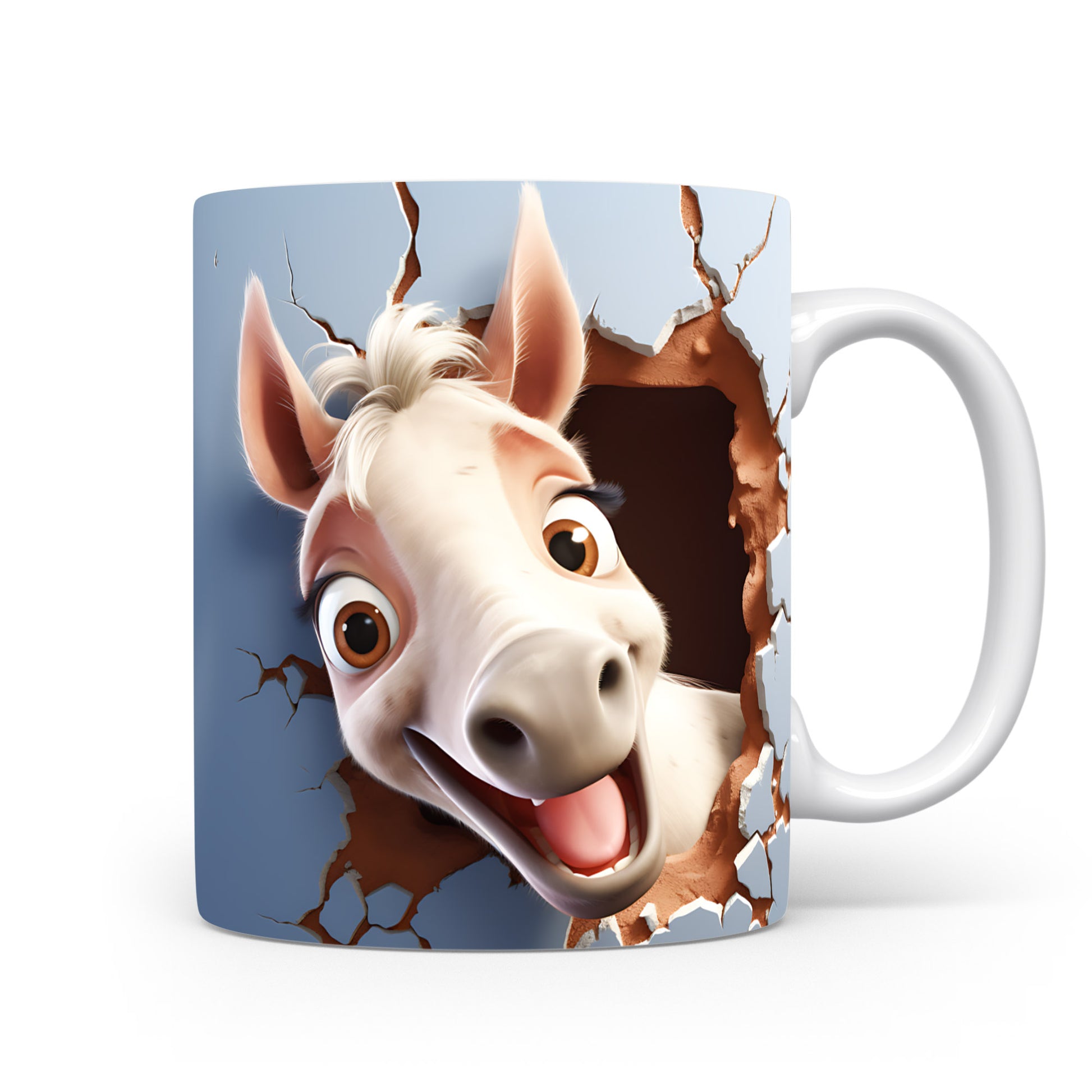 Hrnek s motivem roztomilého koně v 3D efektu je ideální pro milovníky zvířat a přírody. Skvělý tip na dárek pro děti nebo jako dekoraci do pokoje. Materiál: keramika. Objem: 330 ml. Vhodné do myčky i mikrovlnky. Tento hrnek přináší radost a oživí každé pití.