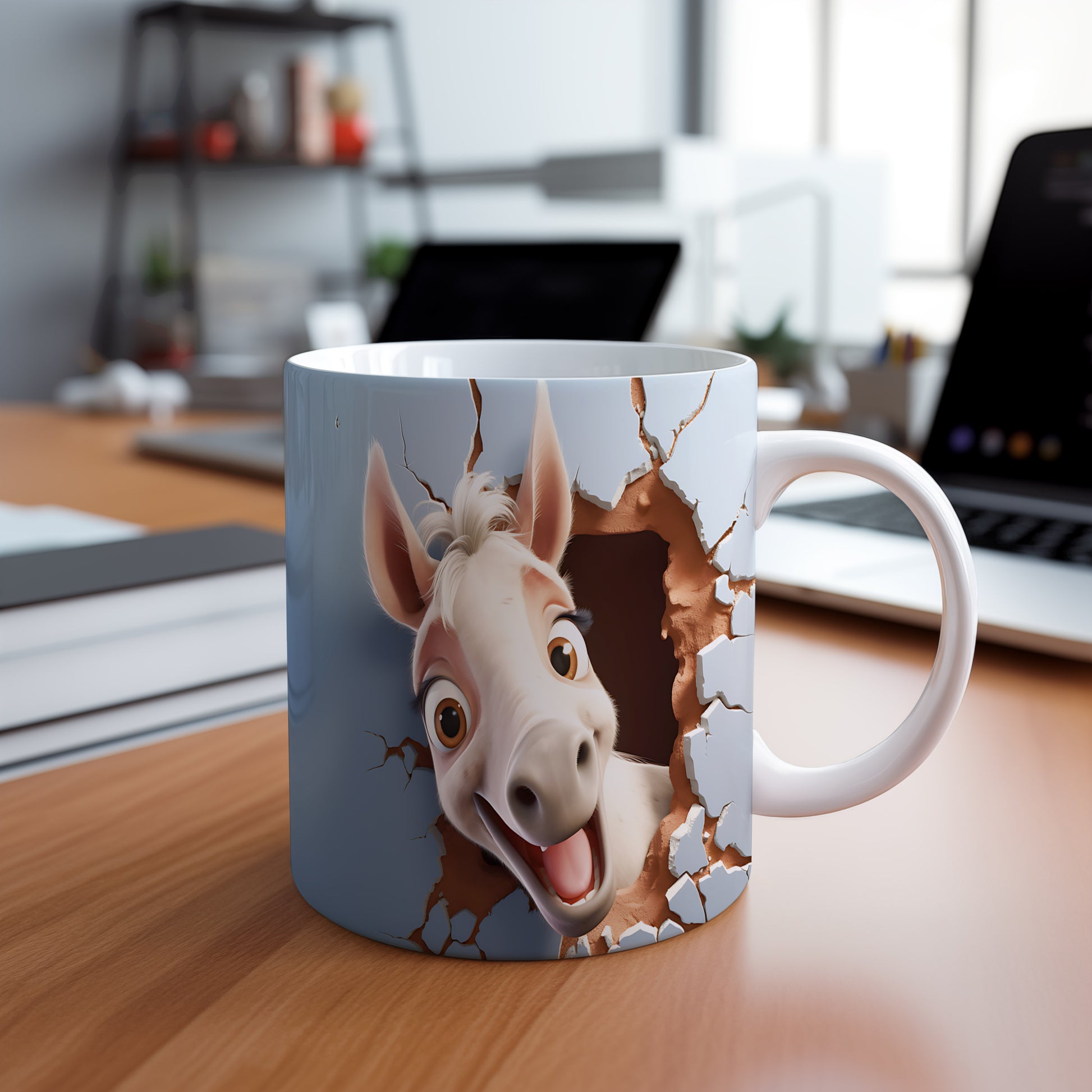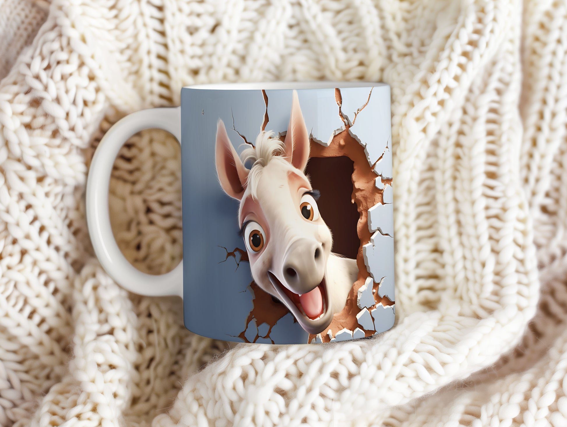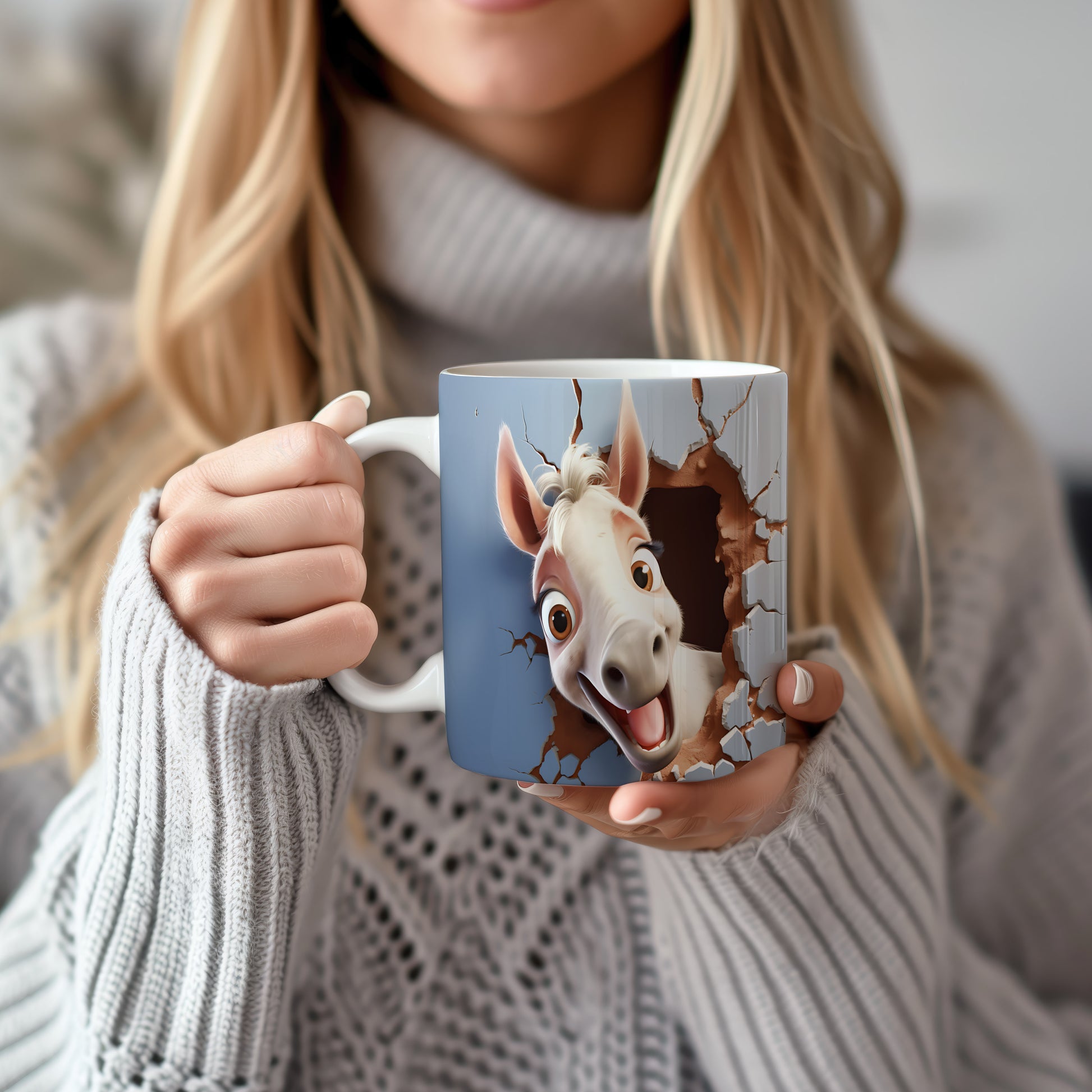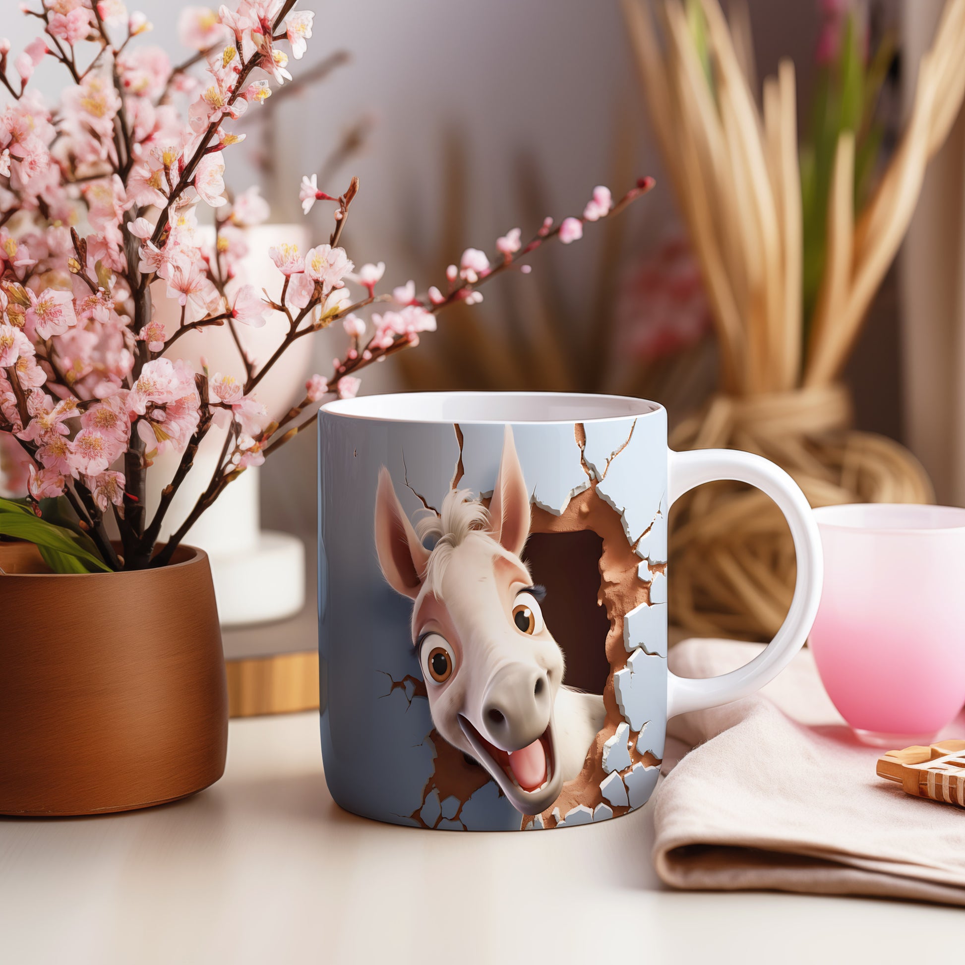 Hrnek s motivem roztomilého koně v 3D efektu je ideální pro milovníky zvířat a přírody. Skvělý tip na dárek pro děti nebo jako dekoraci do pokoje. Materiál: keramika. Objem: 330 ml. Vhodné do myčky i mikrovlnky. Tento hrnek přináší radost a oživí každé pití.