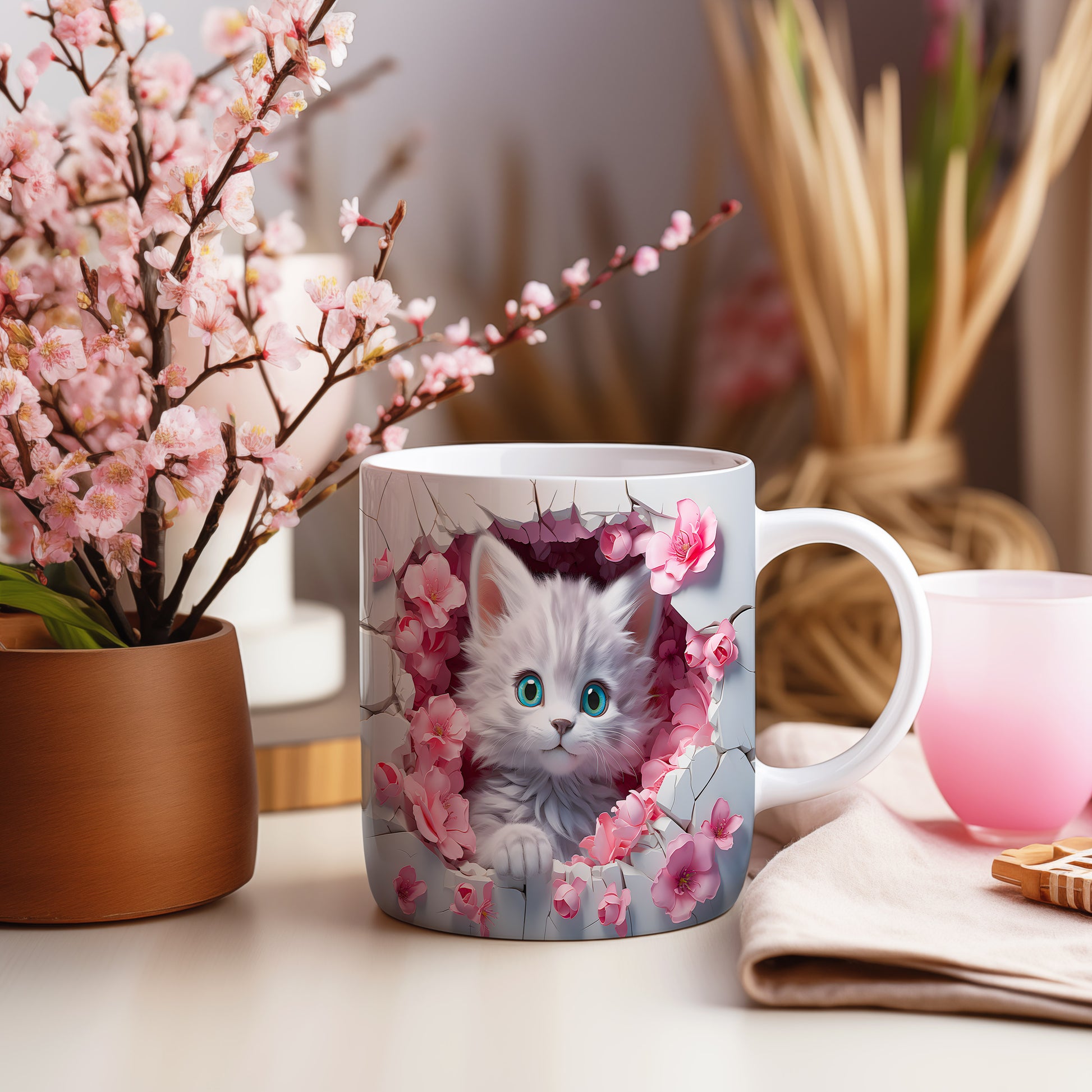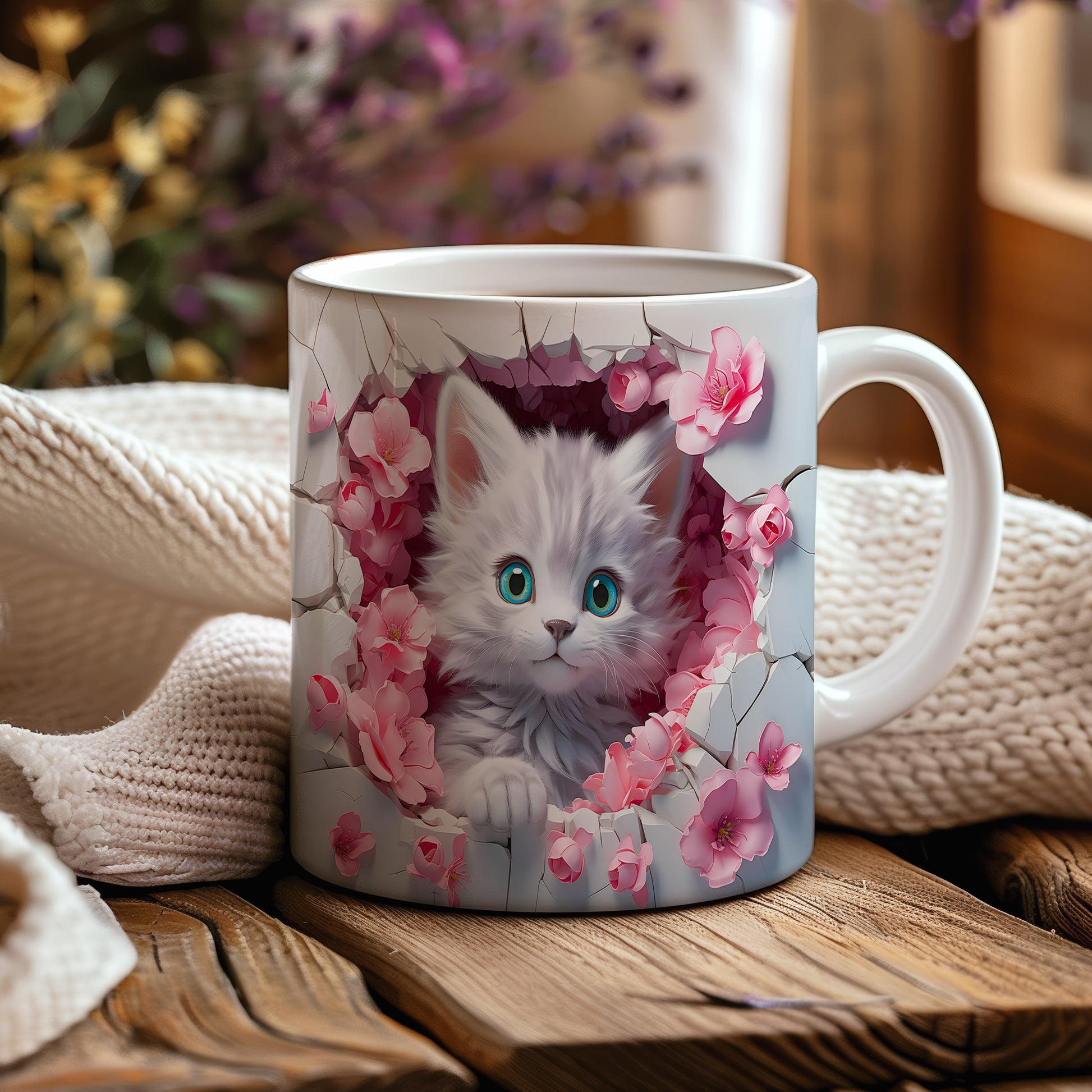 Tento hrnek s motivem roztomilého koťátka je ideální pro milovníky zvířat a kočičích mazlíčků. Skvělý tip na dárek pro děti i dospělé, kteří ocení hravý design. Materiál: keramika. Objem: 330 ml. Vhodné do myčky i mikrovlnky. Používáním tohoto hrnku si zpříjemníte každé ráno s oblíbeným nápojem.