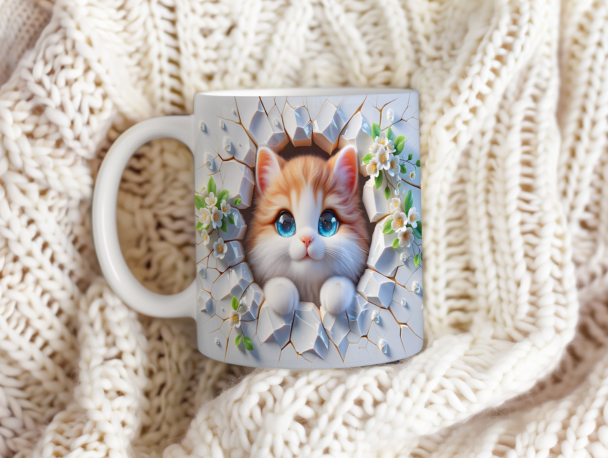 Krásný hrnek s motivem roztomilého koťátka, které vypadá, jako by se dívalo skrze zeď. Tento hrnek potěší každého milovníka koček a je skvělým dárkem pro přátele nebo rodinu. Materiál: keramika. Objem: 330 ml. Vhodné do myčky i mikrovlnky. Používání tohoto hrnku přináší radost a útulnost do každého dne.