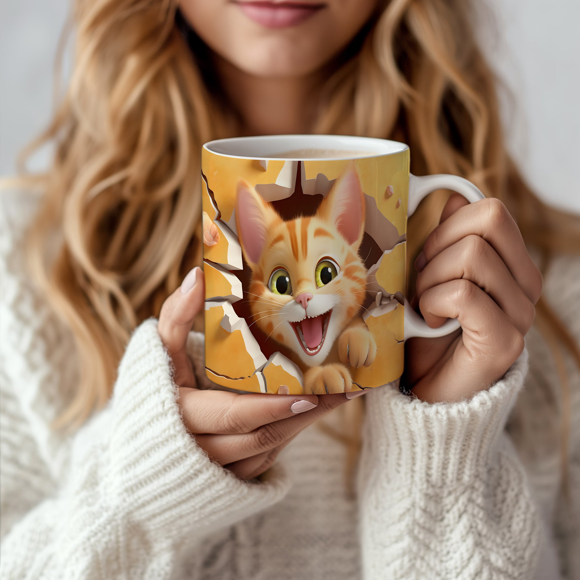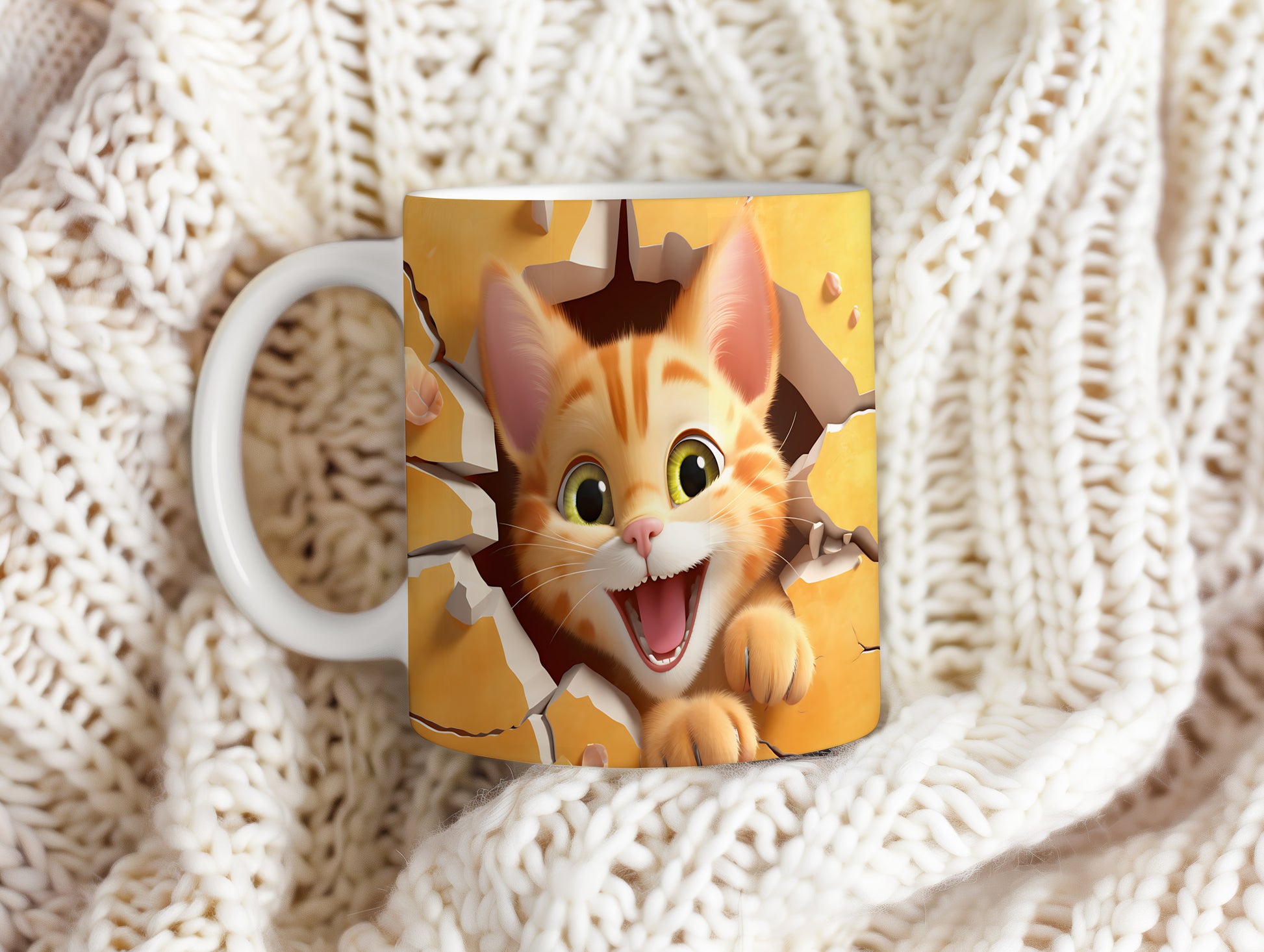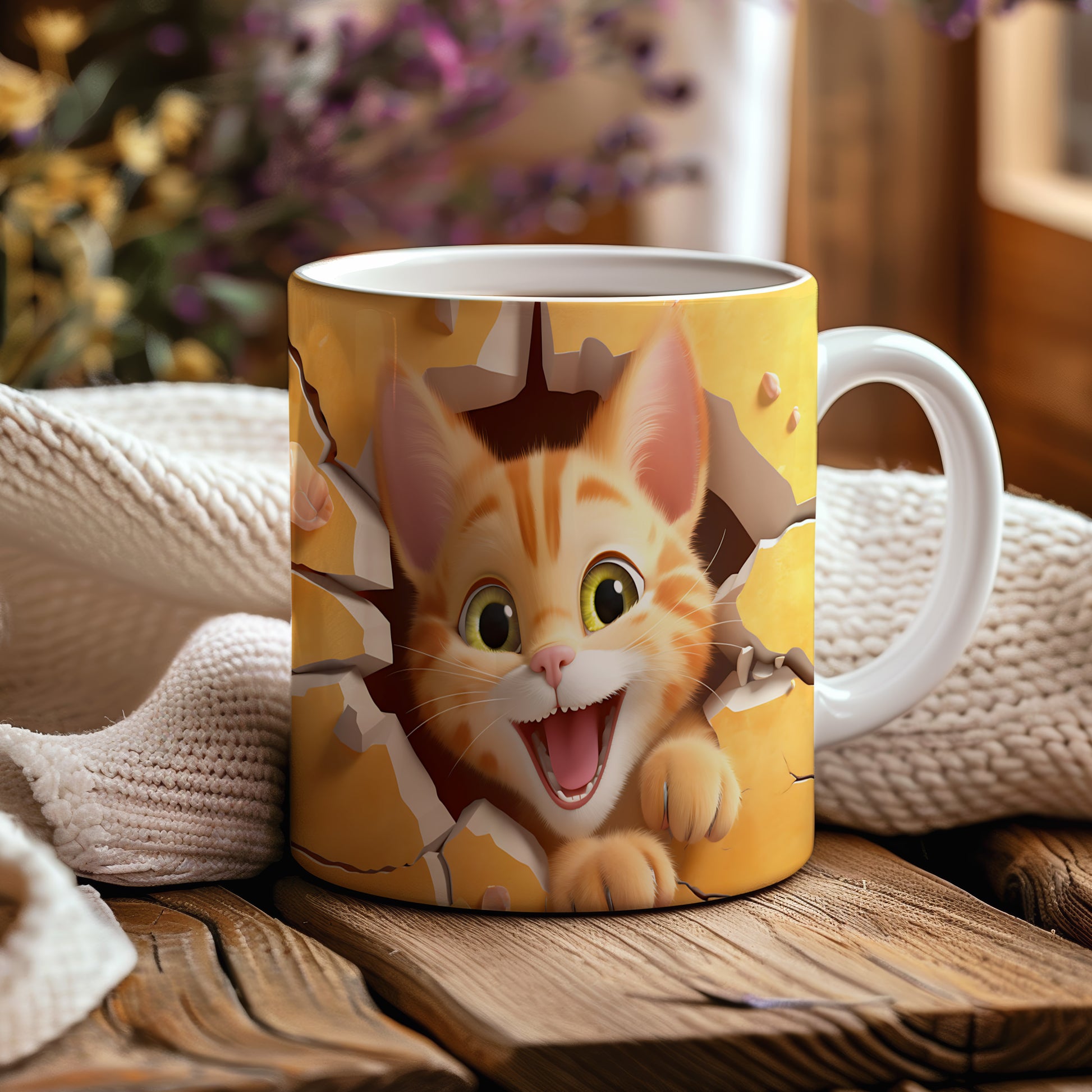 Tento hrnek zobrazuje roztomilé koťátko s veselým výrazem. Je ideální pro milovníky koček a skvělým dárkem pro každého, kdo si rád vychutnává kávu či čaj. Materiál: keramika. Objem: 330 ml. Vhodné do myčky i mikrovlnky. Používání tohoto hrnku přináší radost a útulnost do každého dne.