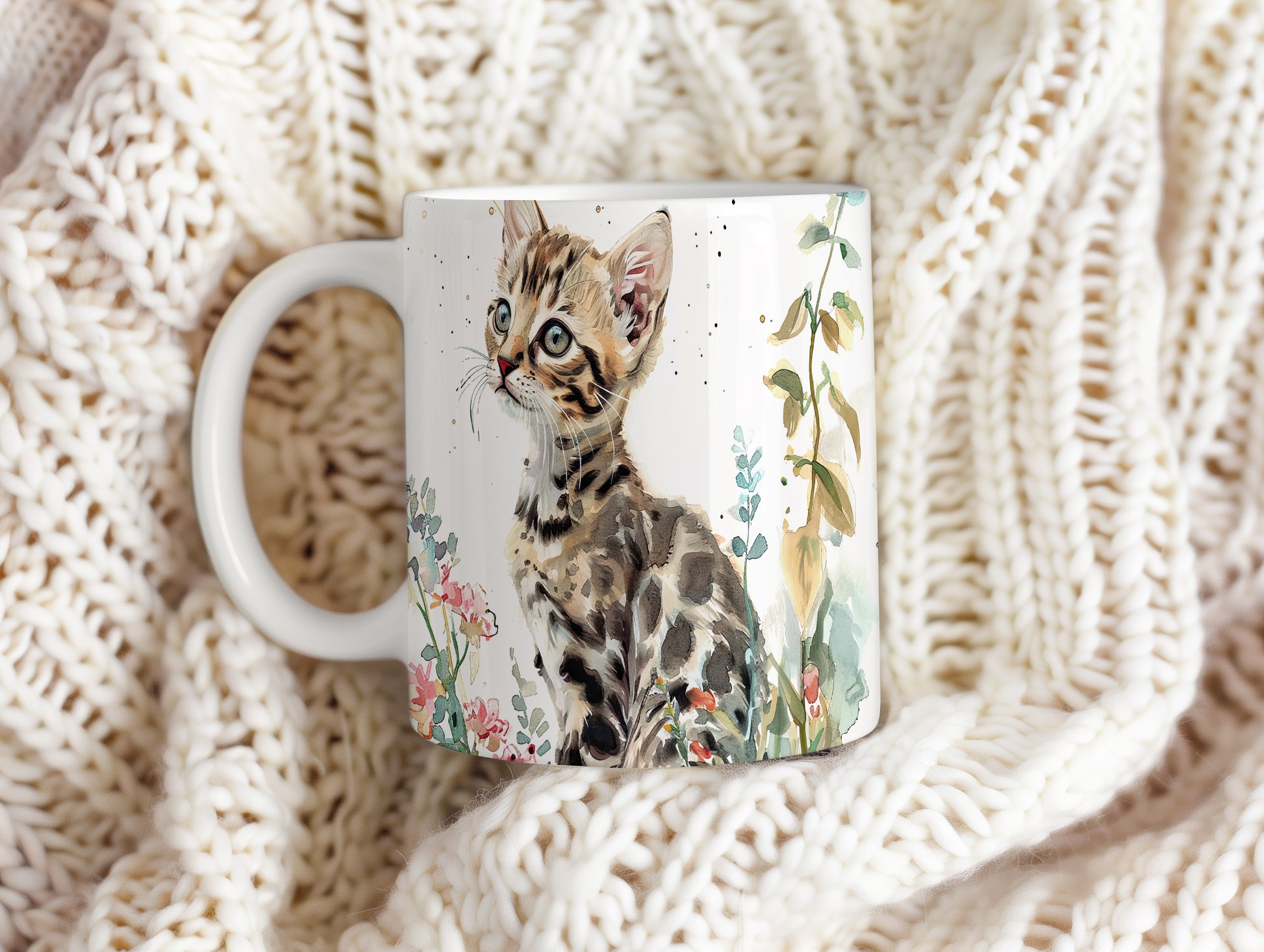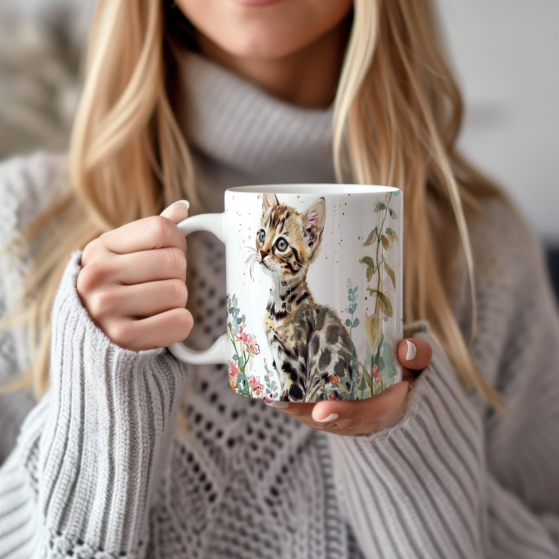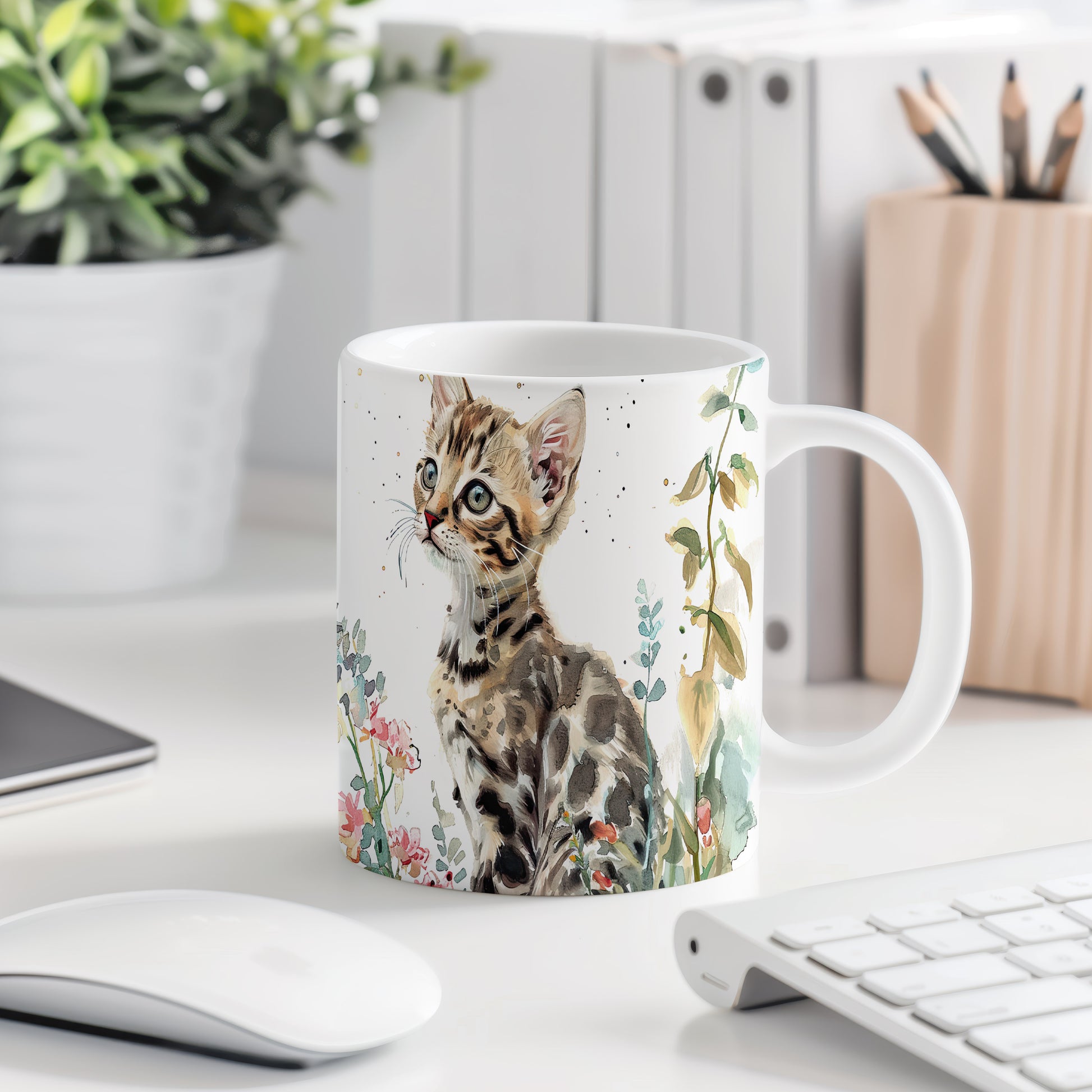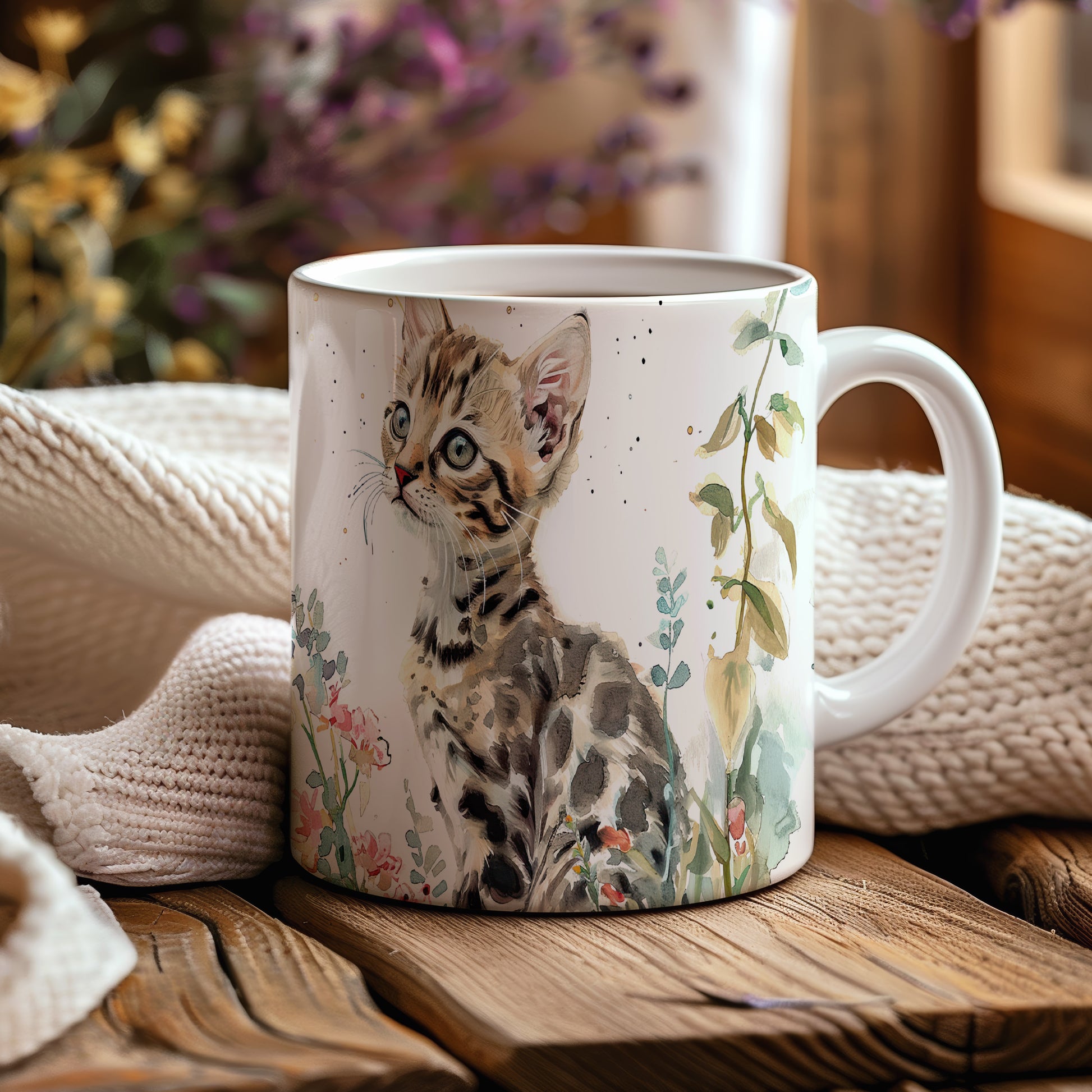 Na hrnku je zobrazeno roztomilé koťátko s velkýma očima, obklopené květinami. Tento design potěší všechny milovníky koček a přírody, skvělý tip na dárek pro přátele nebo rodinu. Hrnek má objem 330 ml, je vyroben z keramiky a je vhodný do myčky i mikrovlnky. Používání tohoto hrnku přináší radost a útulnost do každého dne.