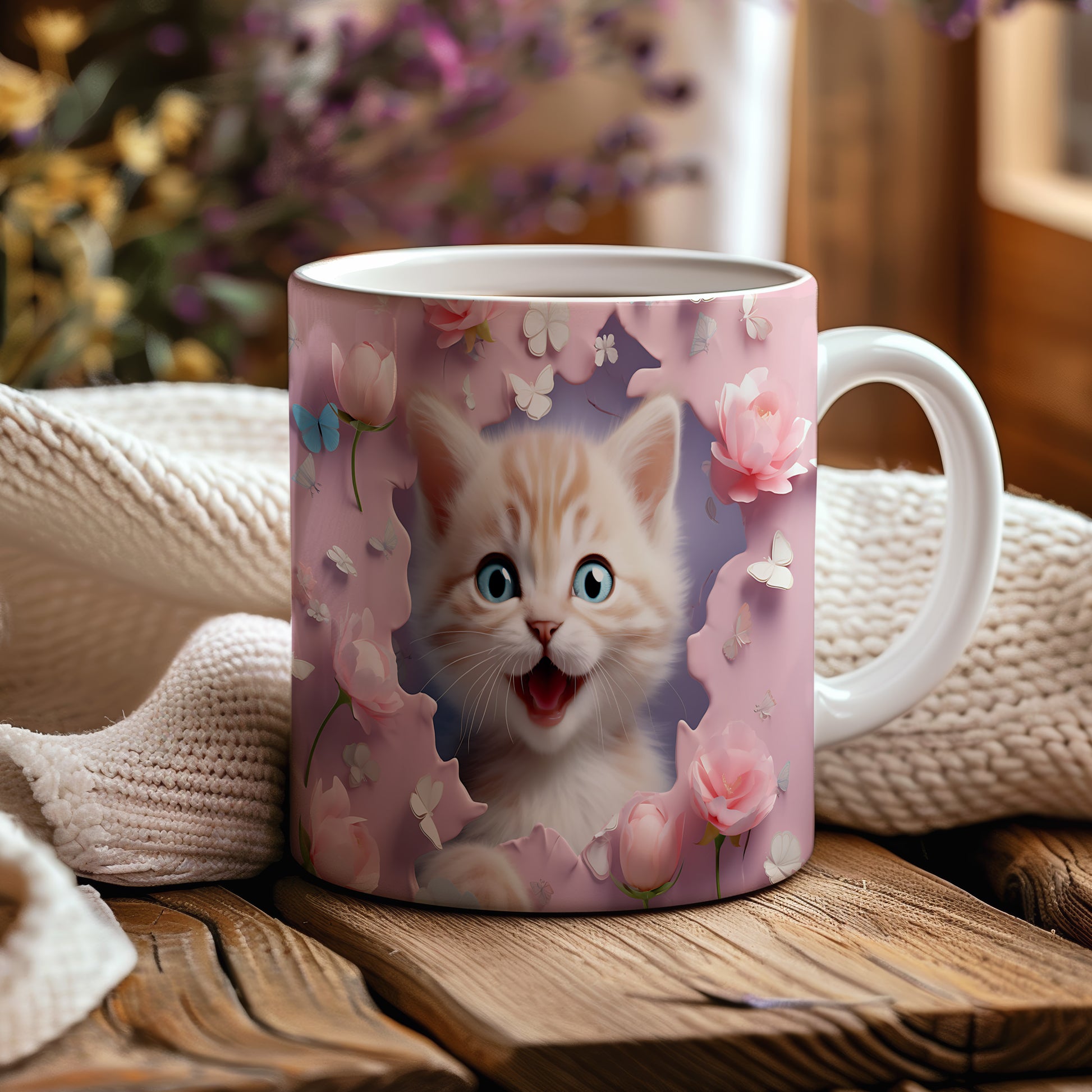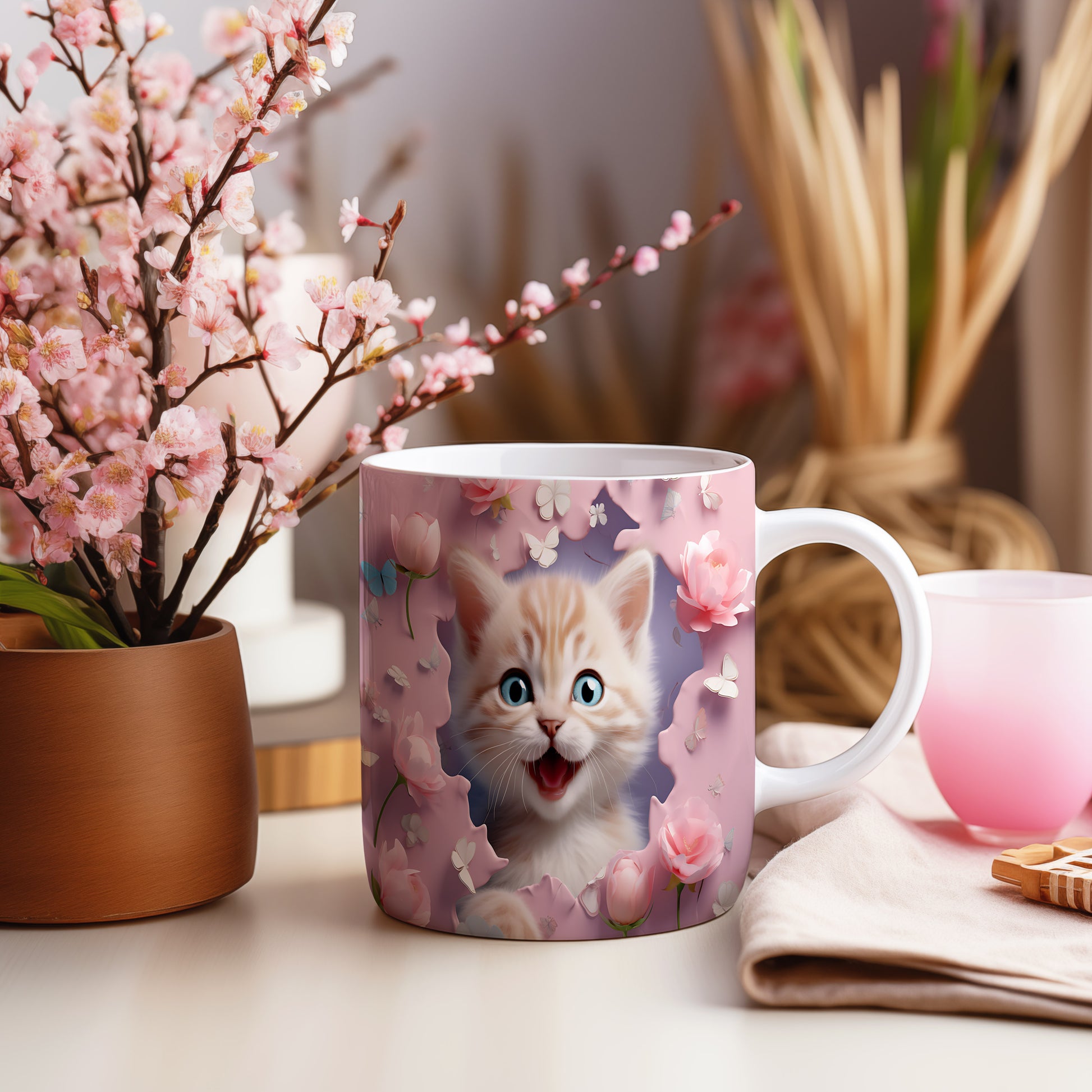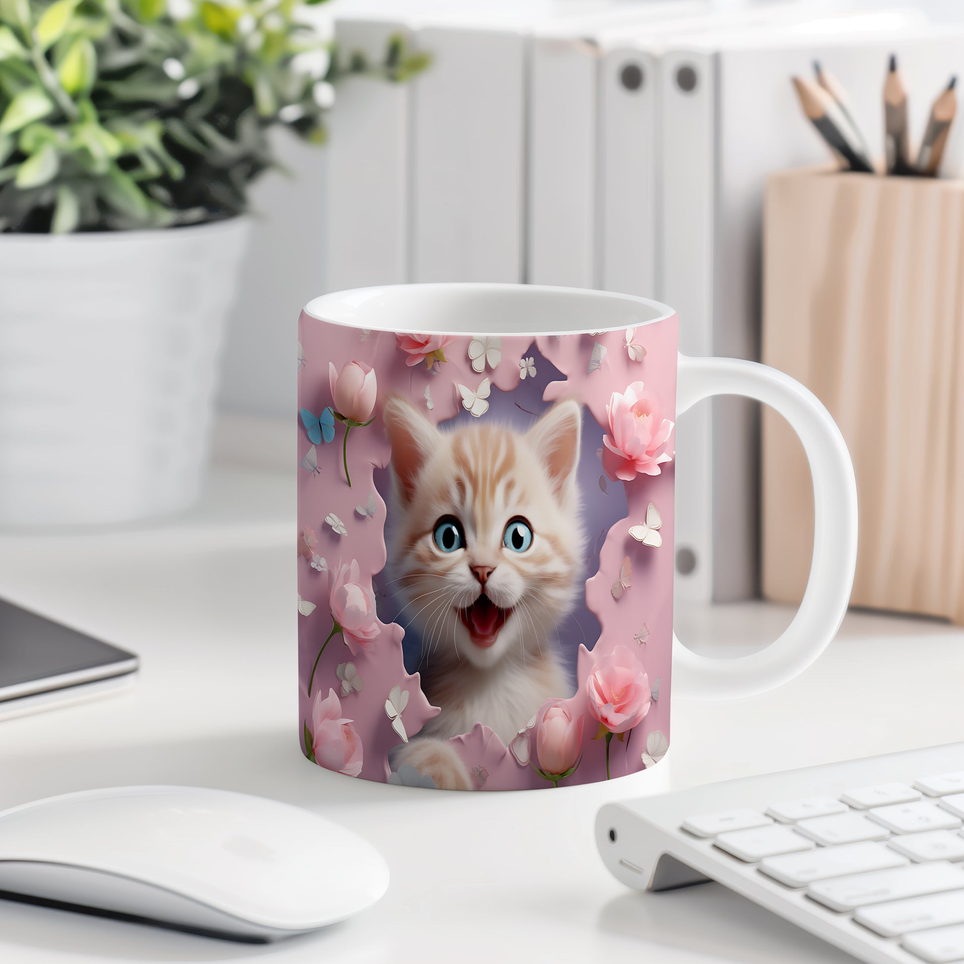 Hrnek s realistickým koťátkem a květinami je ideálním kouskem pro milovníky koček a přírody. Skvěle se hodí jako dárek pro přátele nebo rodinu, kteří ocení krásu a hravost. Materiál: keramika. Objem: 330 ml. Vhodné do myčky i mikrovlnky. Tento hrnek přináší radost do každodenního pití a zaručuje příjemné chvíle u kávy nebo čaje.