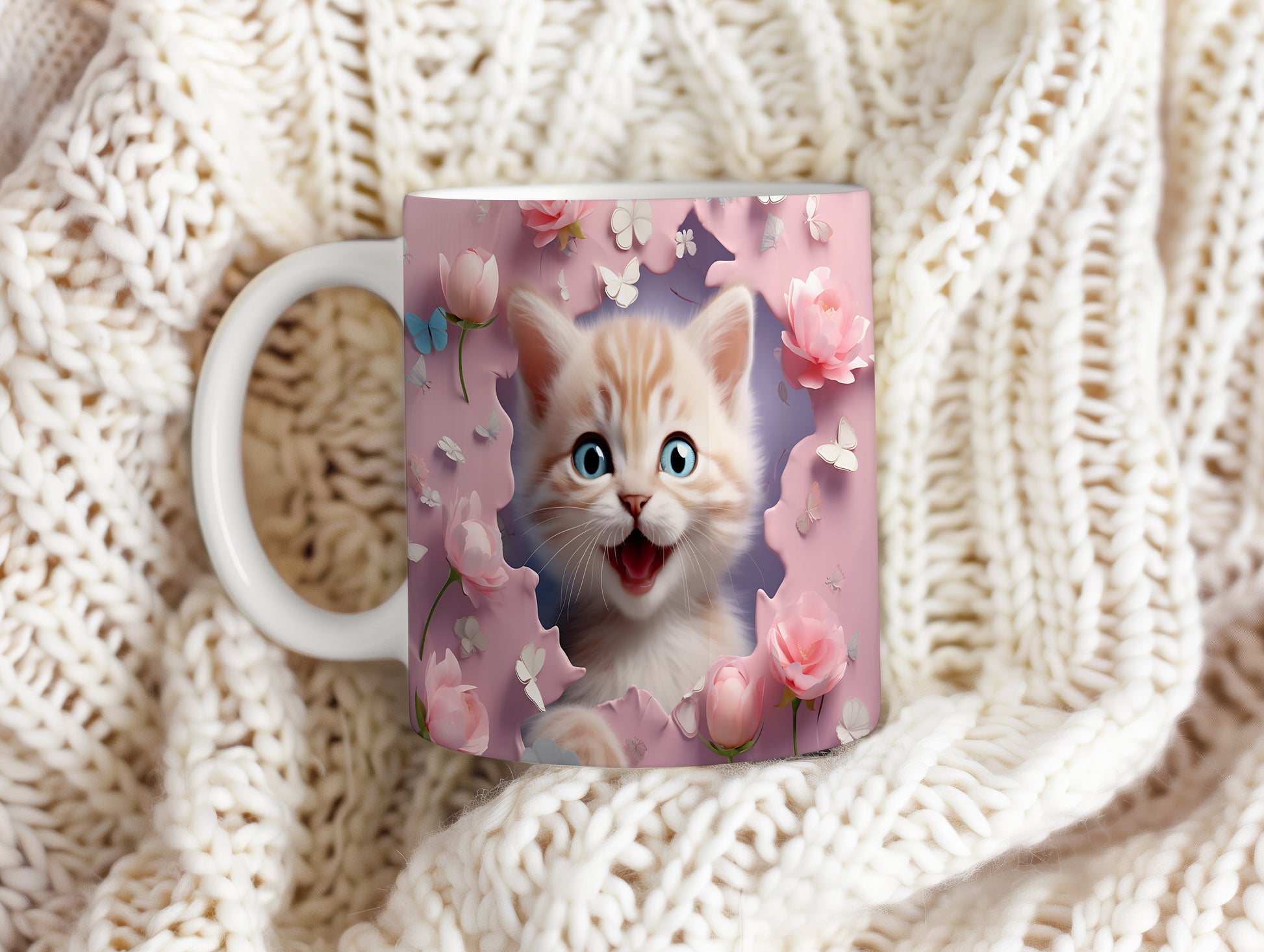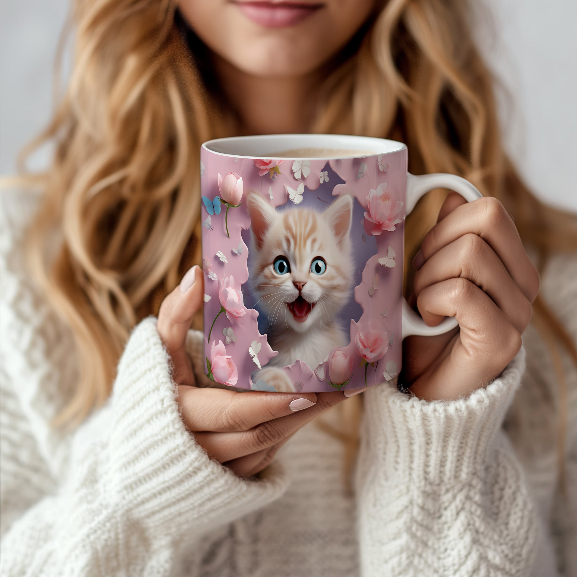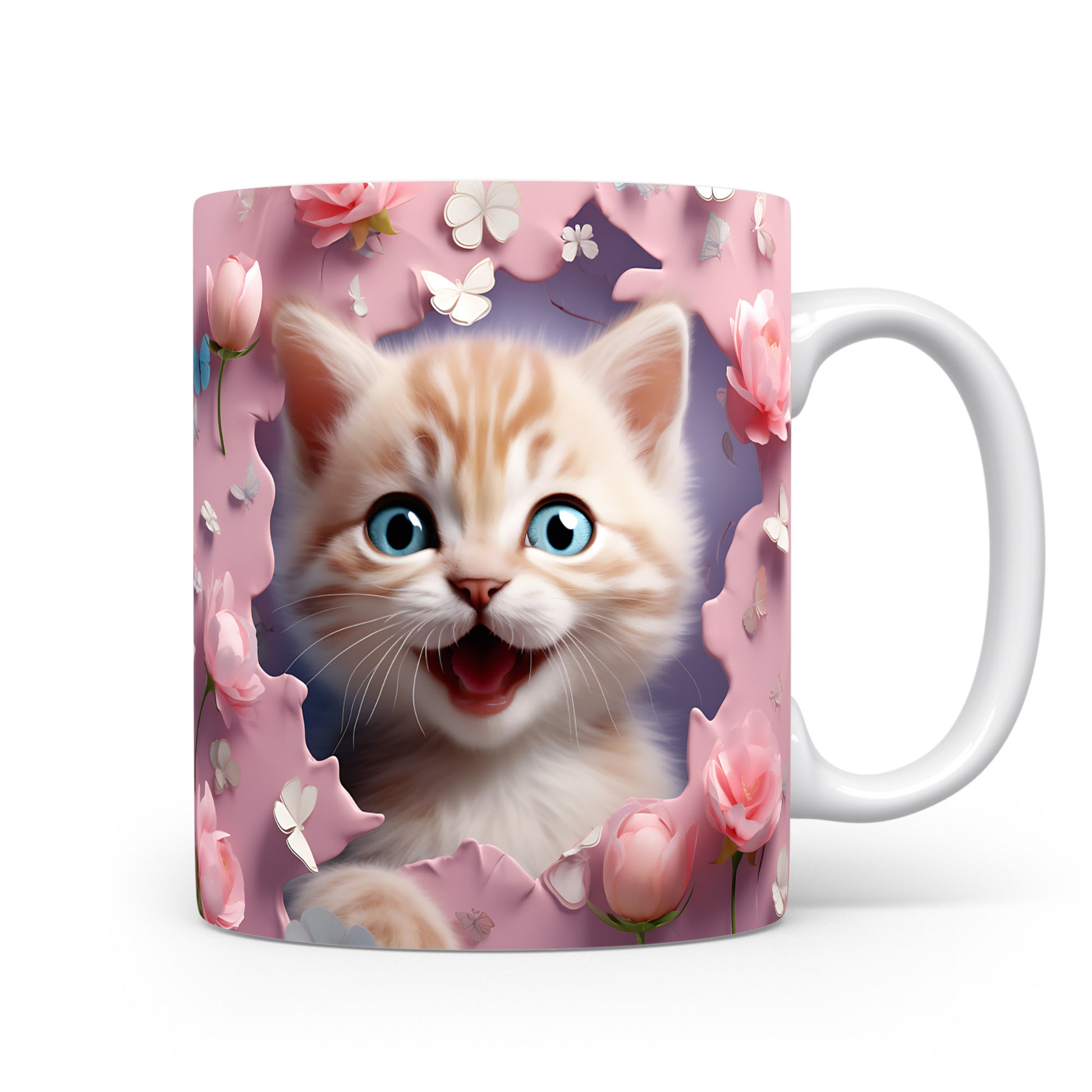 Hrnek s realistickým koťátkem a květinami je ideálním kouskem pro milovníky koček a přírody. Skvěle se hodí jako dárek pro přátele nebo rodinu, kteří ocení krásu a hravost. Materiál: keramika. Objem: 330 ml. Vhodné do myčky i mikrovlnky. Tento hrnek přináší radost do každodenního pití a zaručuje příjemné chvíle u kávy nebo čaje.