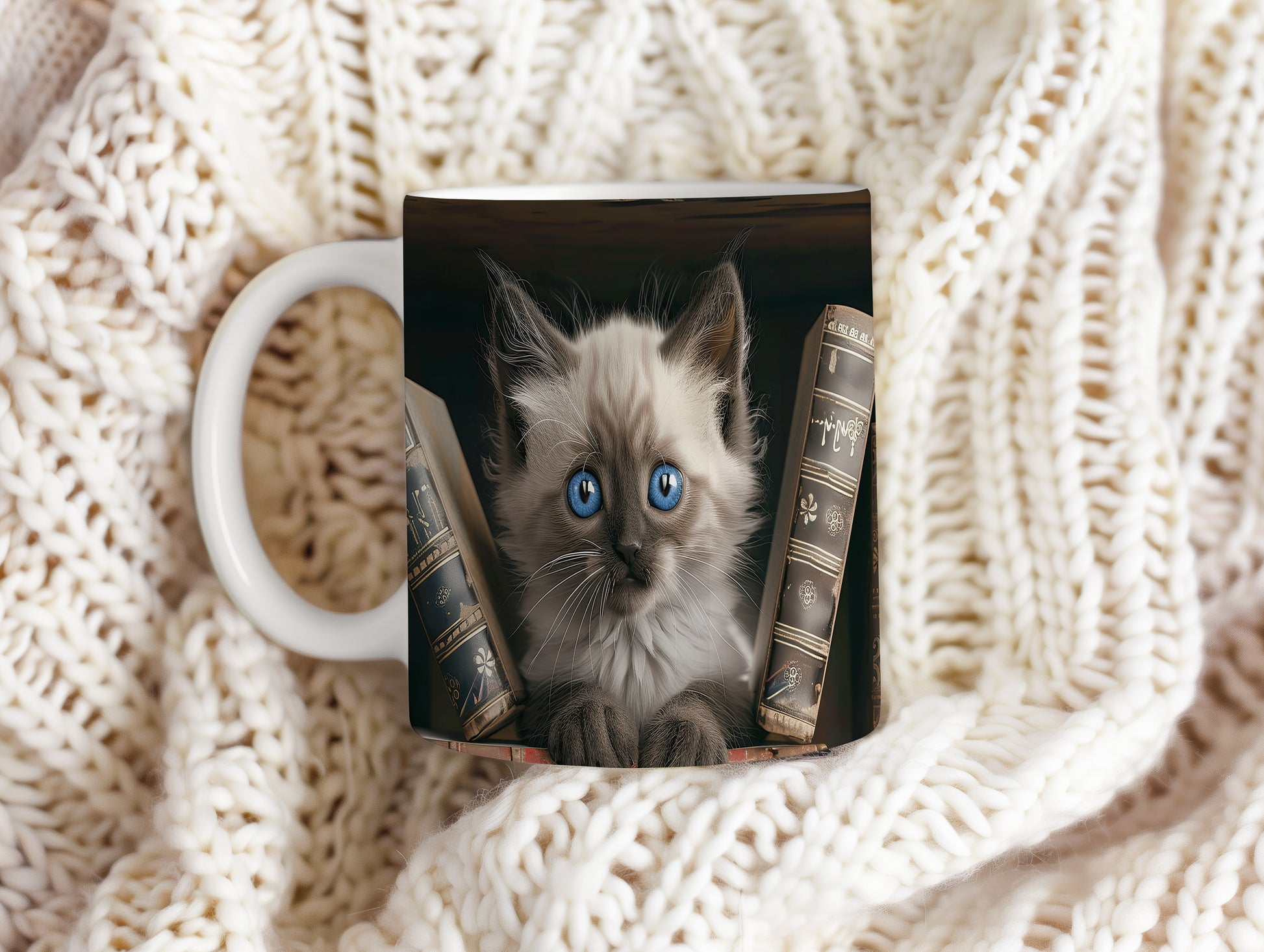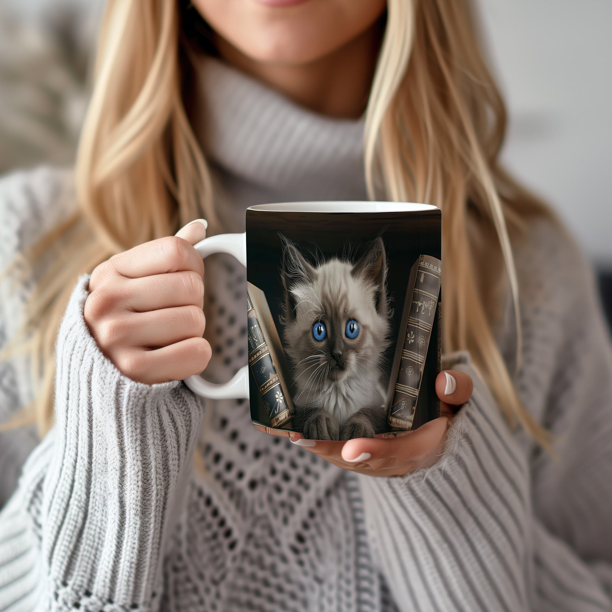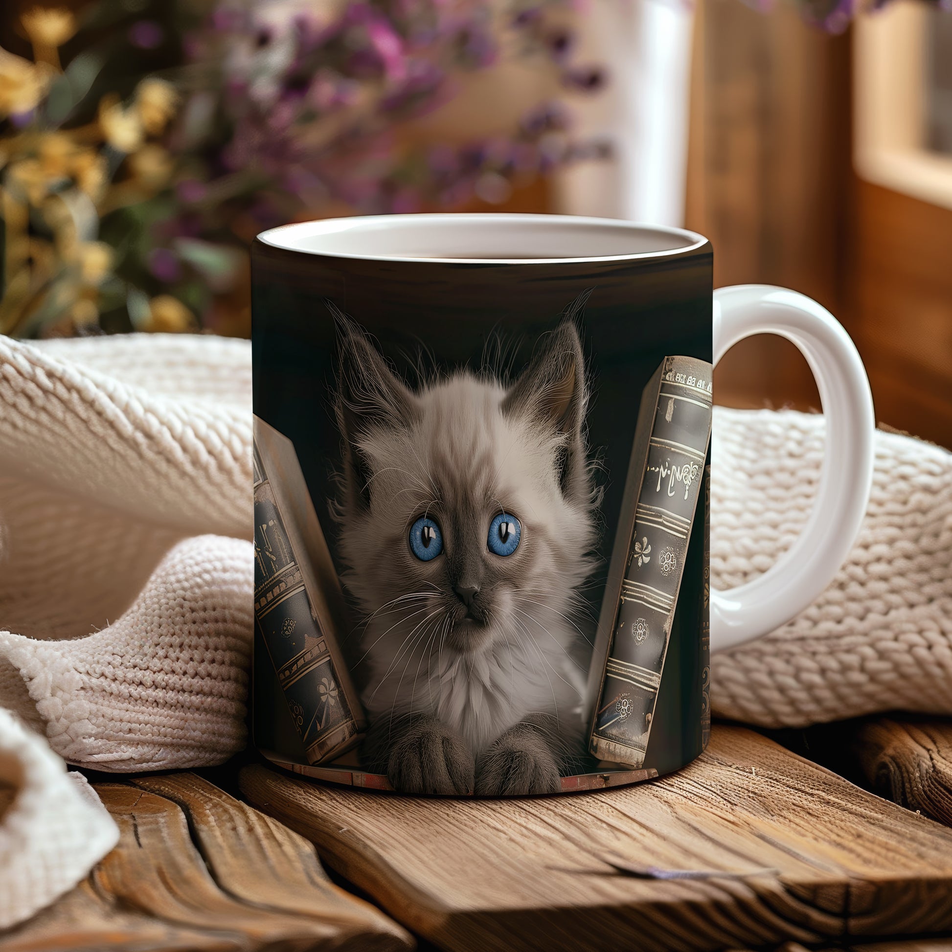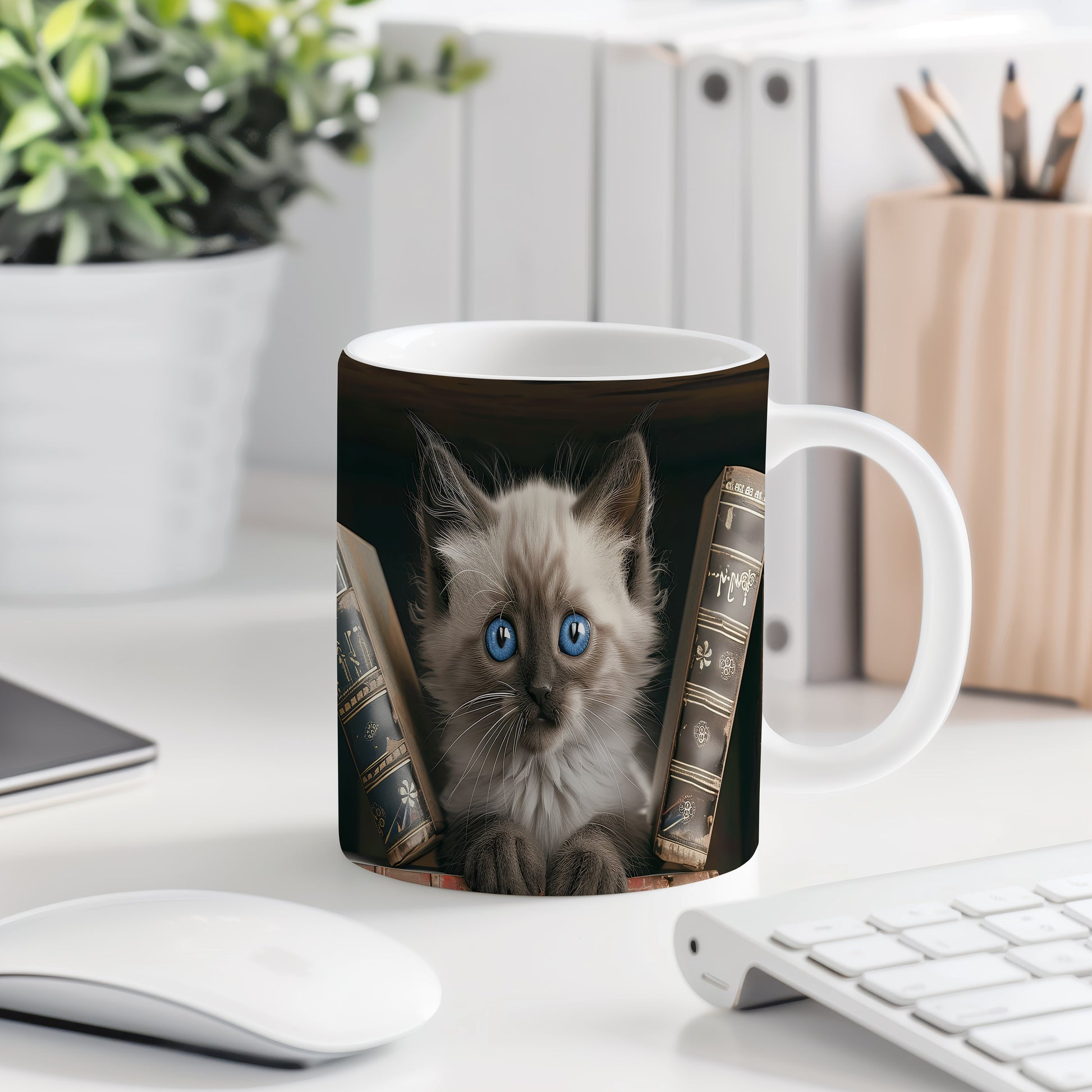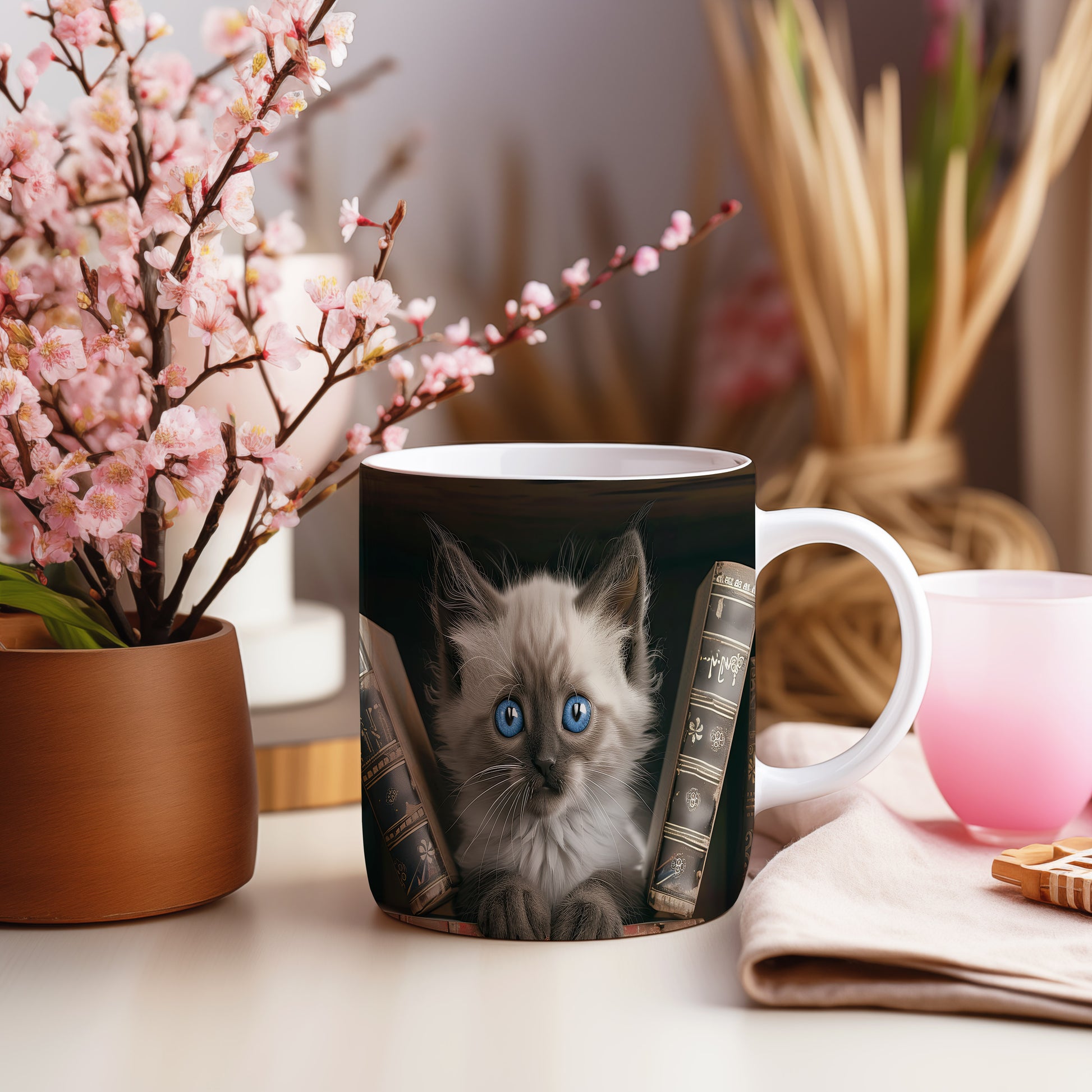 Tento hrnek z keramiky zobrazuje roztomilé koťátko s velkýma modrýma očima. Je ideální pro milovníky koček a skvělým dárkem pro každého, kdo má rád zvířata. Materiál: keramika. Objem: 330 ml. Vhodné do myčky i mikrovlnky. Používání tohoto hrnku přináší radost a útulnost do každého dne.