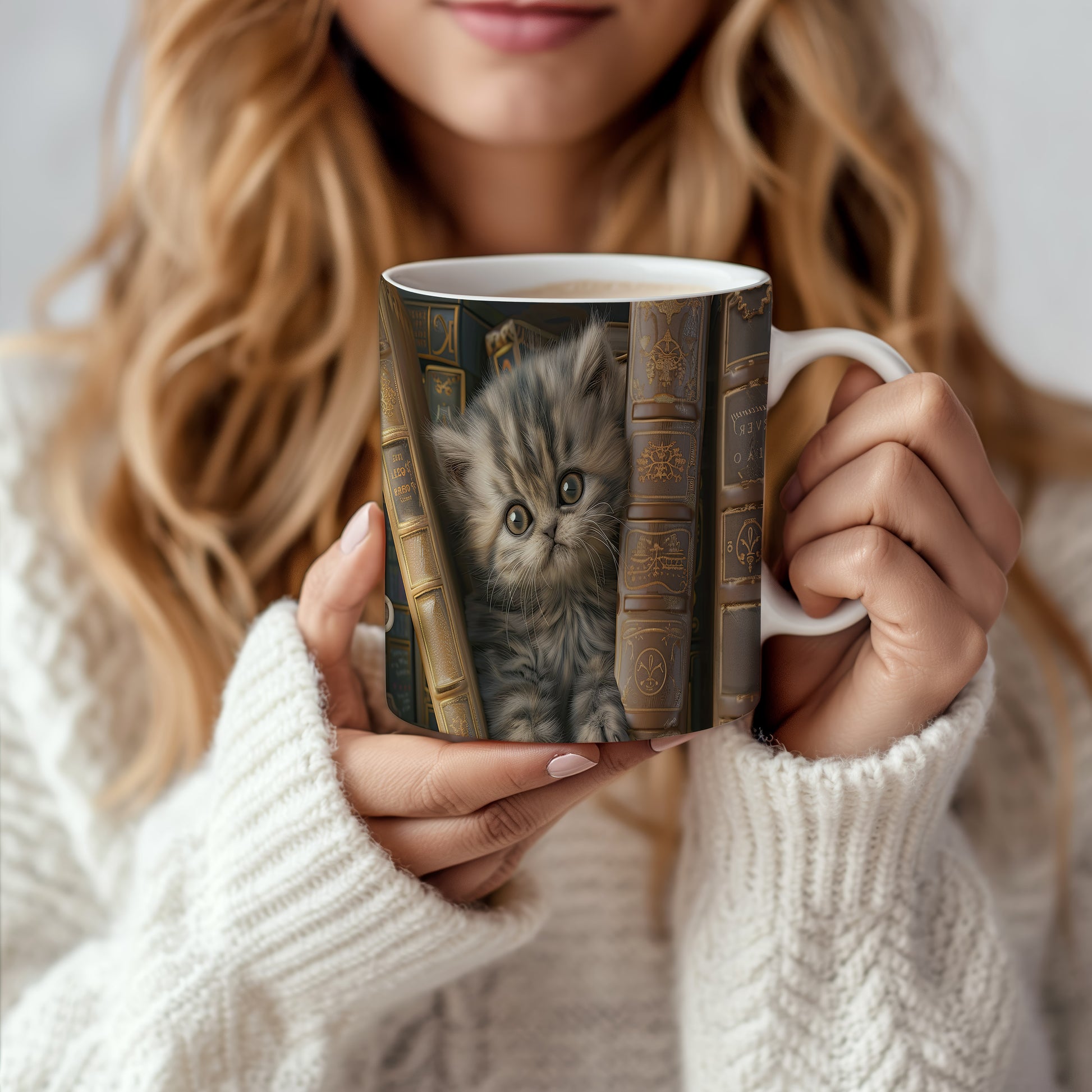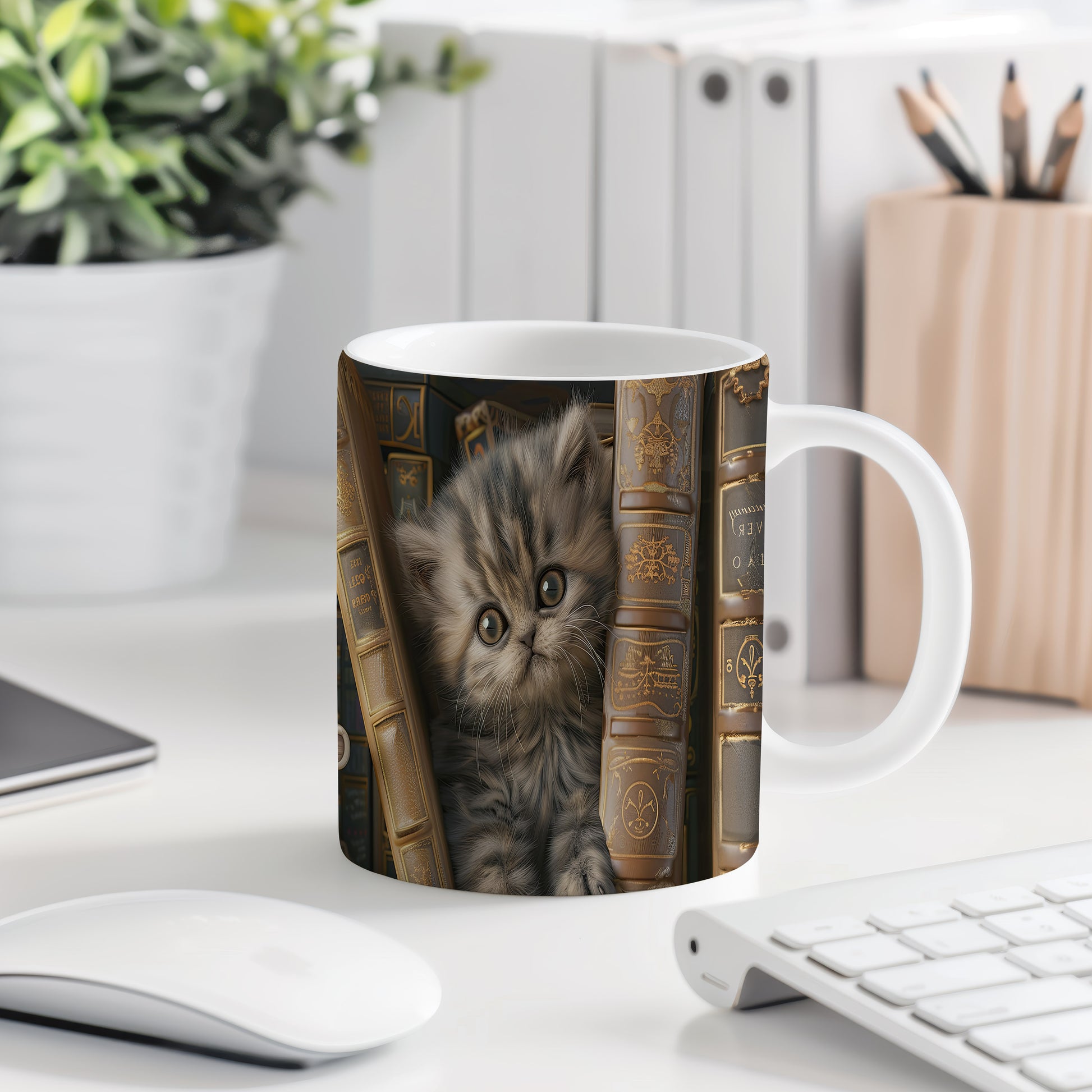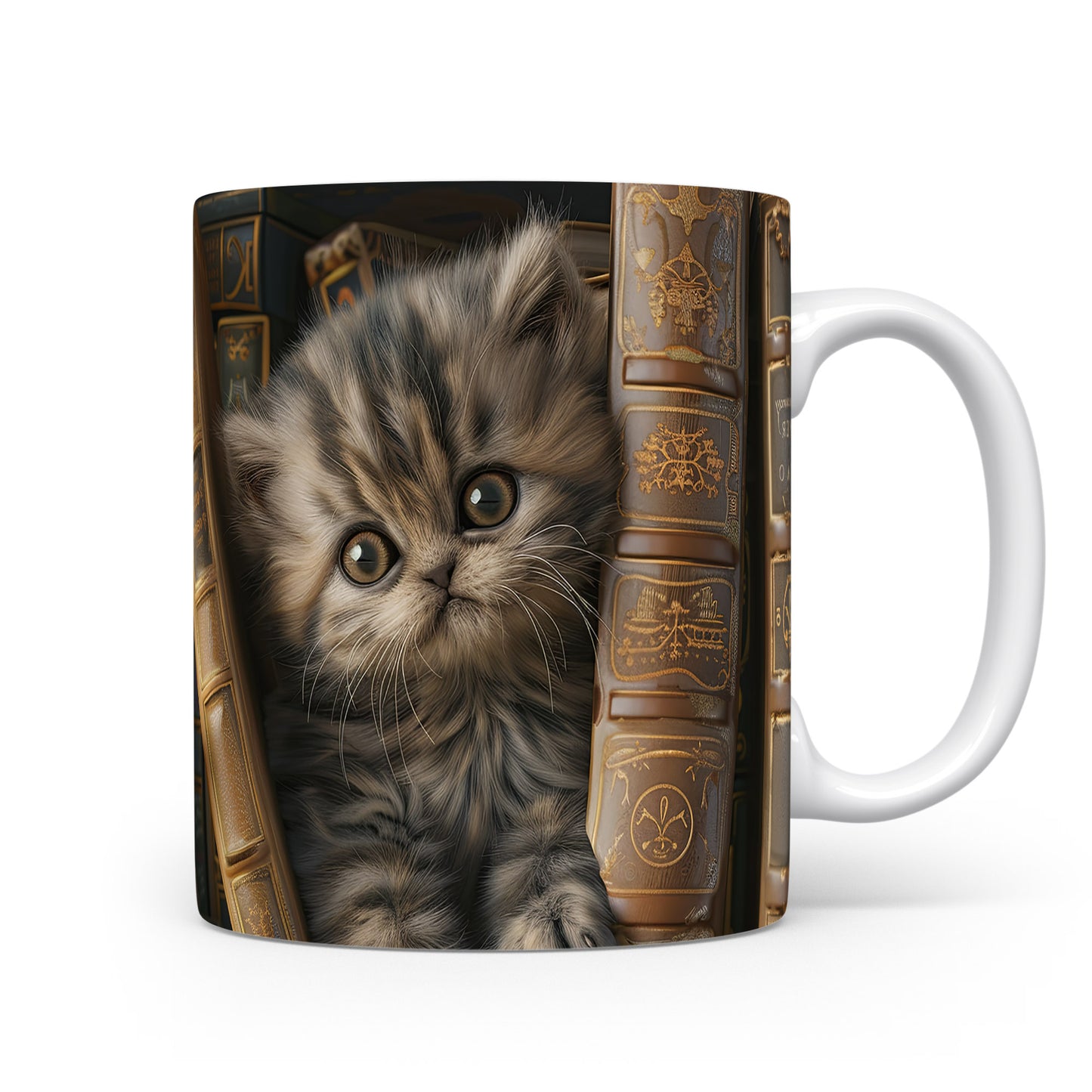 Hrnek s roztomilým kotětem mezi knihami je skvělým doplňkem pro milovníky koček a knih. Tento hrnek potěší každého, kdo si rád vychutnává svůj oblíbený nápoj při čtení. Materiál: keramika. Objem: 330 ml. Vhodné do myčky i mikrovlnky. Díky svému designu přináší radost a útulnost do každého dne.