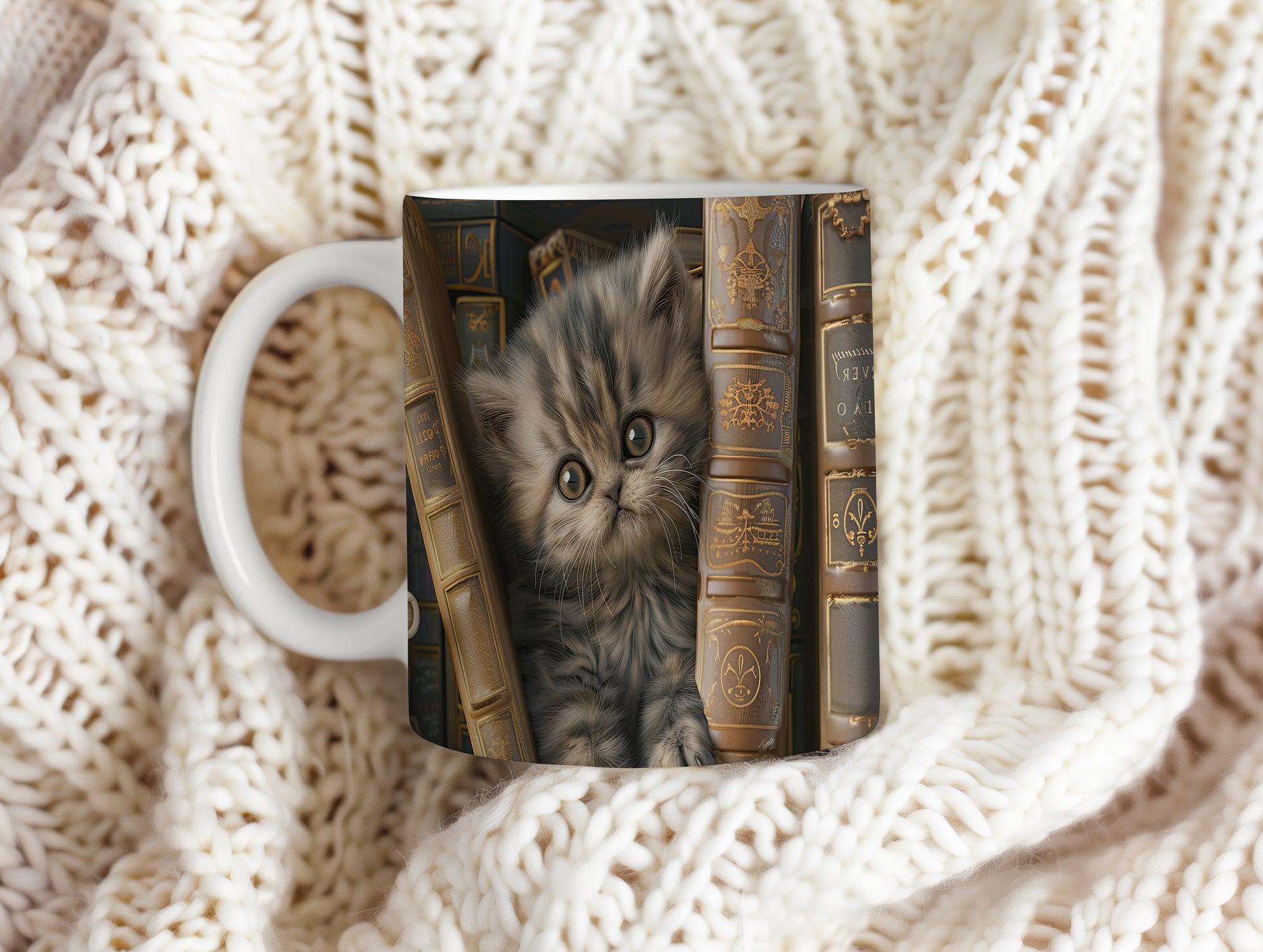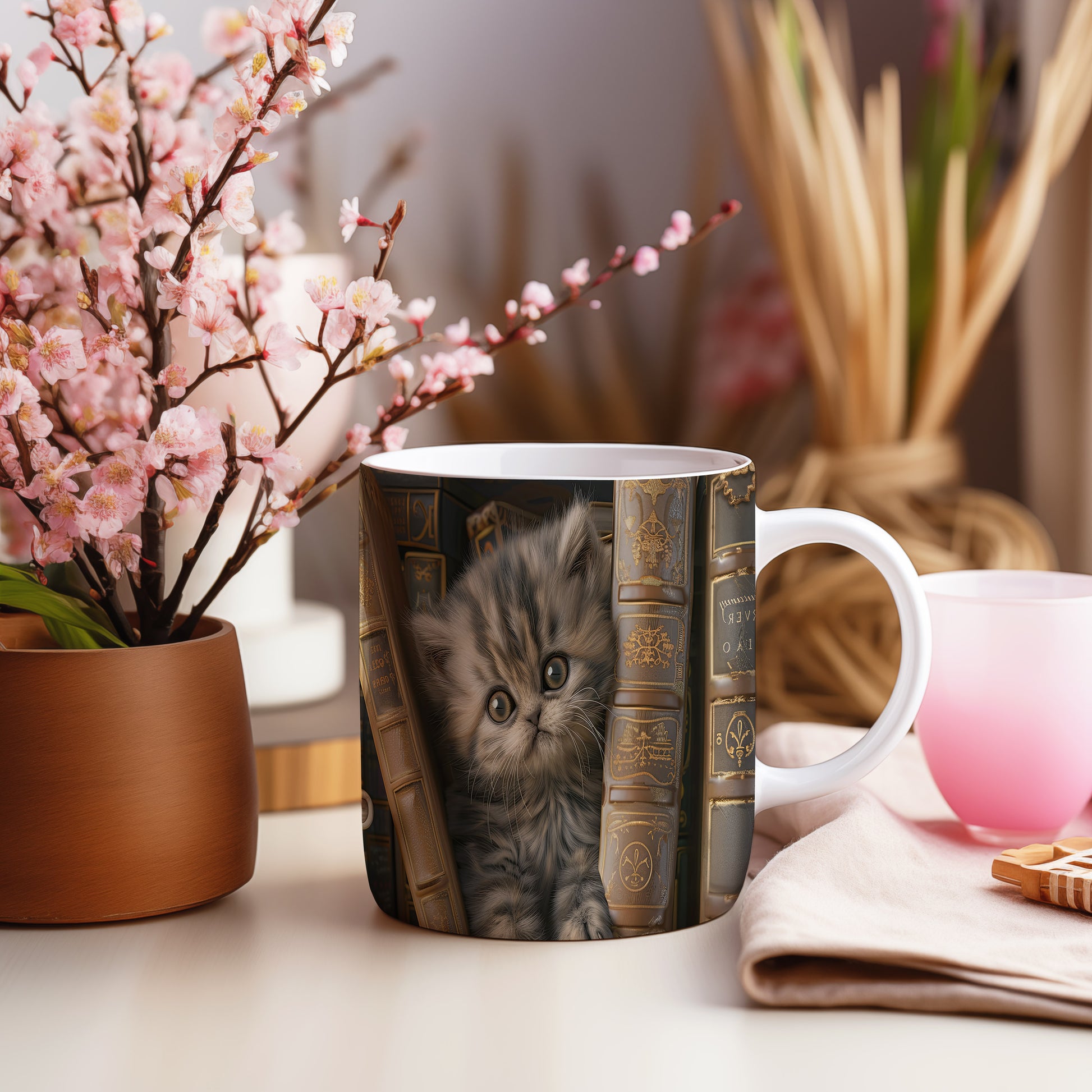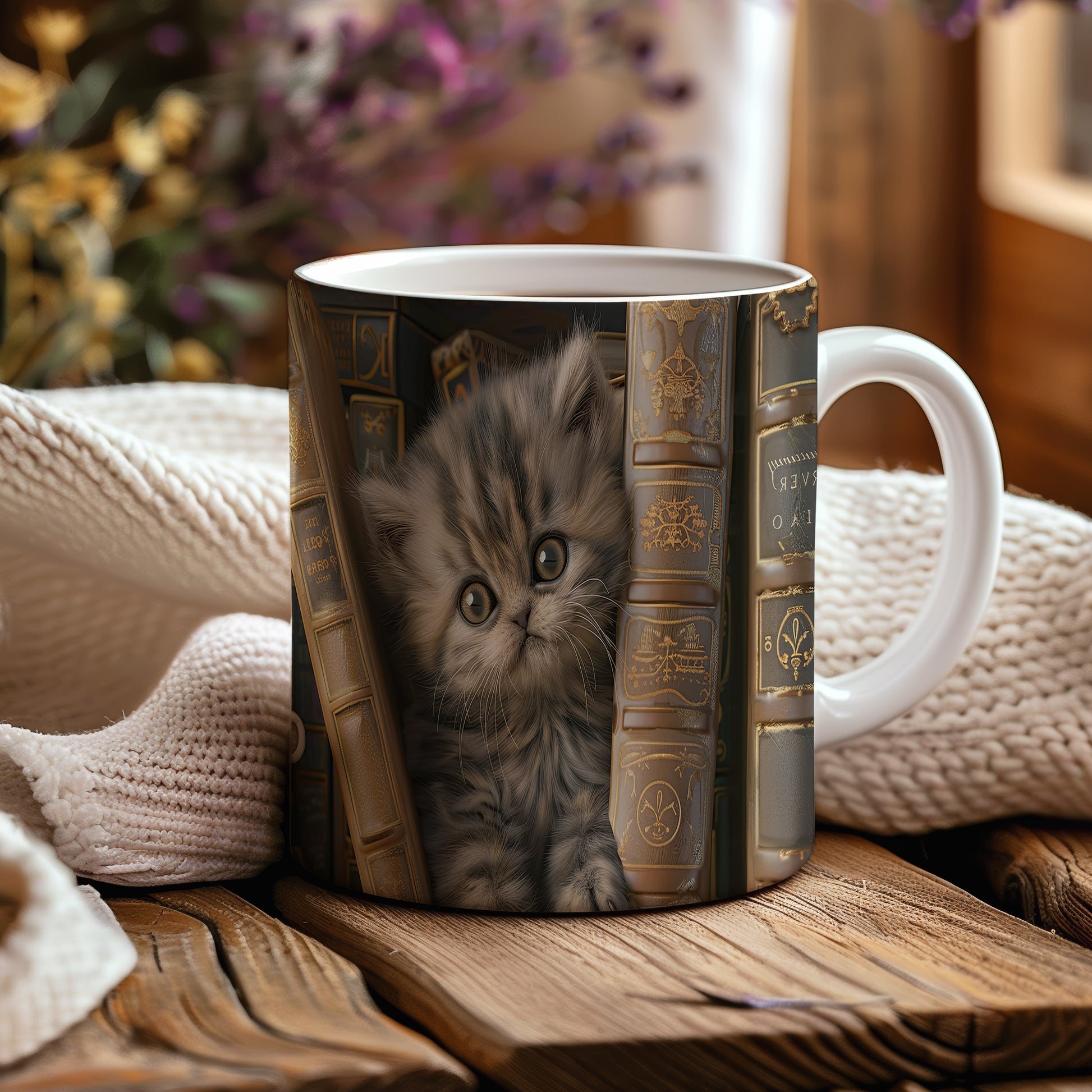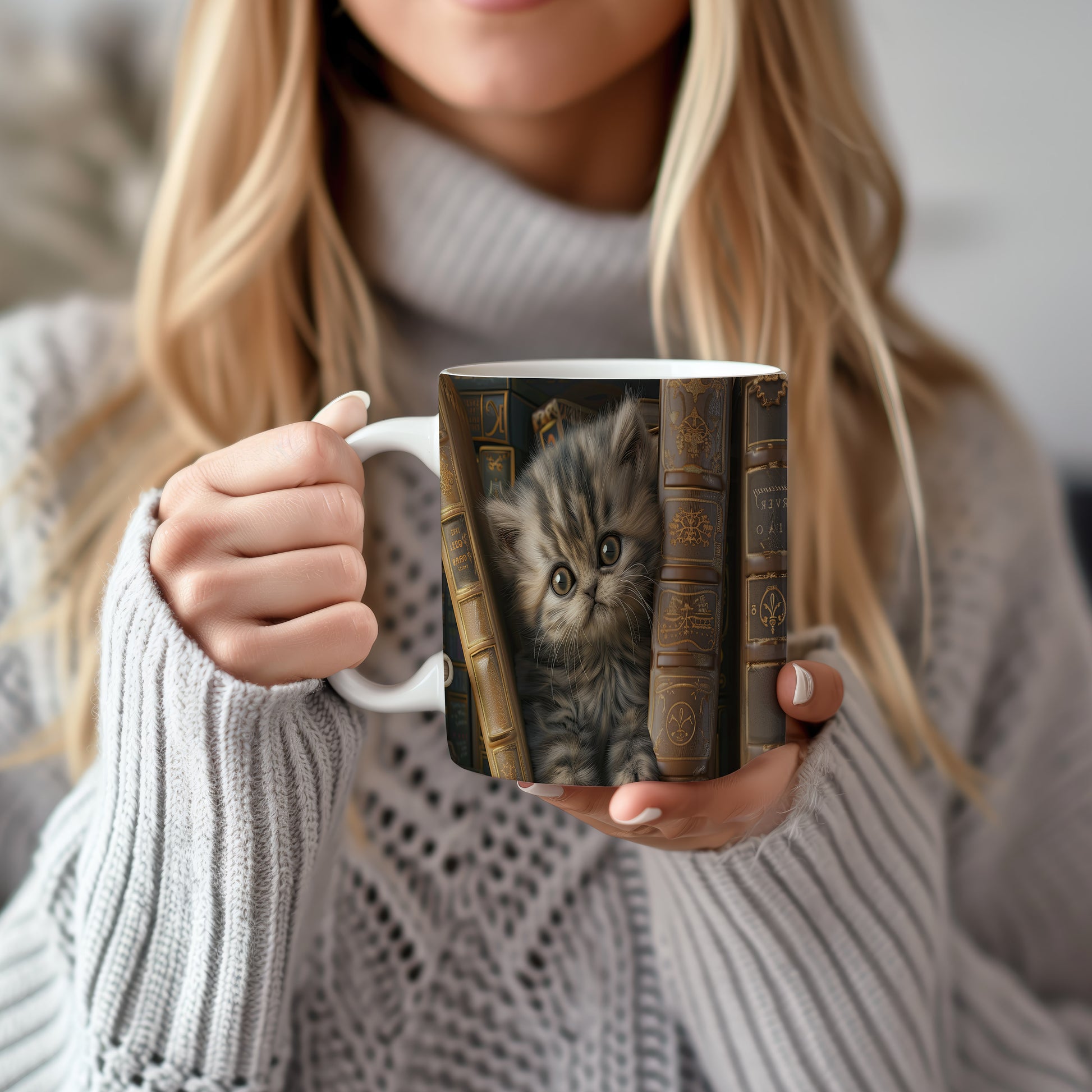 Hrnek s roztomilým kotětem mezi knihami je skvělým doplňkem pro milovníky koček a knih. Tento hrnek potěší každého, kdo si rád vychutnává svůj oblíbený nápoj při čtení. Materiál: keramika. Objem: 330 ml. Vhodné do myčky i mikrovlnky. Díky svému designu přináší radost a útulnost do každého dne.