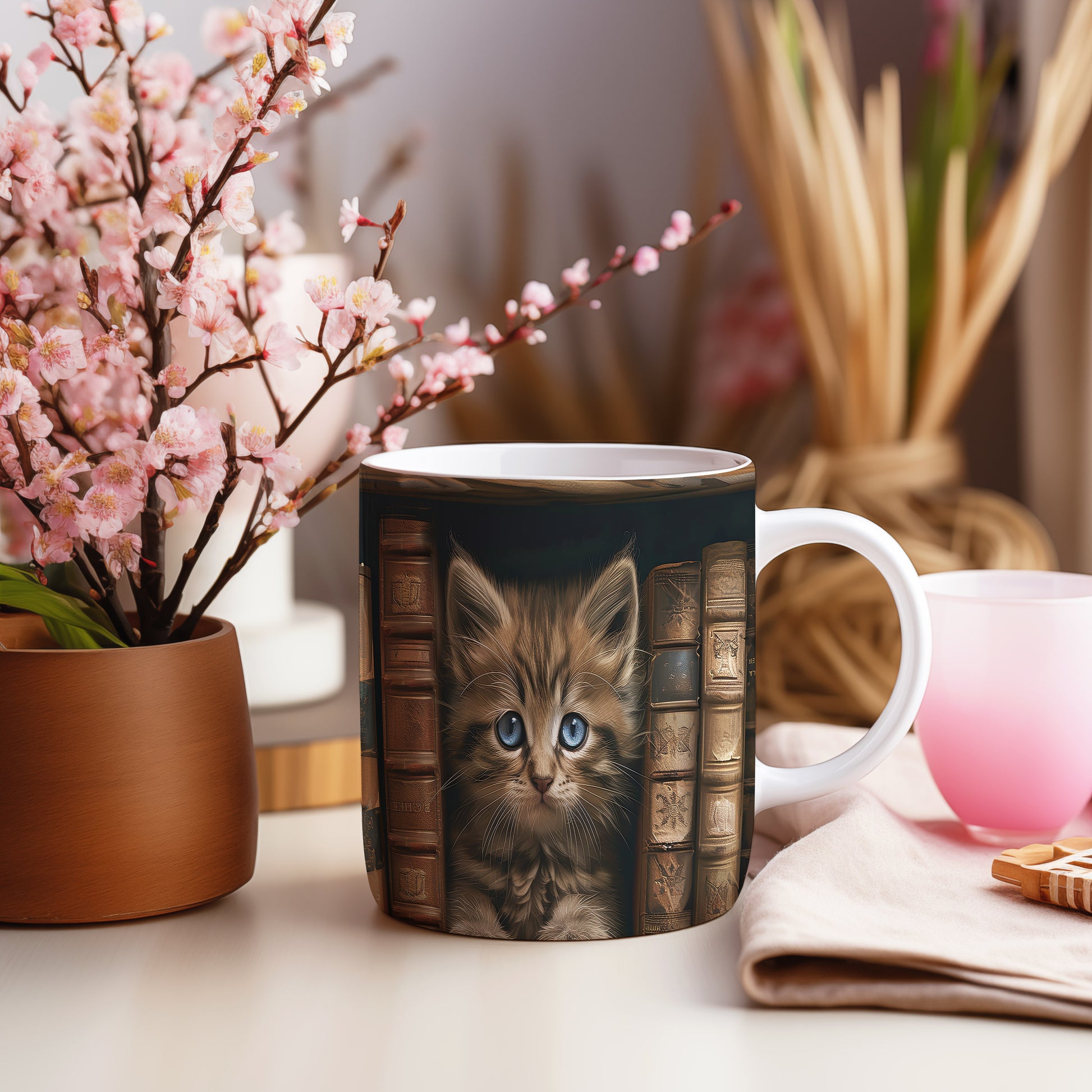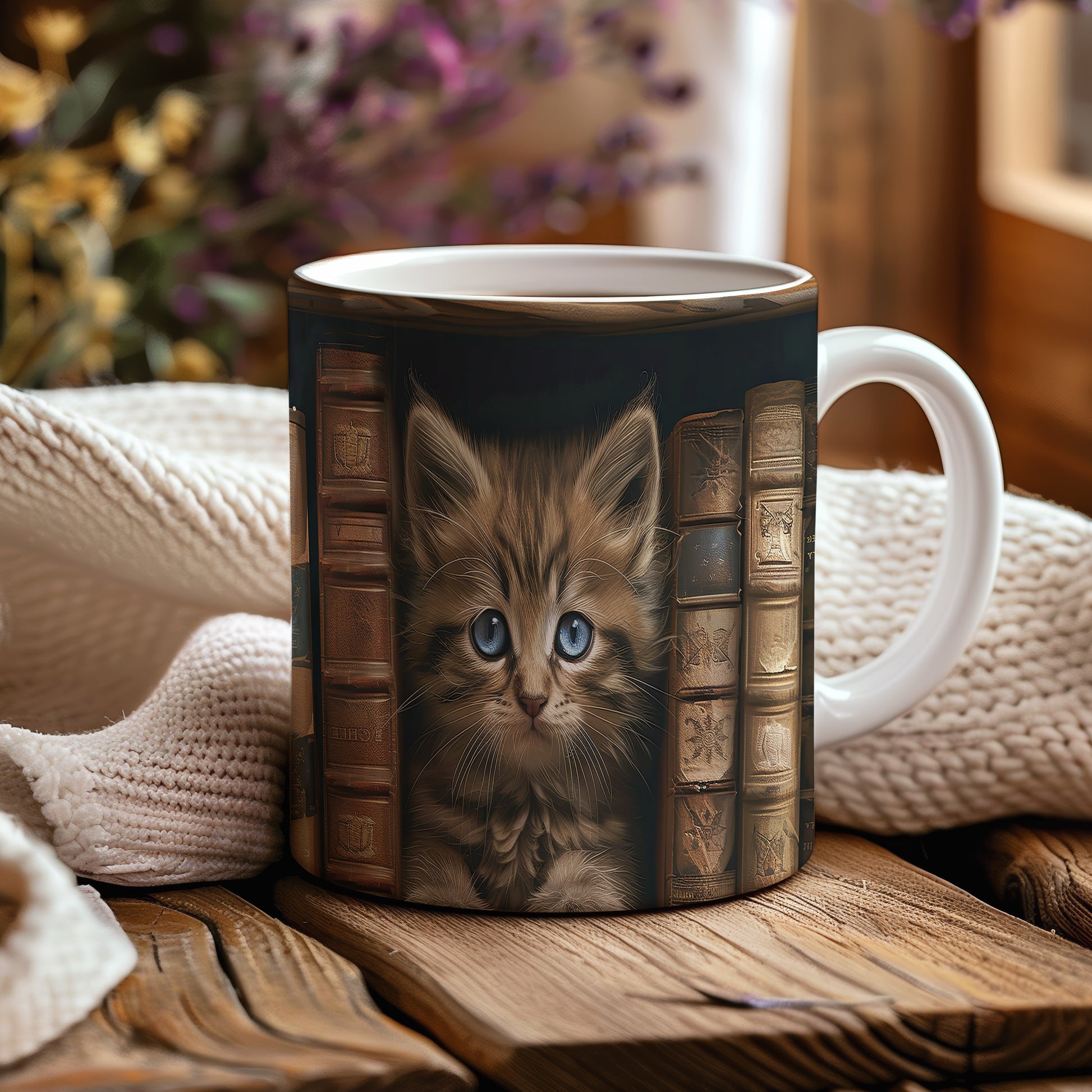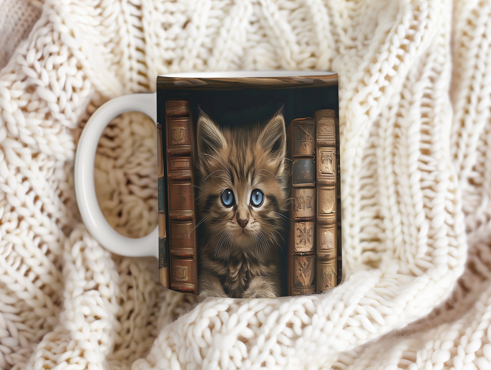 Hrnek s roztomilým kotětem – modrýma očima