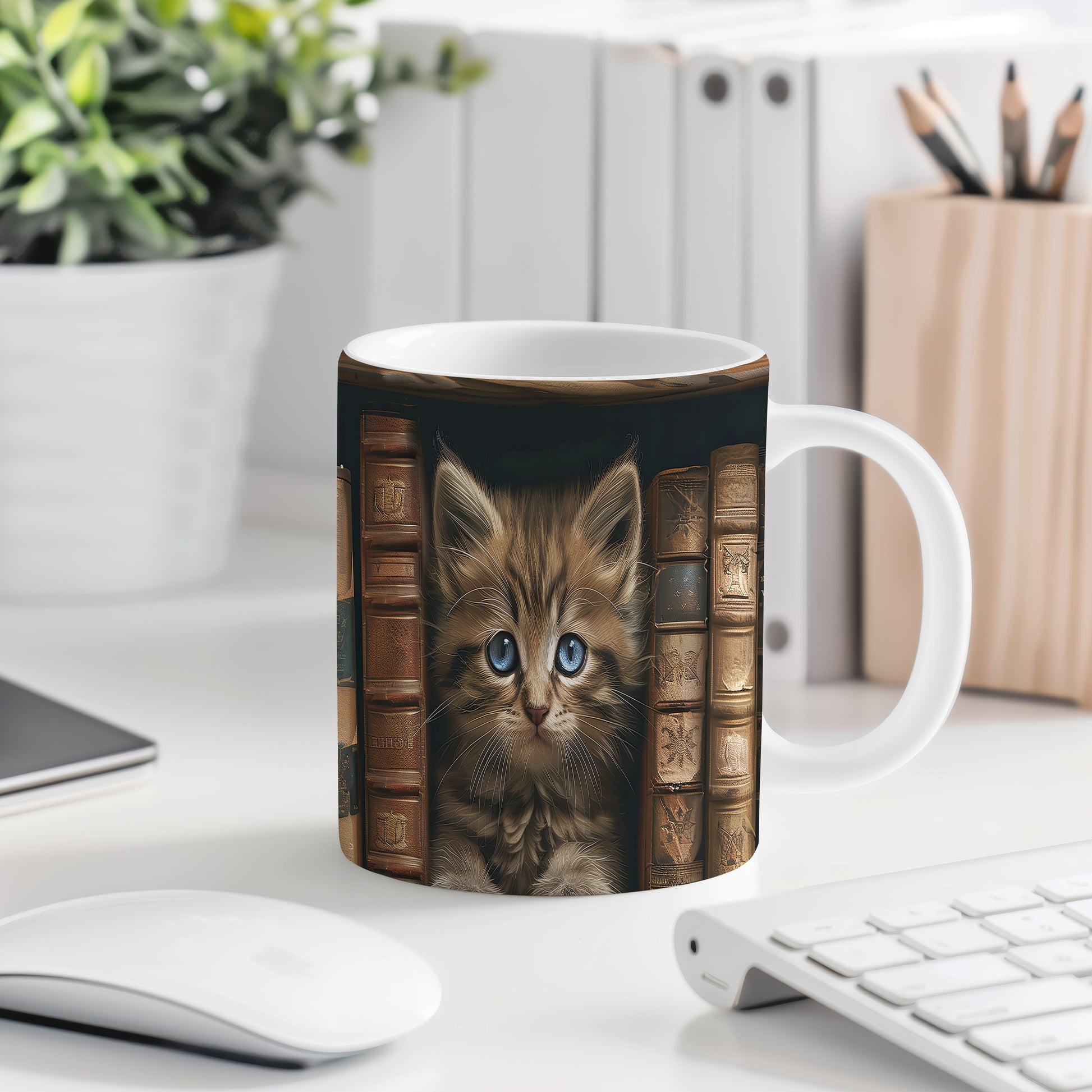 Hrnku dominuje motiv roztomilého kotěte s velkýma modrýma očima. Tento hrnek je ideální dárek pro milovníky koček, který potěší při každém doušku nápoje. Materiál: keramika. Objem: 330 ml. Vhodné do myčky i mikrovlnky. Používání tohoto hrnku přináší radost a útulnost do každodenního pití.