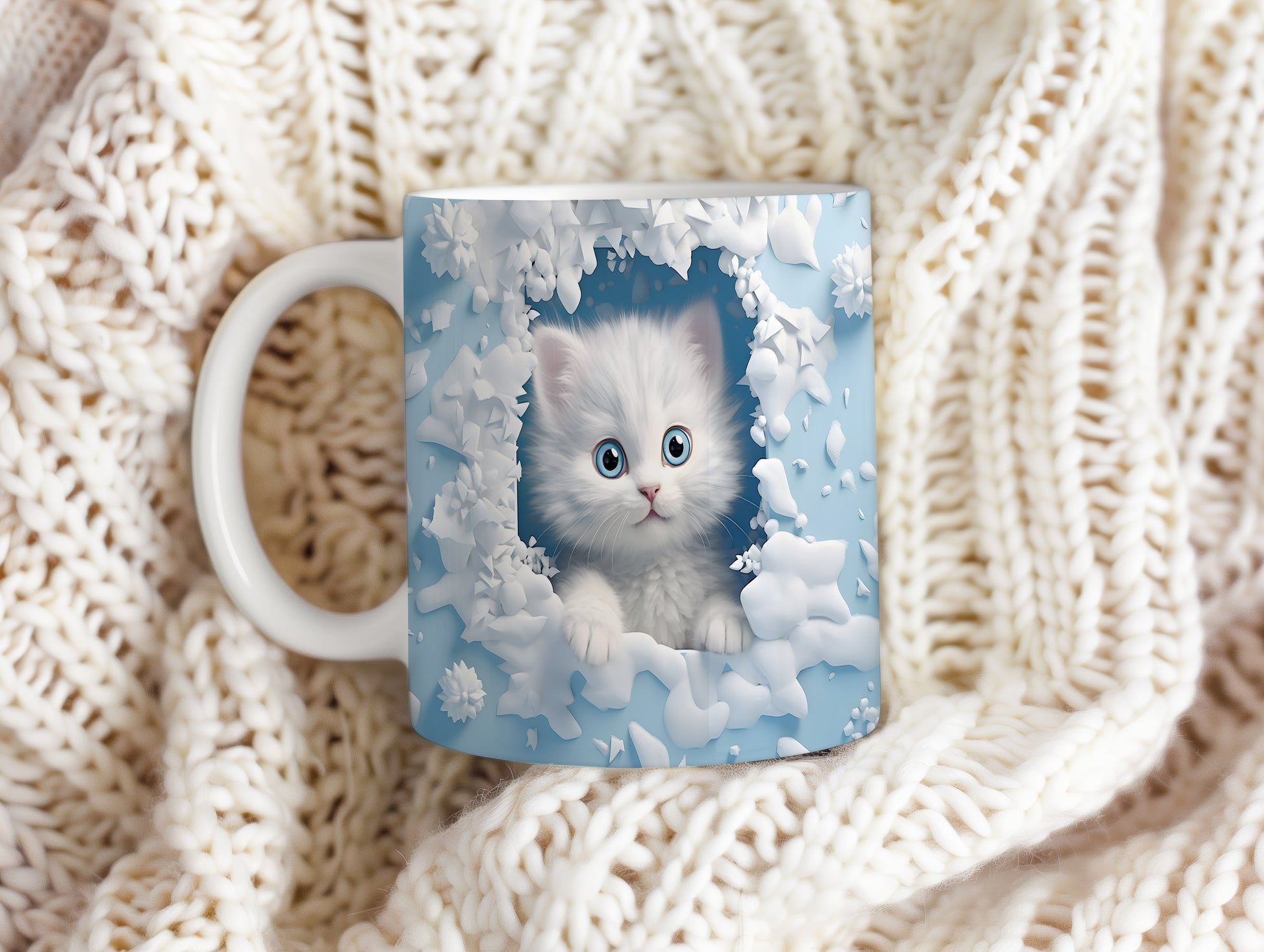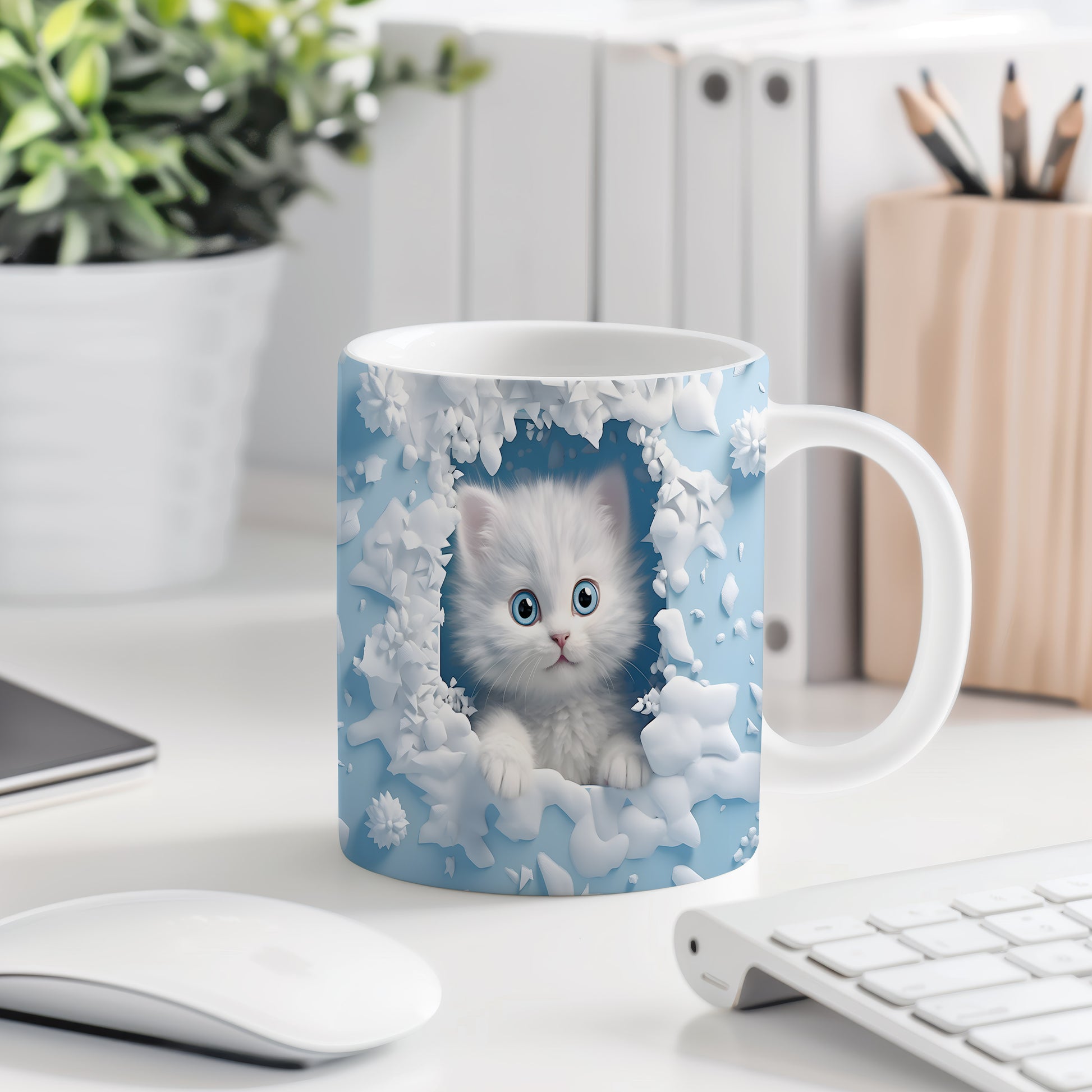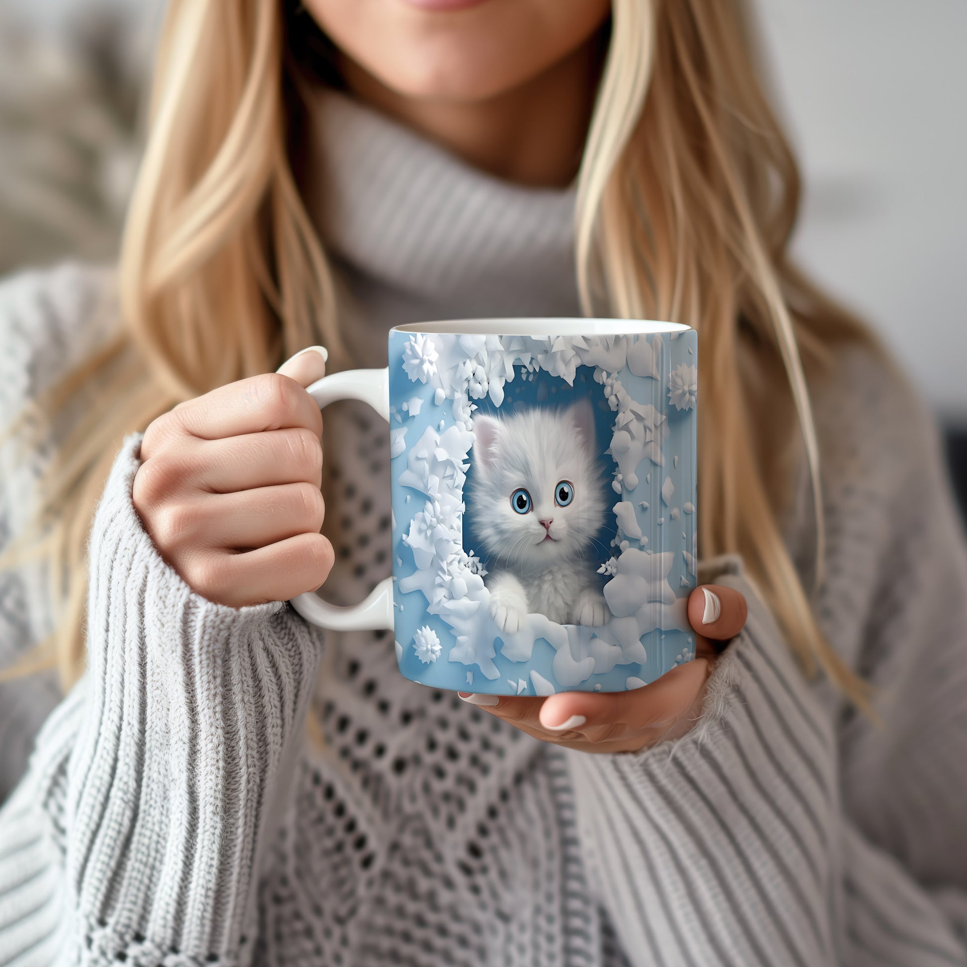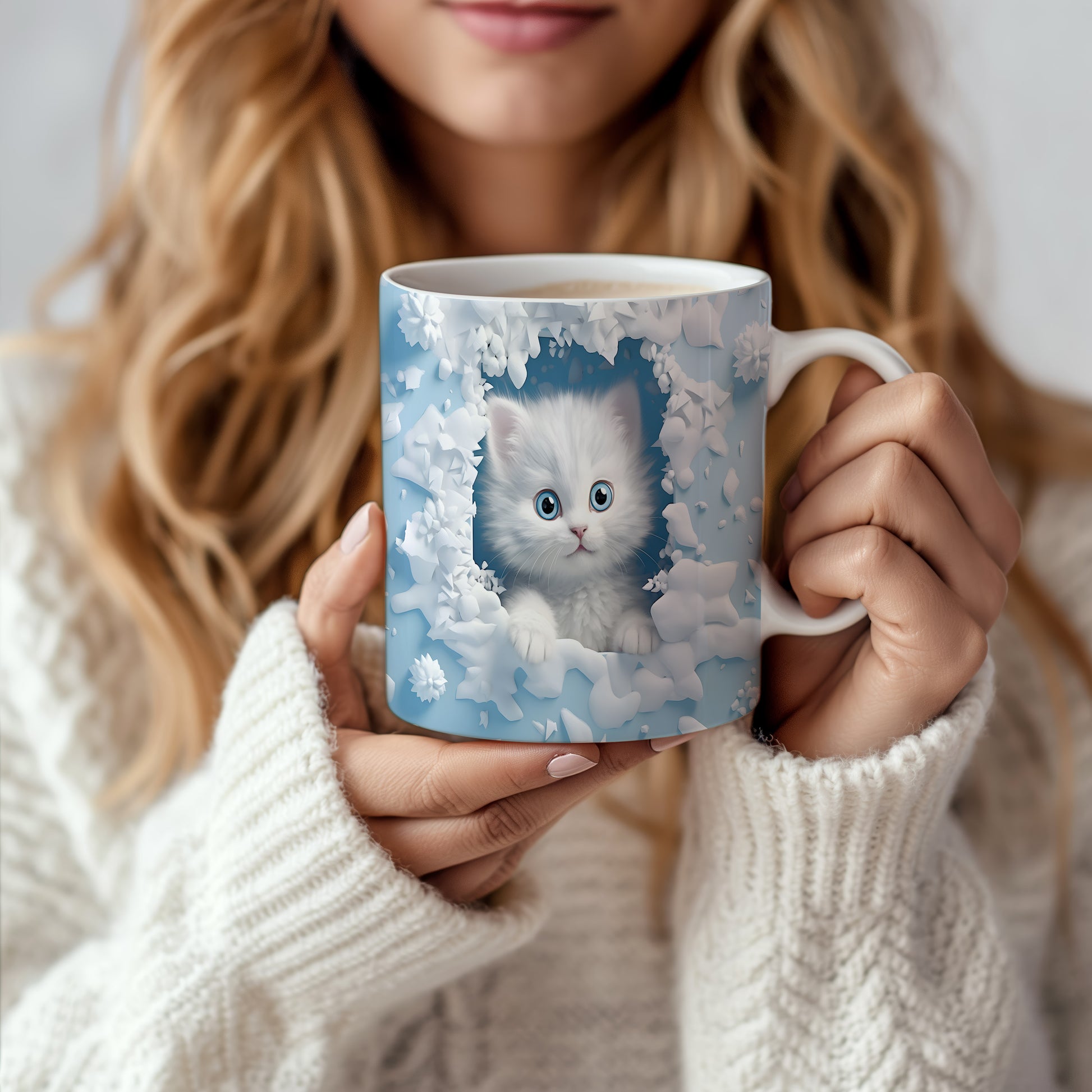 Hrnek s roztomilým kotětem v zimním prostředí přináší kouzelnou atmosféru. Tento hrnek je ideální pro milovníky koček a zimních scenérií, skvělý tip na dárek pro přátele nebo rodinu. Materiál: keramika. Objem: 330 ml. Vhodné do myčky i mikrovlnky. Užijte si svůj oblíbený nápoj s tímto hrnkem, který potěší každého milovníka zvířat.