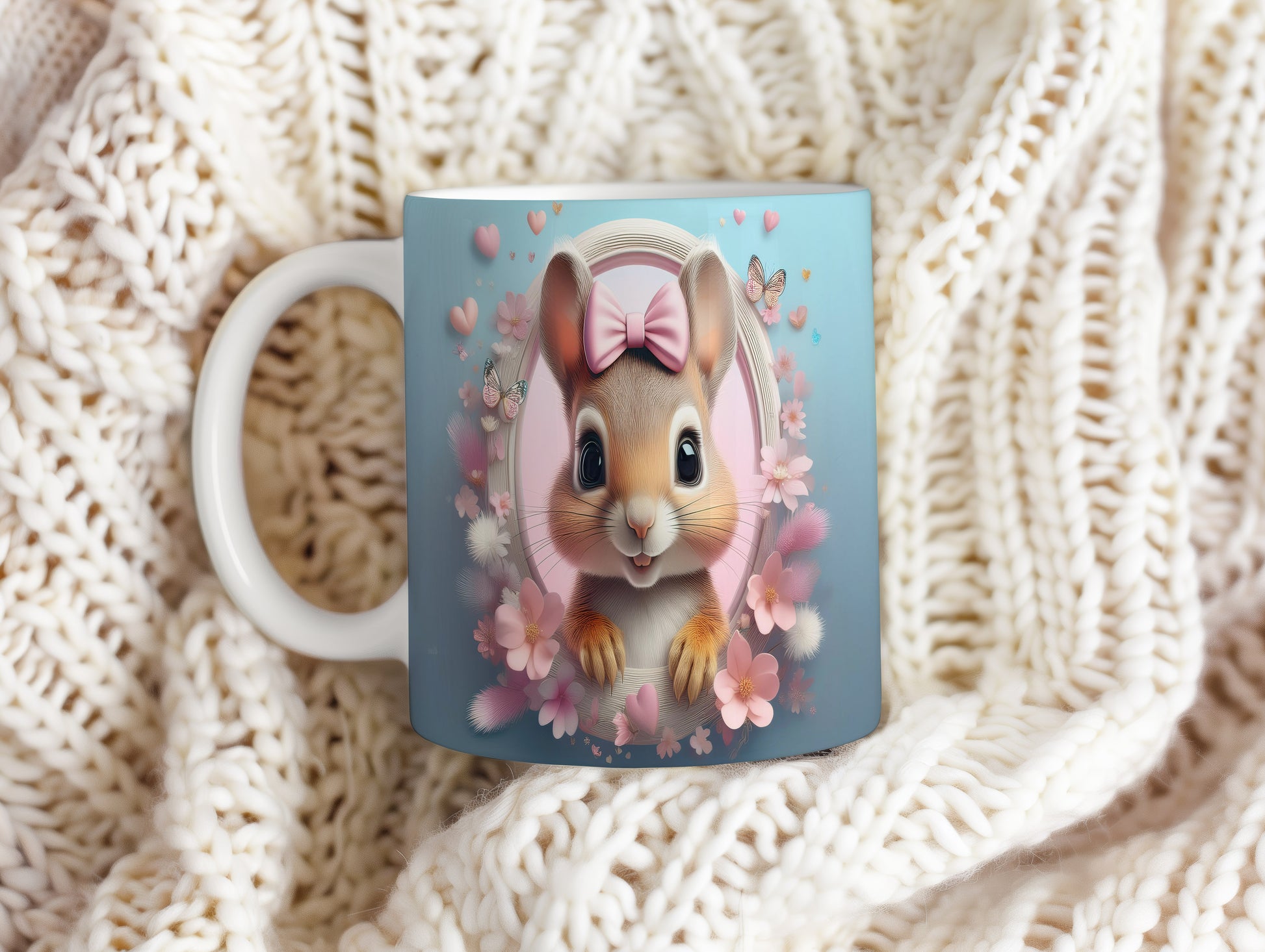 Hrnek s roztomilým králíčkem – modrými detaily