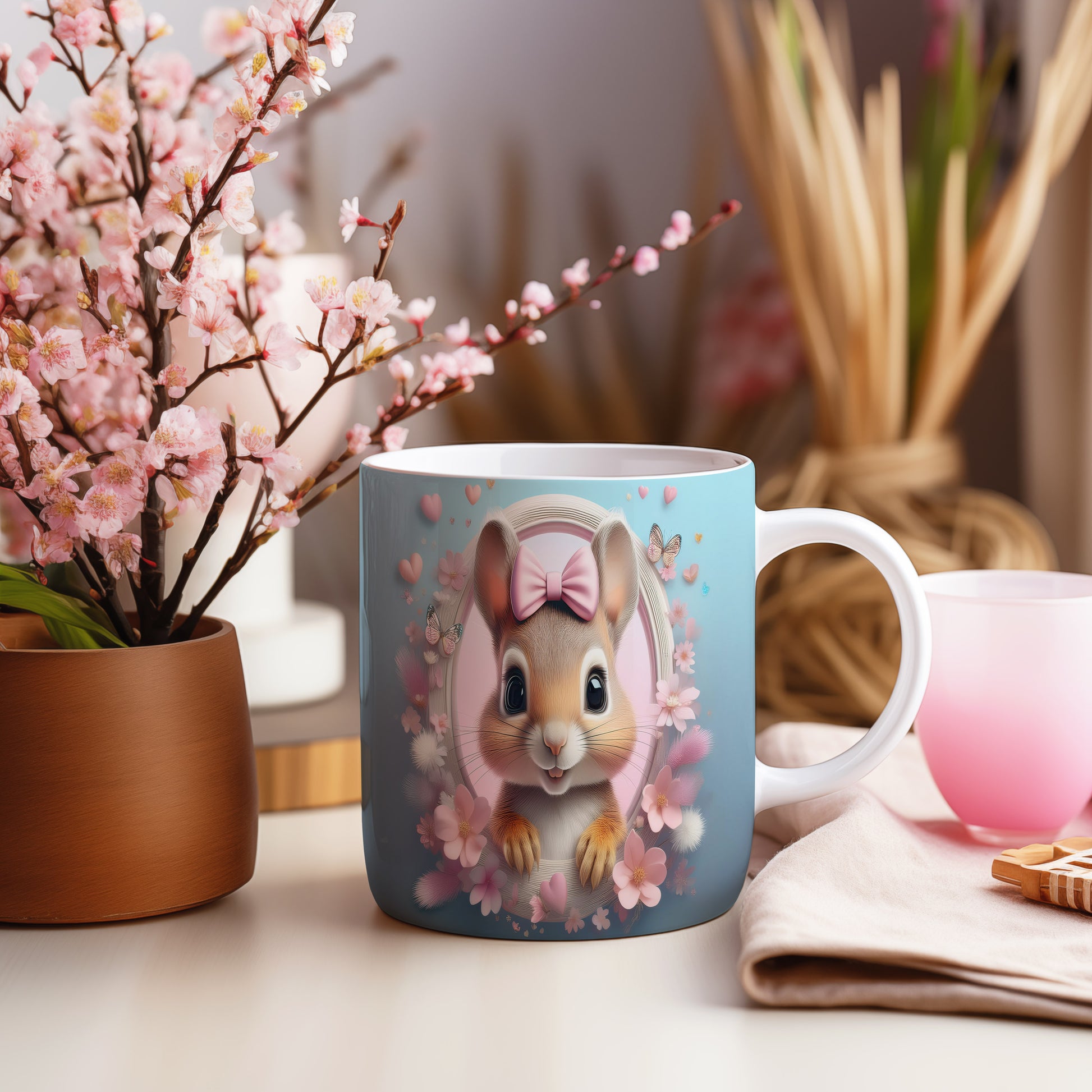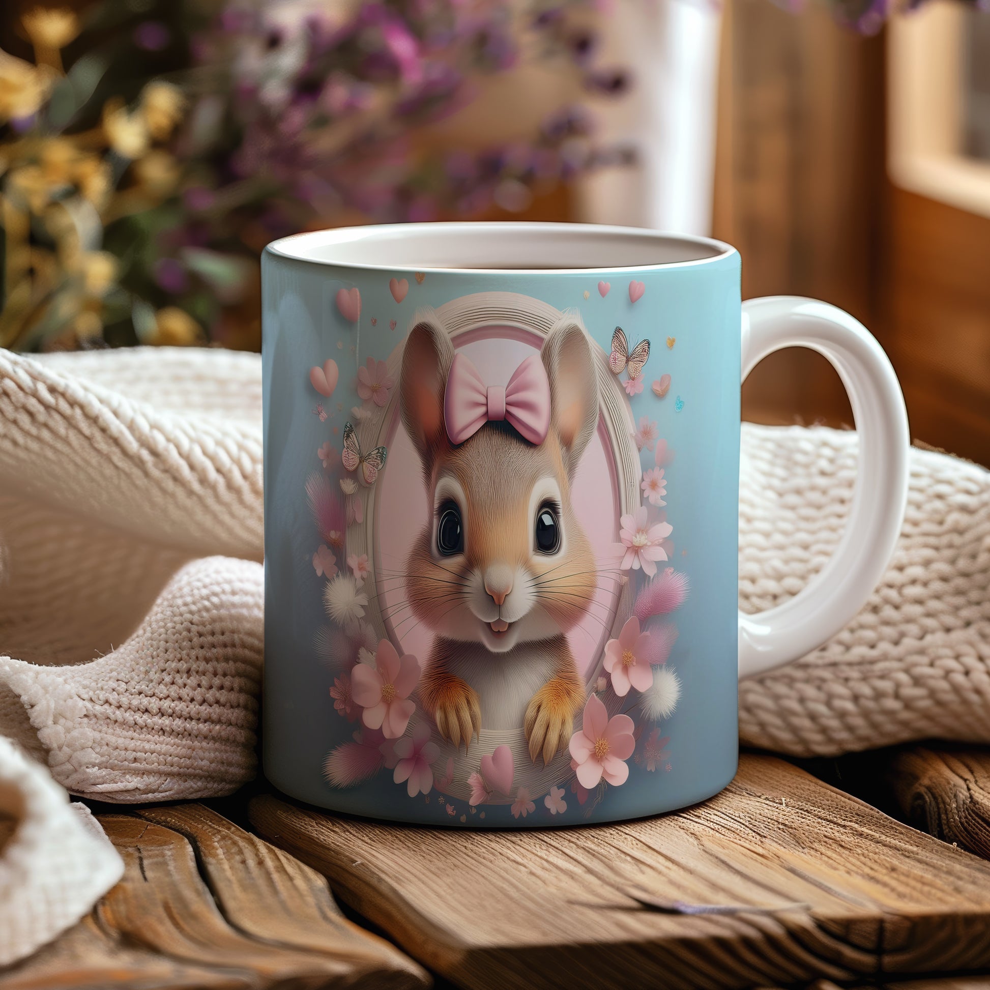 Hrnek s motivem roztomilého králíčka a květin je ideální pro všechny milovníky zvířat a přírody. Skvělý tip na dárek pro děti i dospělé, kteří ocení jemnost a hravost. Materiál: keramika. Objem: 330 ml. Vhodné do myčky i mikrovlnky. Tento hrnek přináší radost do každého dne a potěší při každém doušku oblíbeného nápoje.