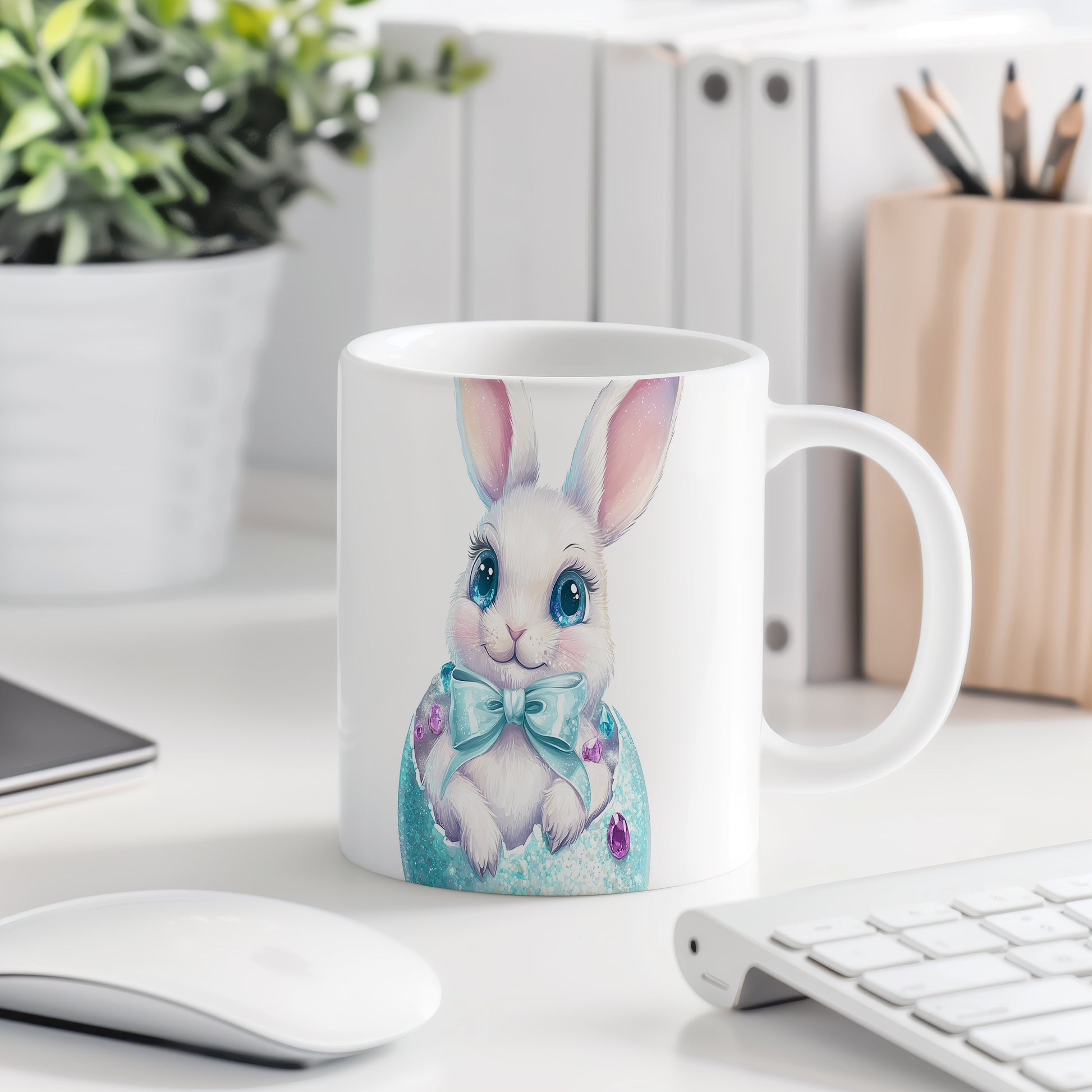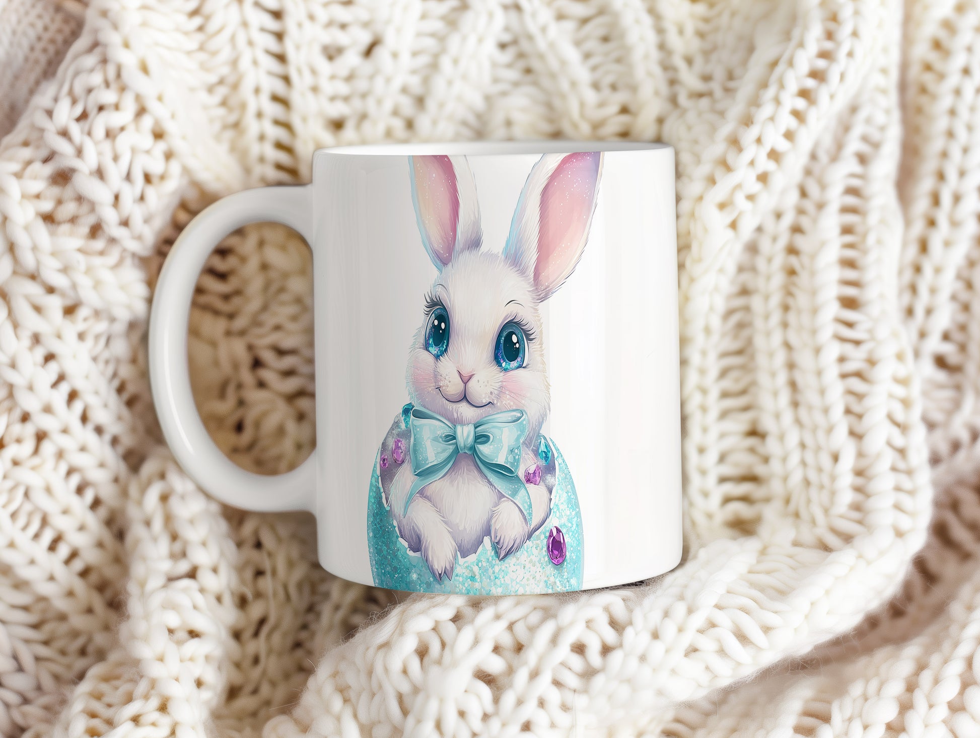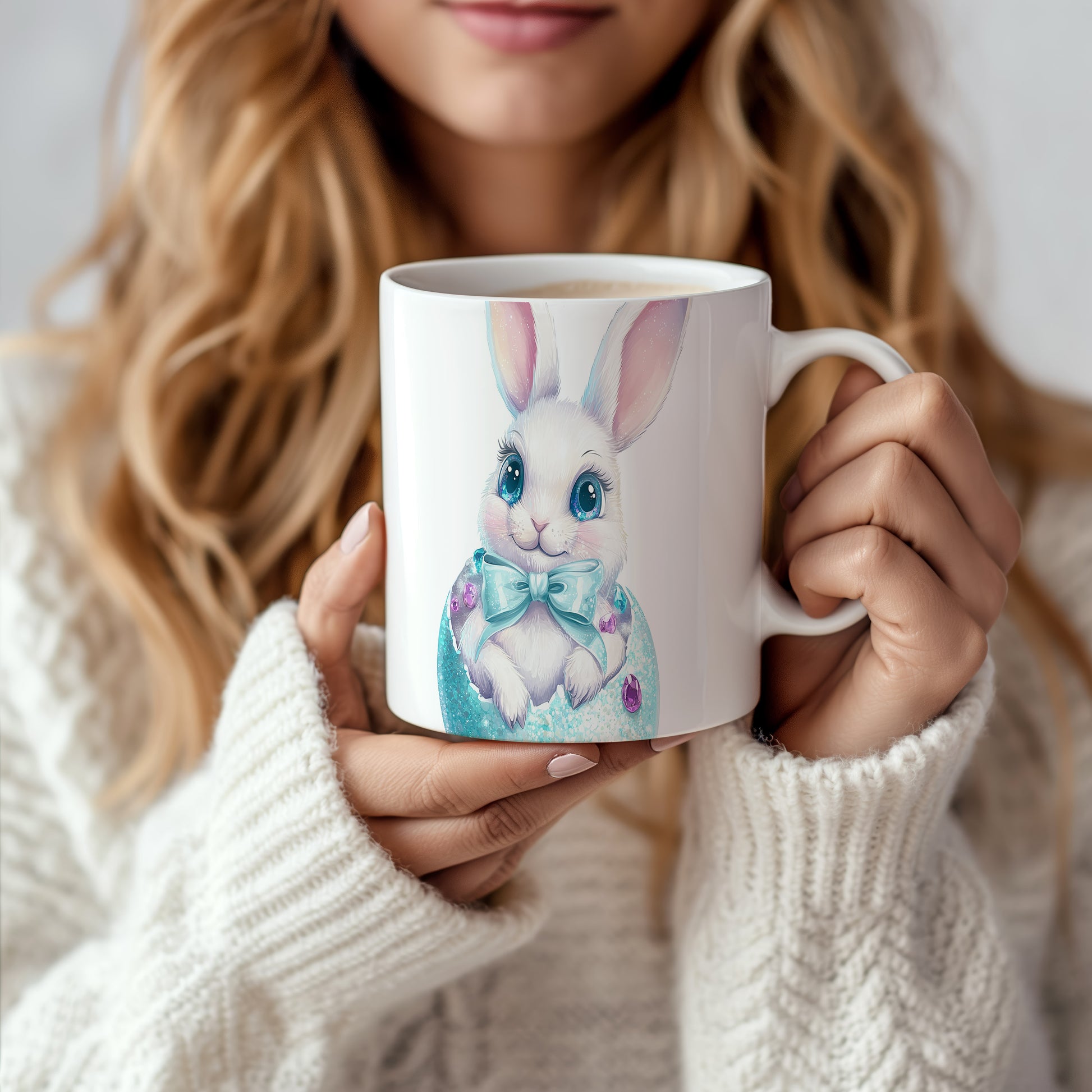 Hrnek s roztomilým králičkem v perlovém vajíčku