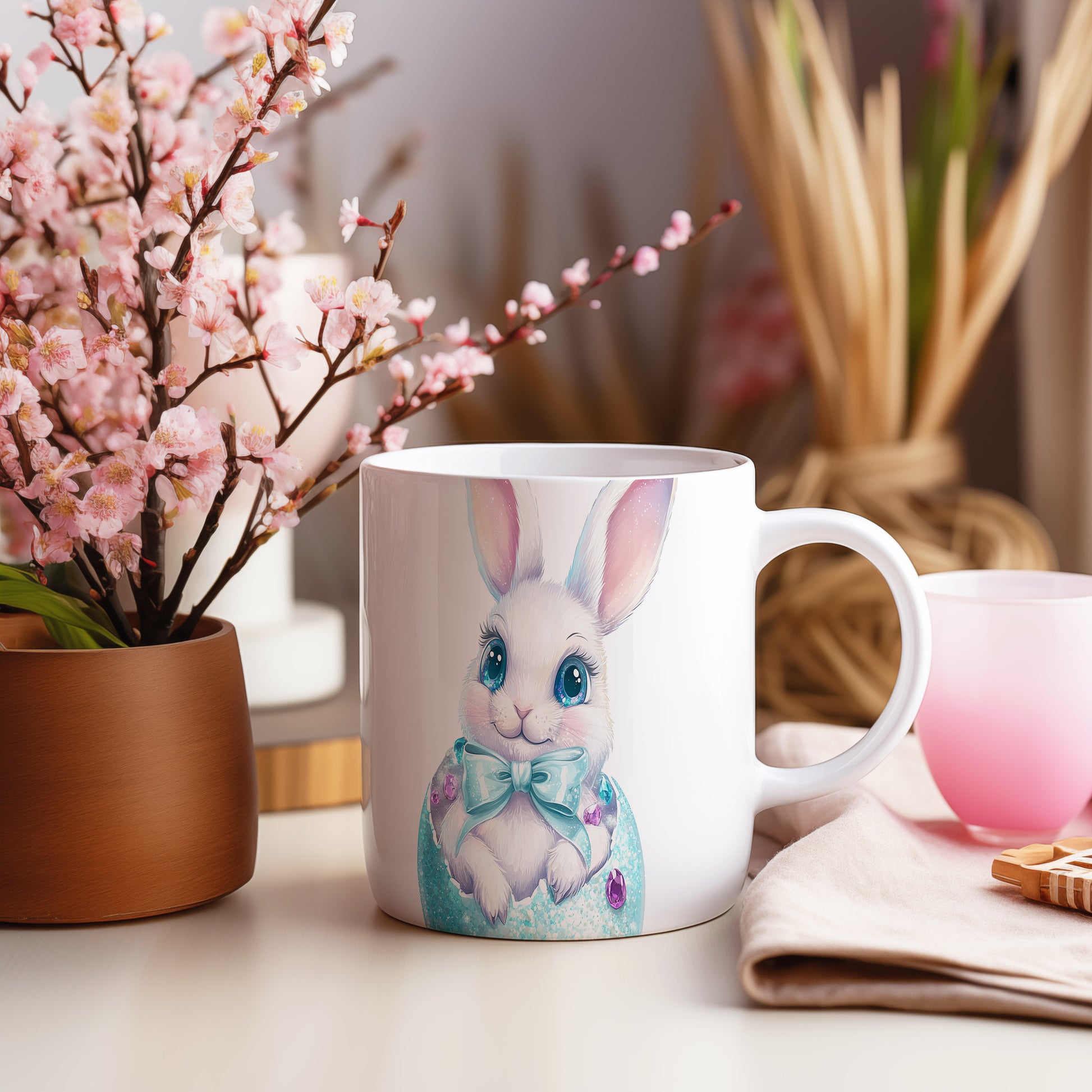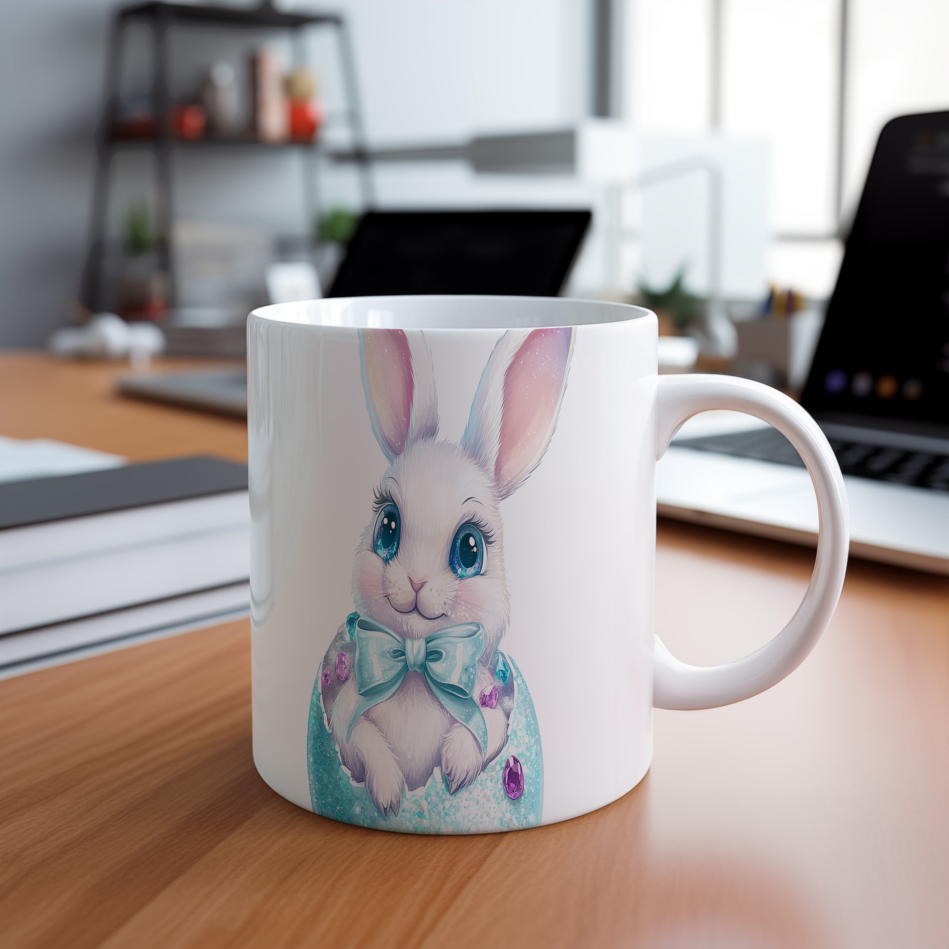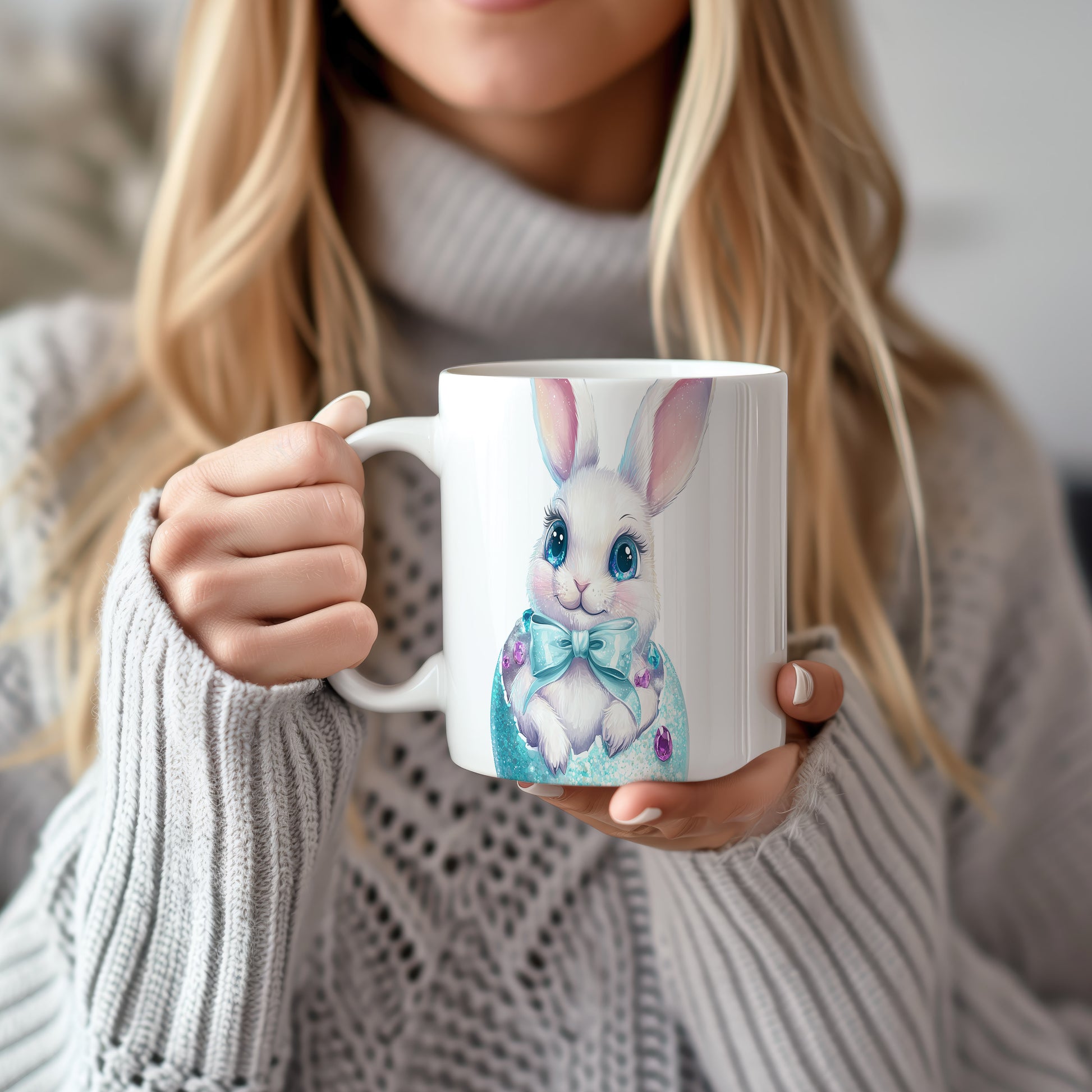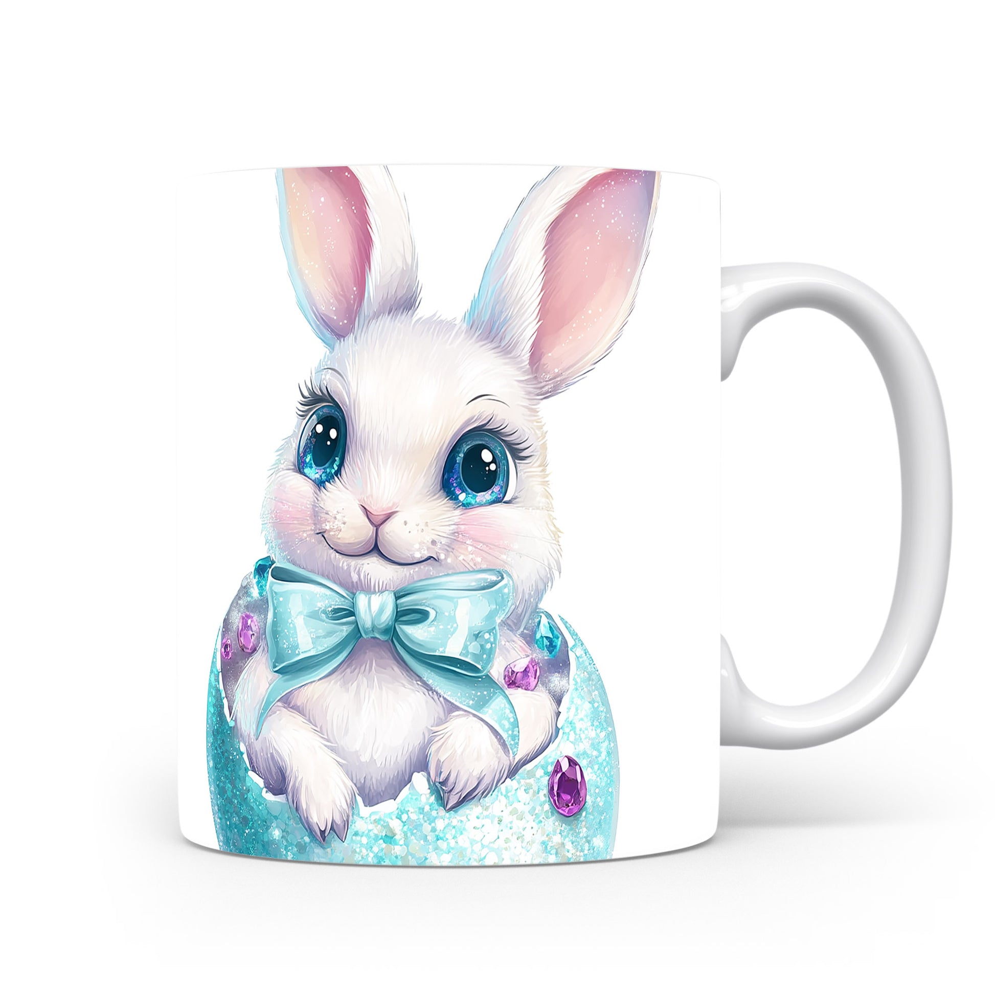 Hrnek s roztomilým králičkem v perlovém vajíčku