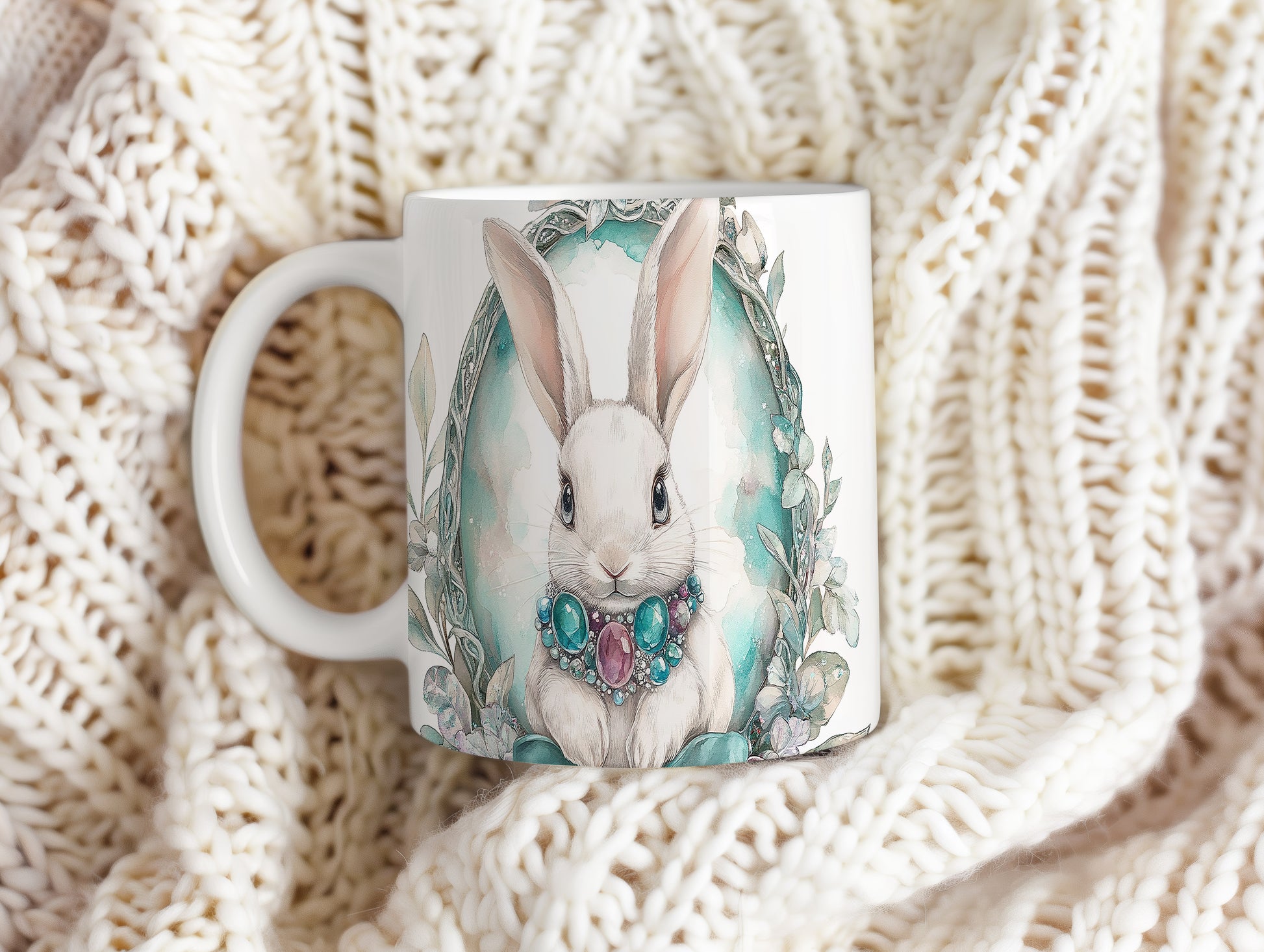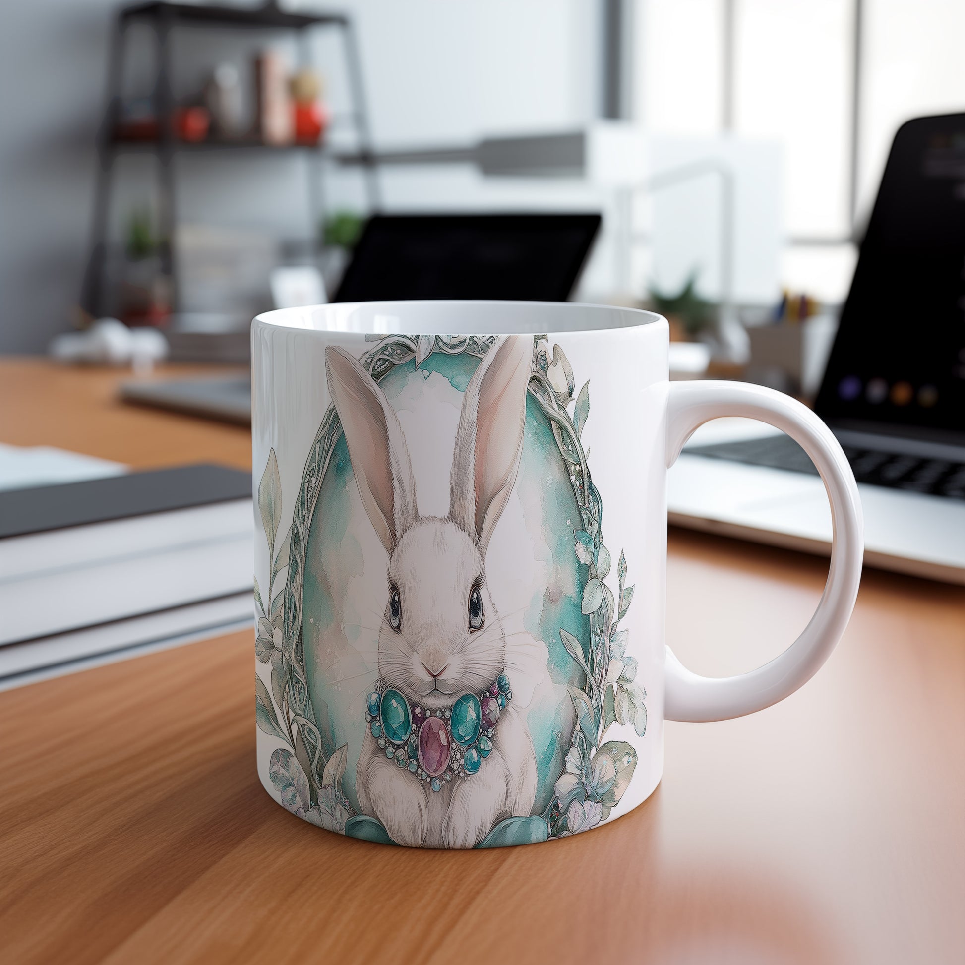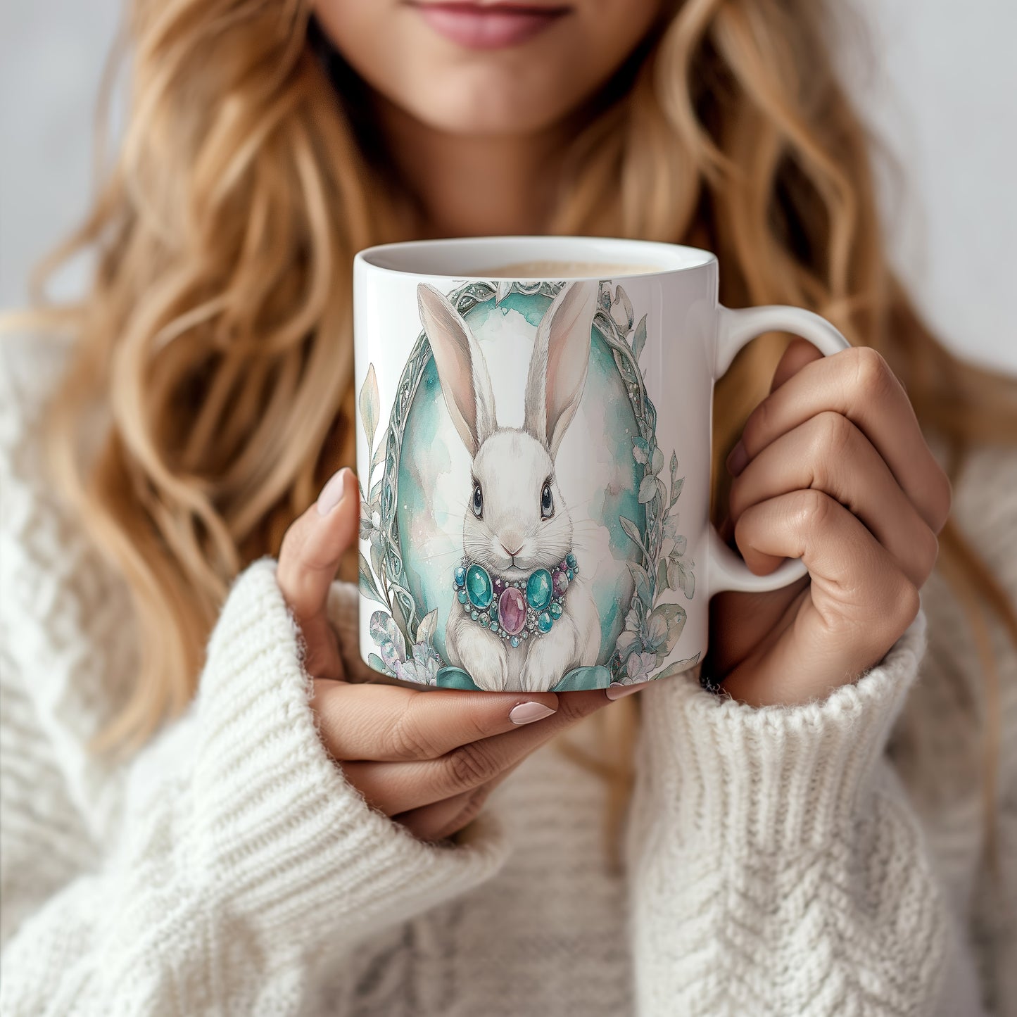 Hrnek s roztomilým králíkem a šperky je ideální volbou pro milovníky zvířat a pastelových barev. Tento hrnek potěší každého, kdo hledá originální dárek pro své blízké. Materiál: keramika. Objem: 330 ml. Vhodné do myčky i mikrovlnky. Používání tohoto hrnku přináší radost a zlepšuje každodenní pitný rituál.