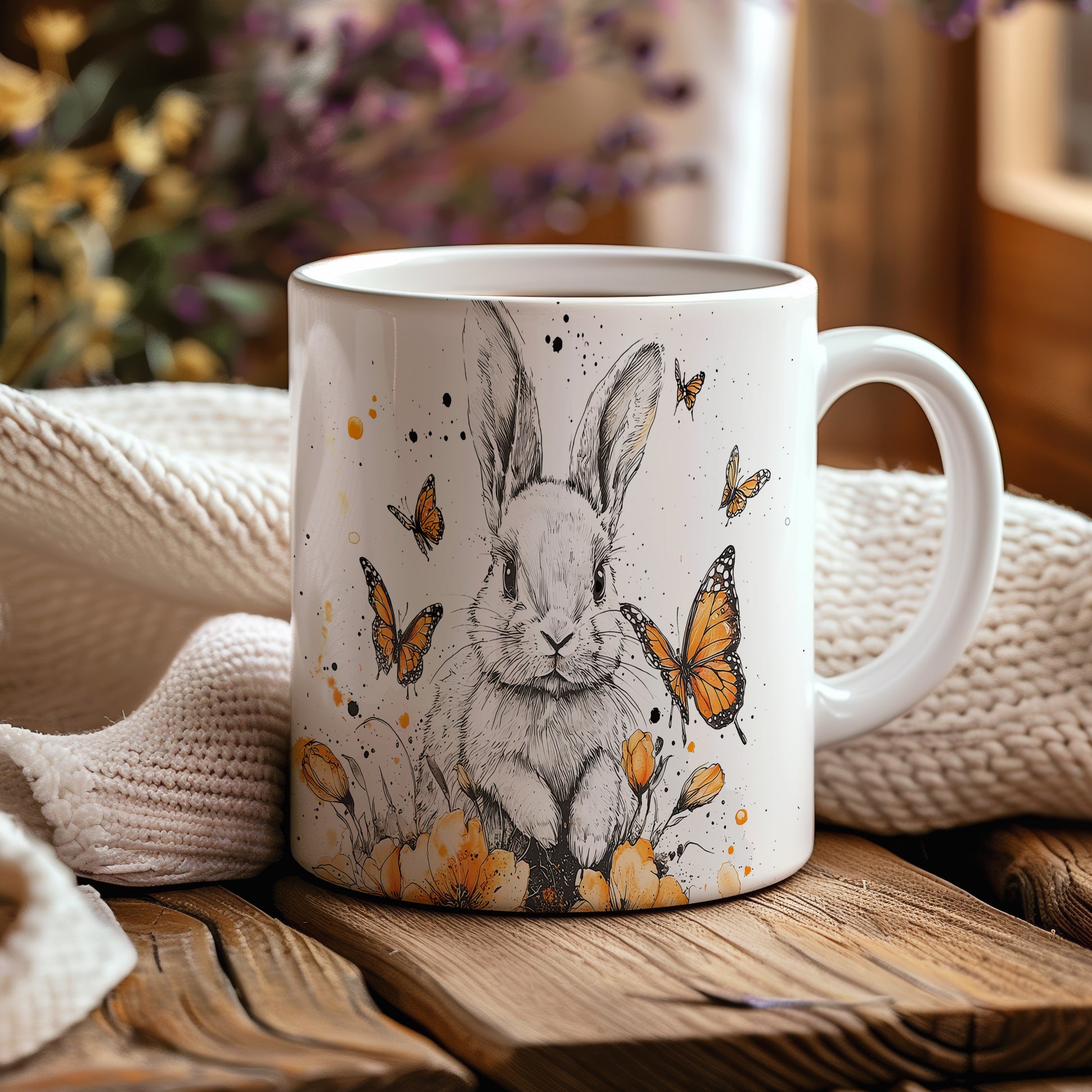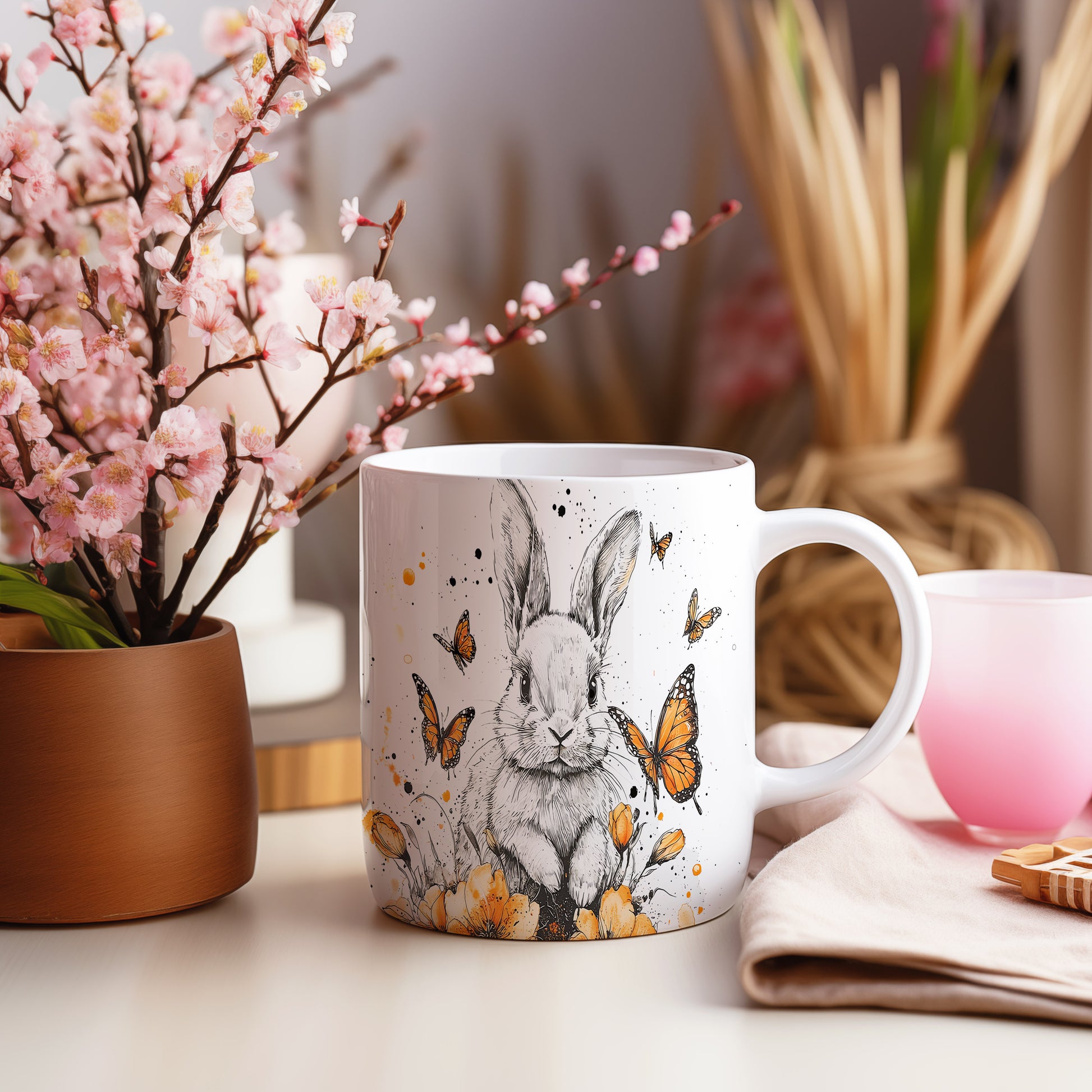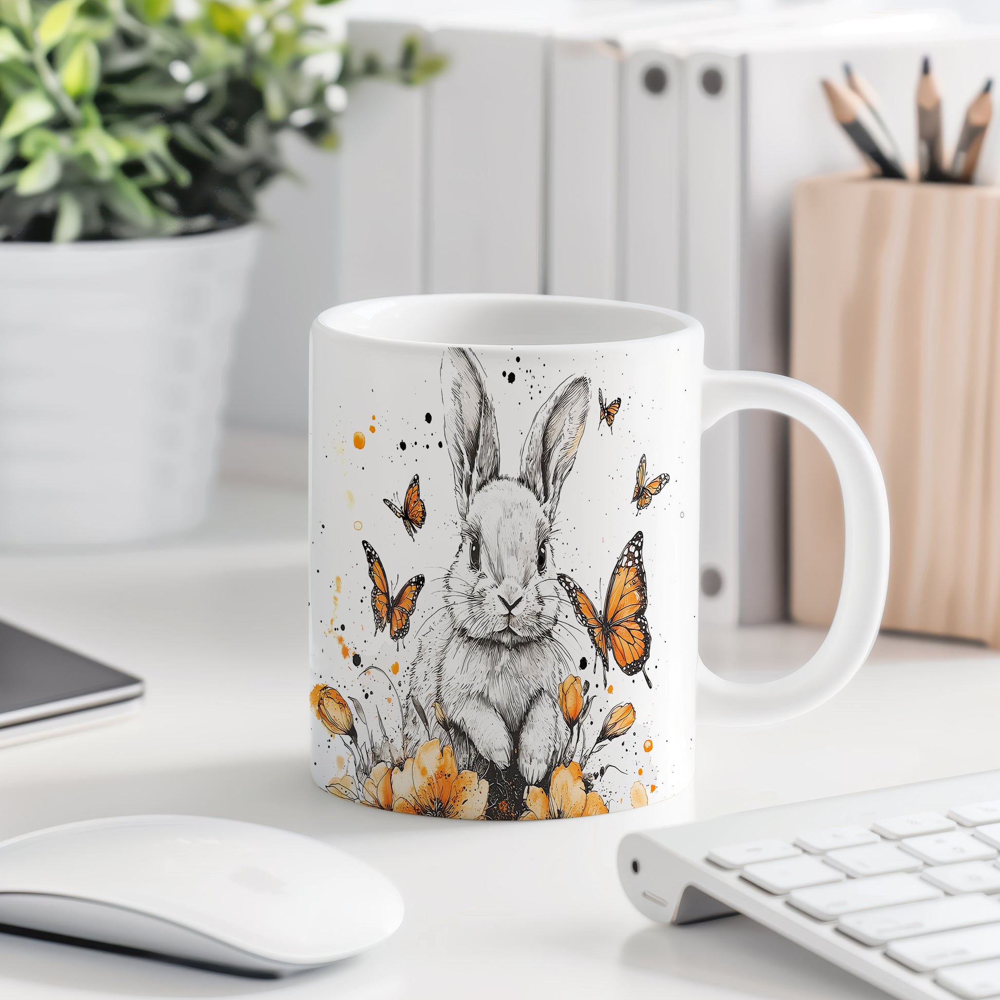 Tento keramický hrnek s motivem roztomilého králíka a motýlů je ideální volbou pro milovníky přírody a zvířat. Skvěle se hodí jako dárek pro děti nebo přátele, kteří ocení hravý design. Materiál: keramika. Objem: 330 ml. Vhodné do myčky i mikrovlnky. Díky svému veselému vzhledu zpříjemní každé pití.