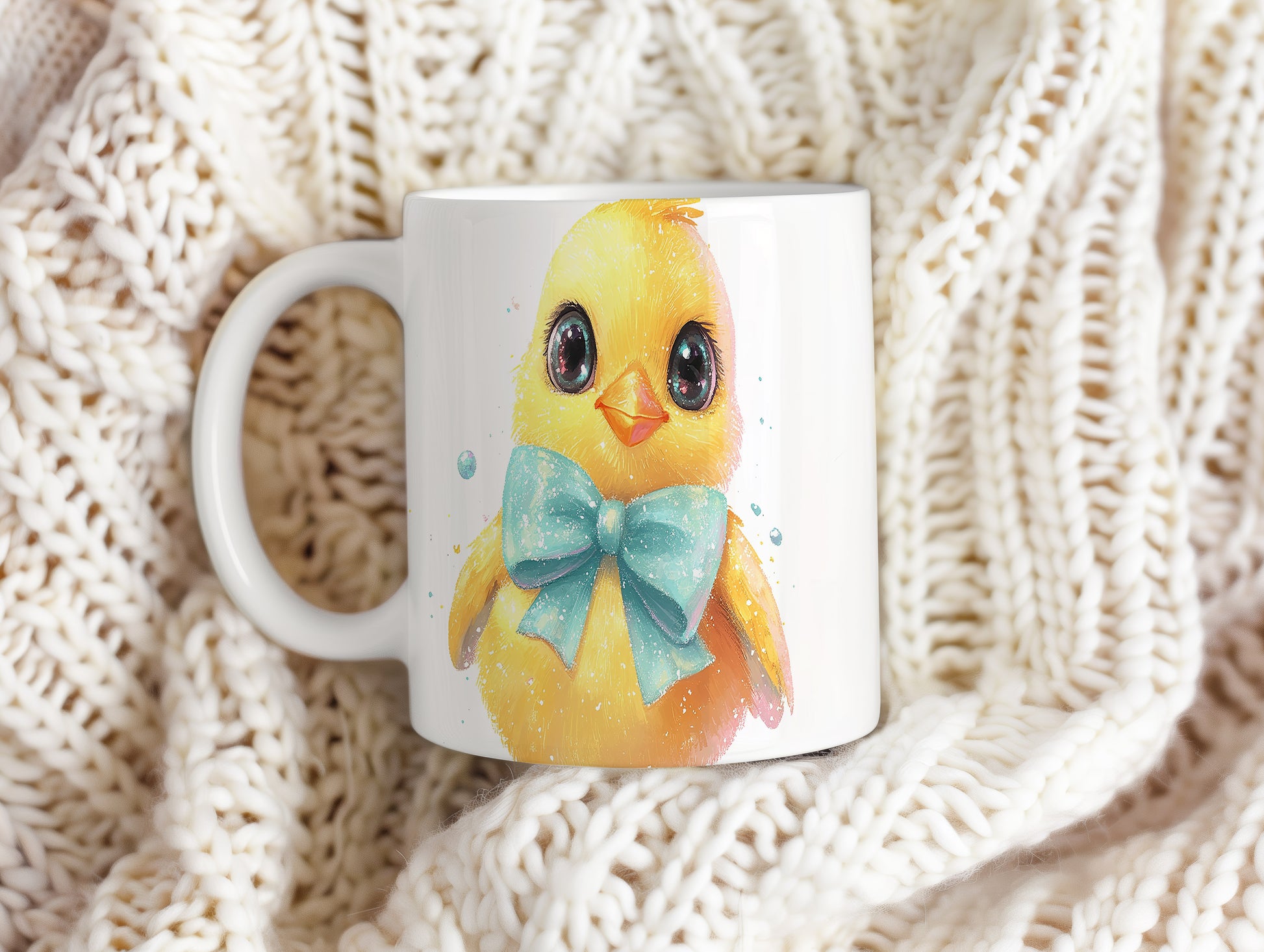 Hrnek s roztomilým kuřátkem – modrými detaily