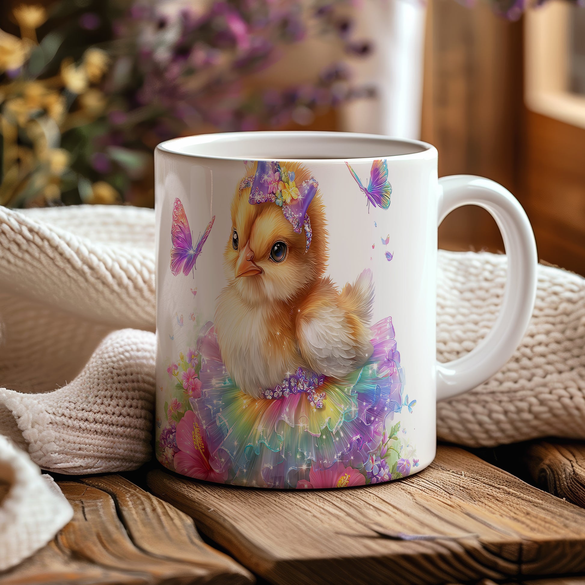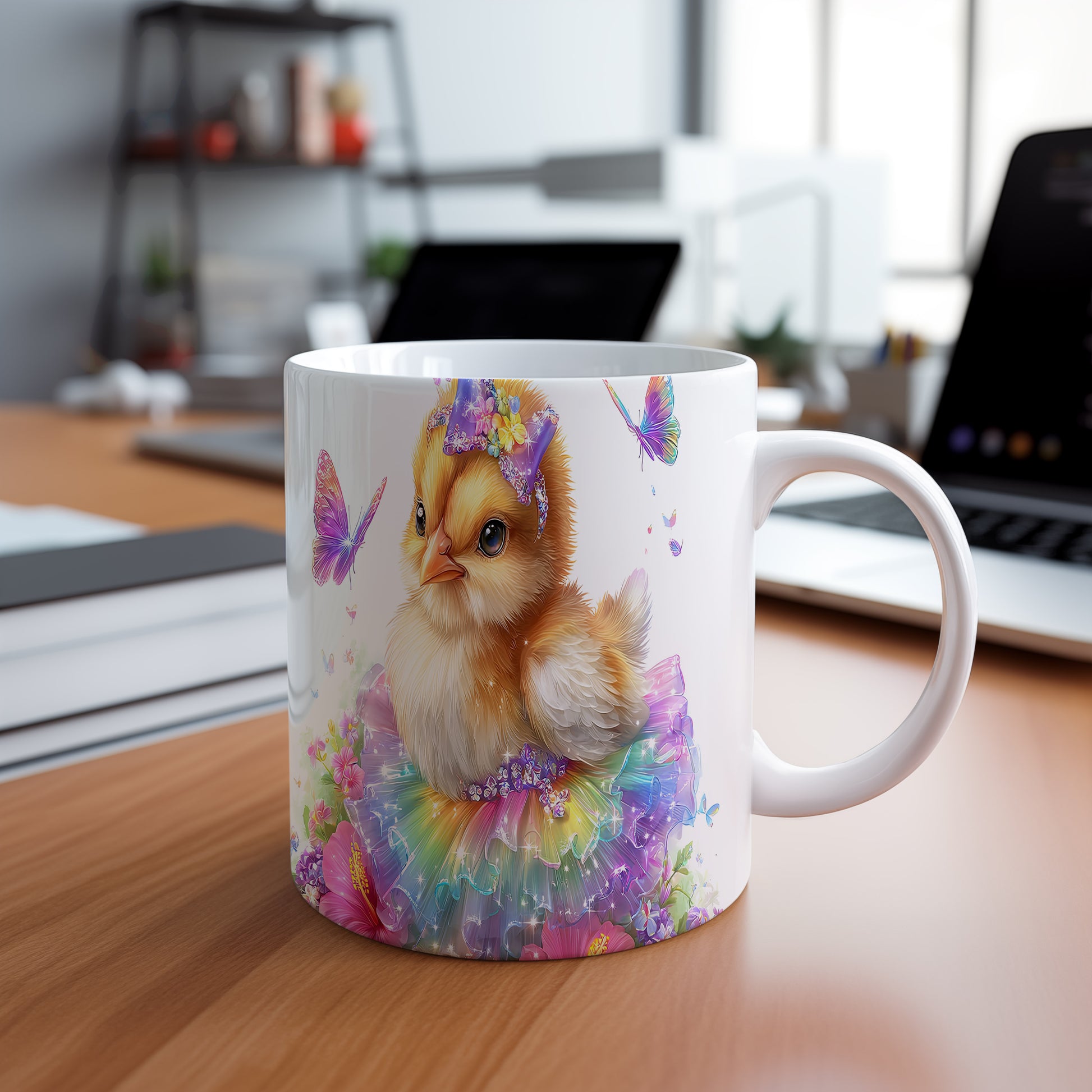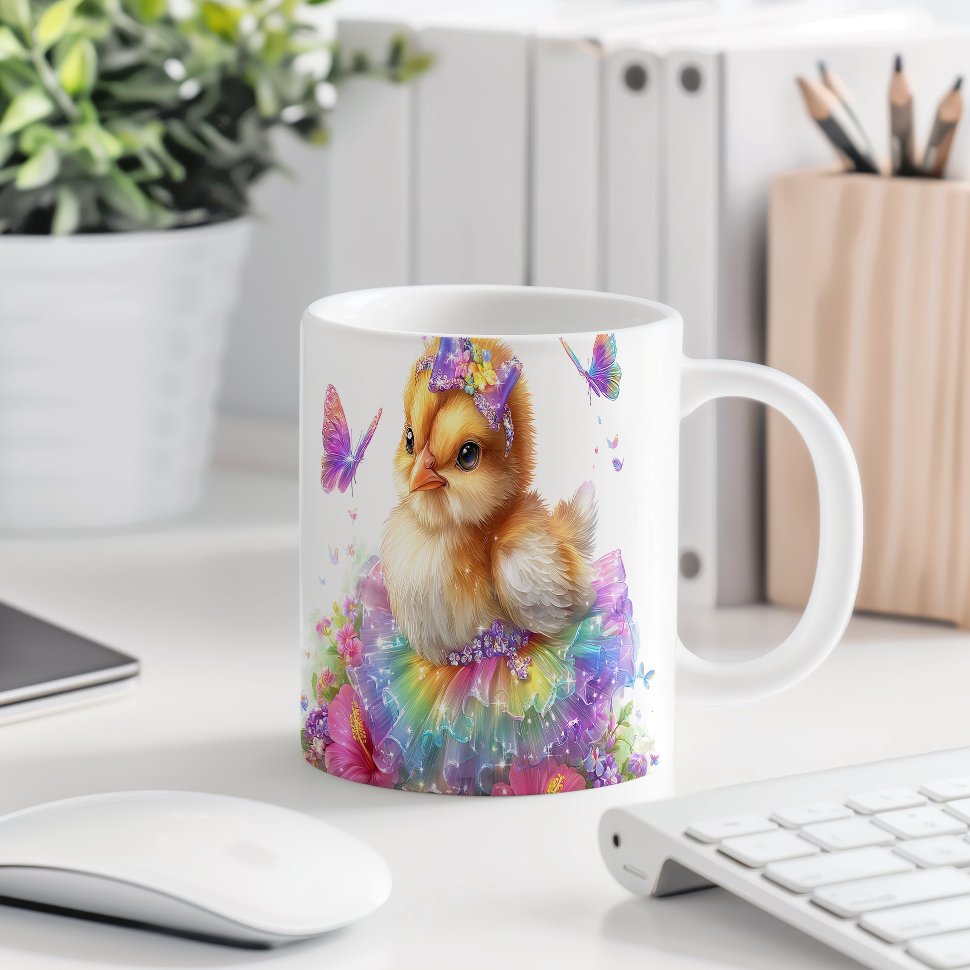 Tento keramický hrnek zobrazuje roztomilé kuřátko v barevné baletní sukni. Je ideální pro milovníky zvířat a skvělý tip na dárek pro děti nebo přátele. Materiál: keramika. Objem: 330 ml. Vhodné do myčky i mikrovlnky. Používání tohoto hrnku přináší radost a veselou atmosféru při každém doušku.