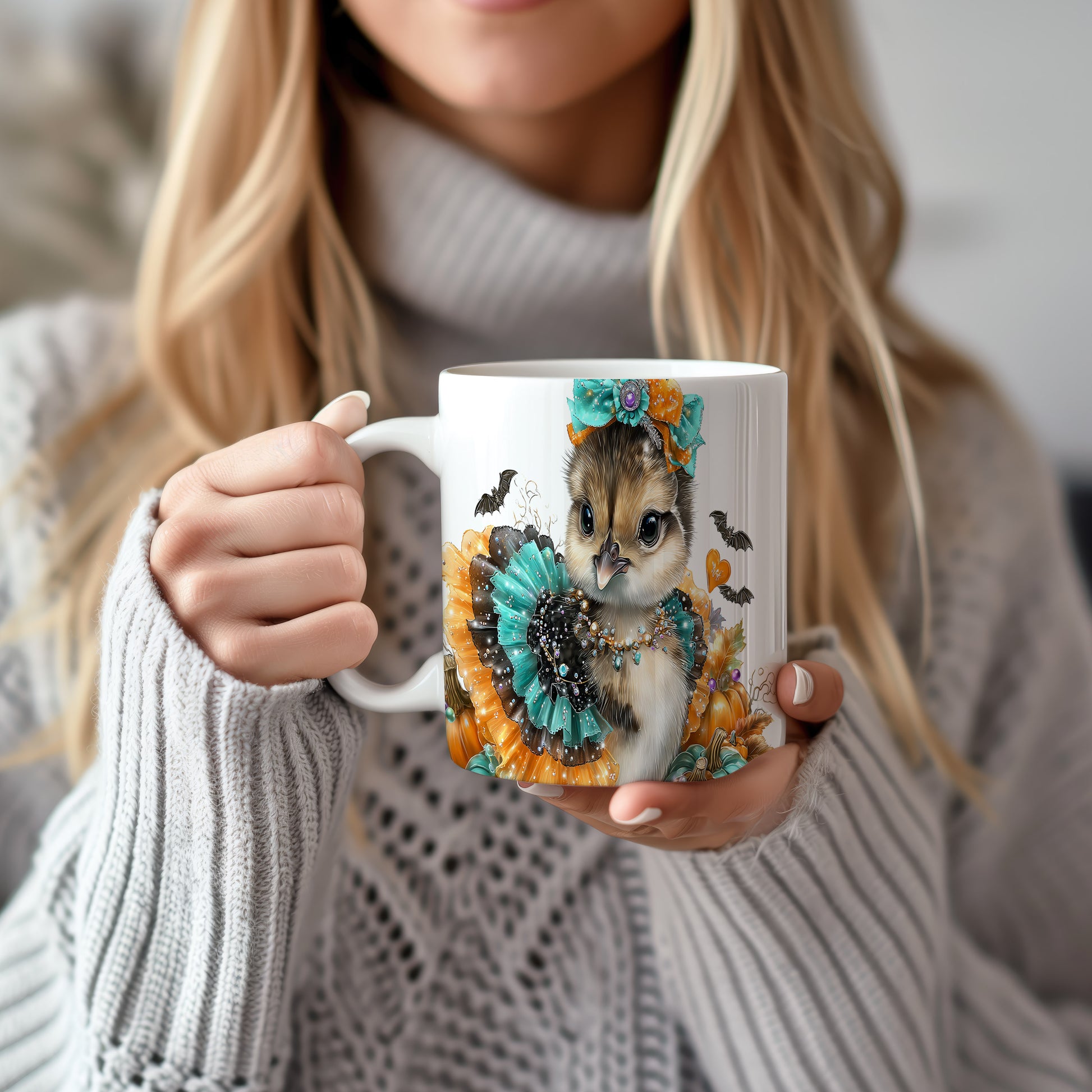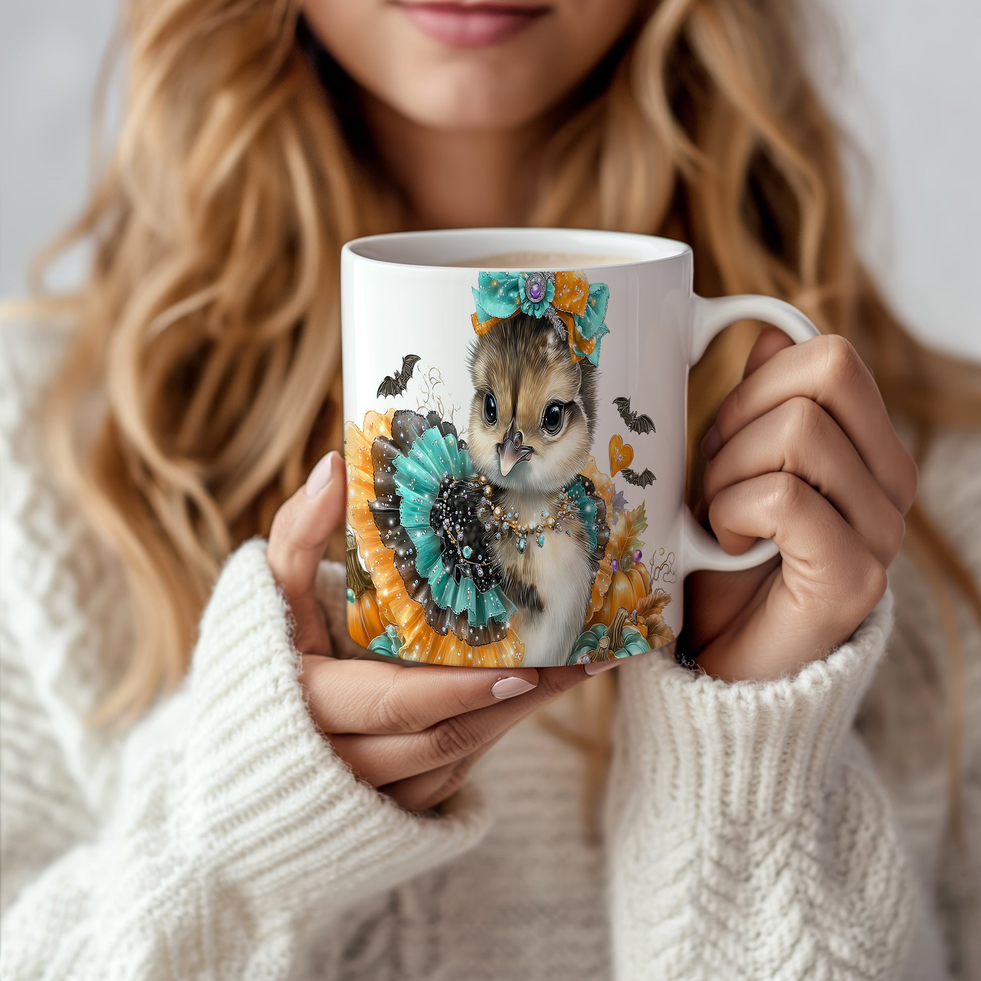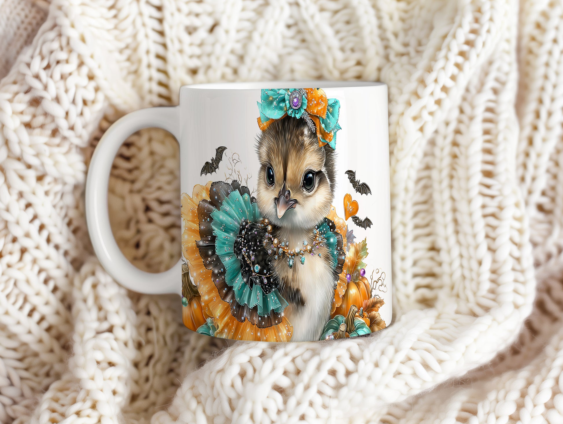 Hrnek s roztomilým kuřátkem v kostýmu