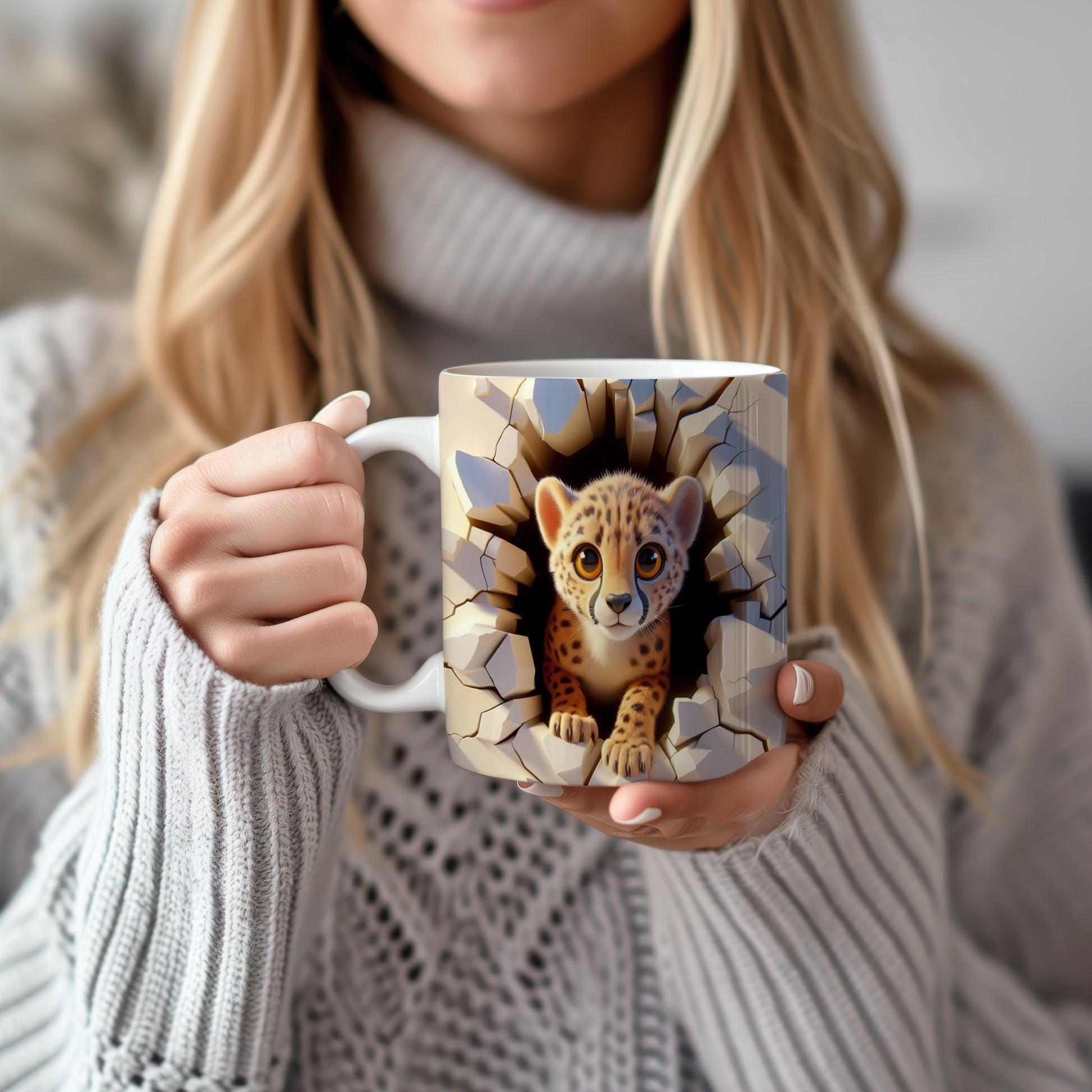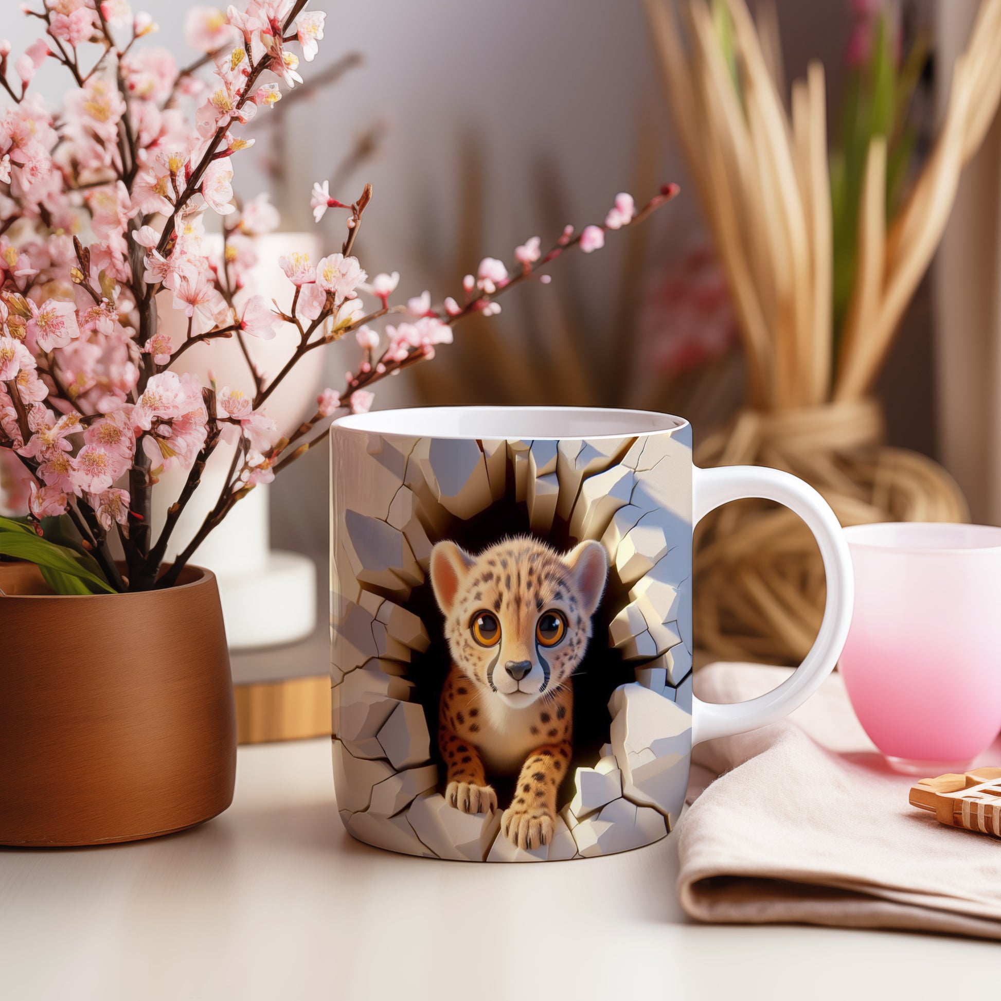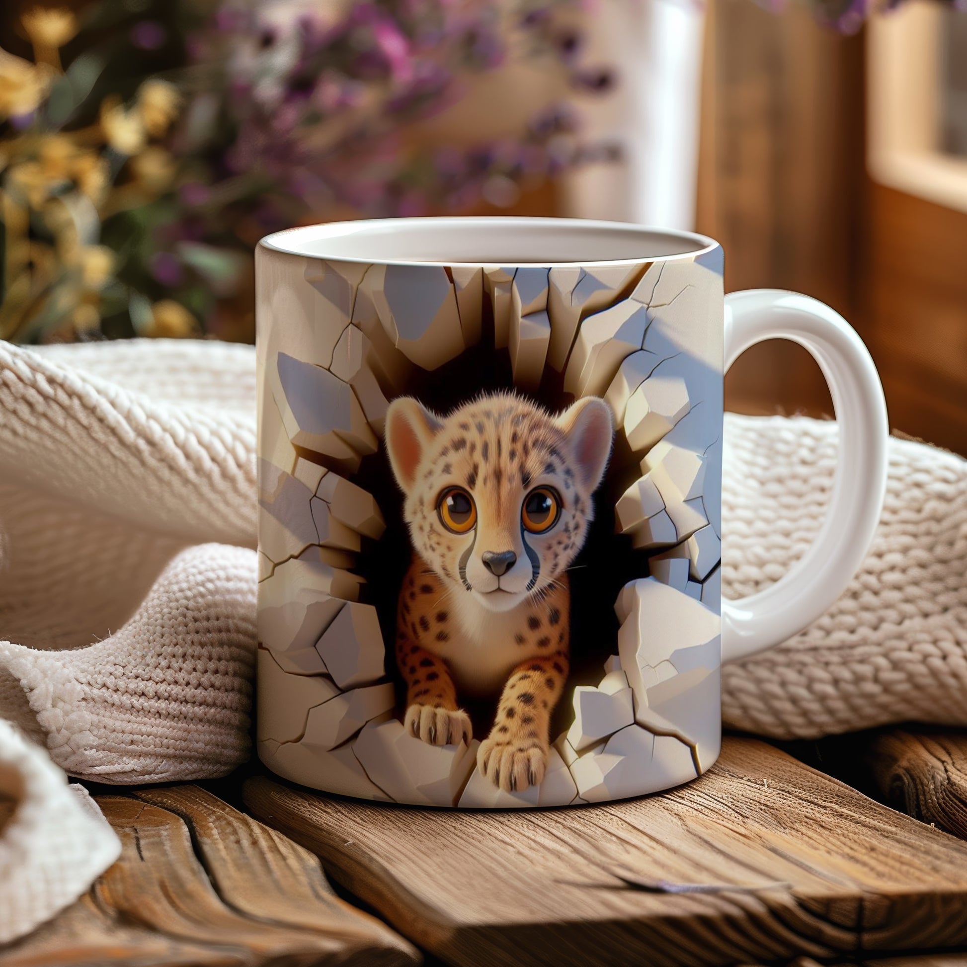 Tento keramický hrnek s ilustrací roztomilého leopardího kotěte je skvělým doplňkem pro každého milovníka zvířat. Je ideální jako dárek pro děti i dospělé, kteří ocení hravý design. Materiál: keramika. Objem: 330 ml. Vhodné do myčky i mikrovlnky. Používání tohoto hrnku přináší radost a zábavu při každém doušku.
