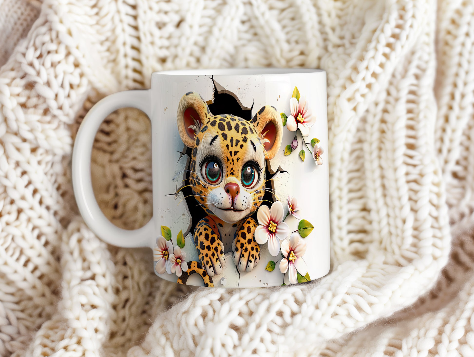 Hrnek s roztomilým leopardským mládětem a 3D efektem