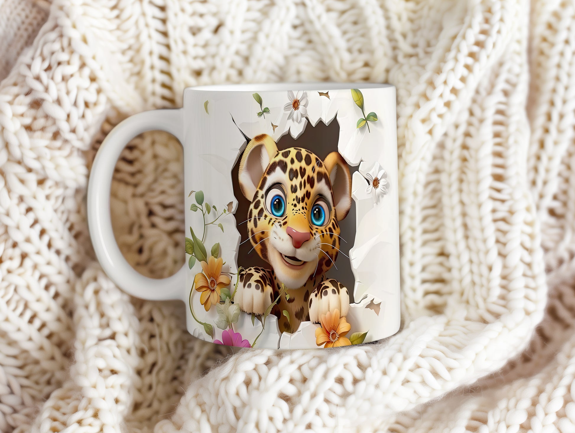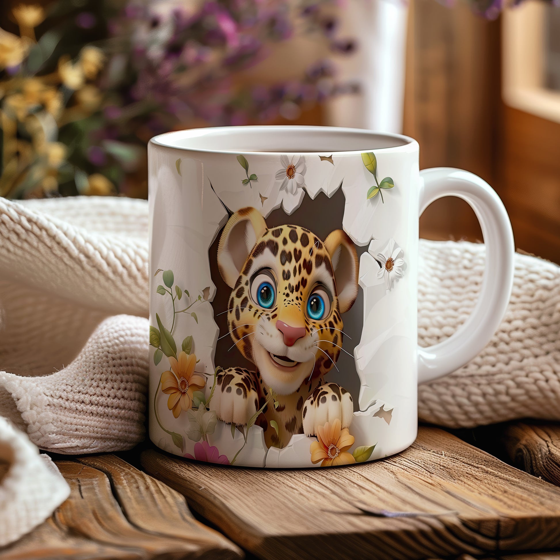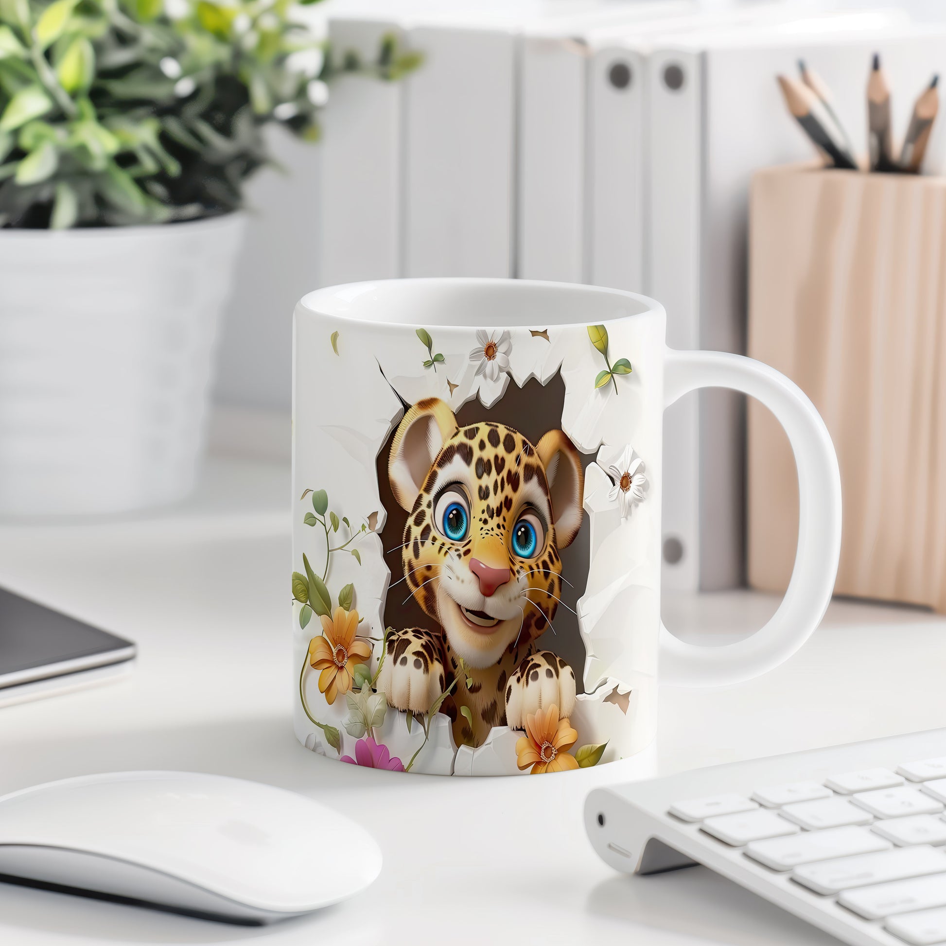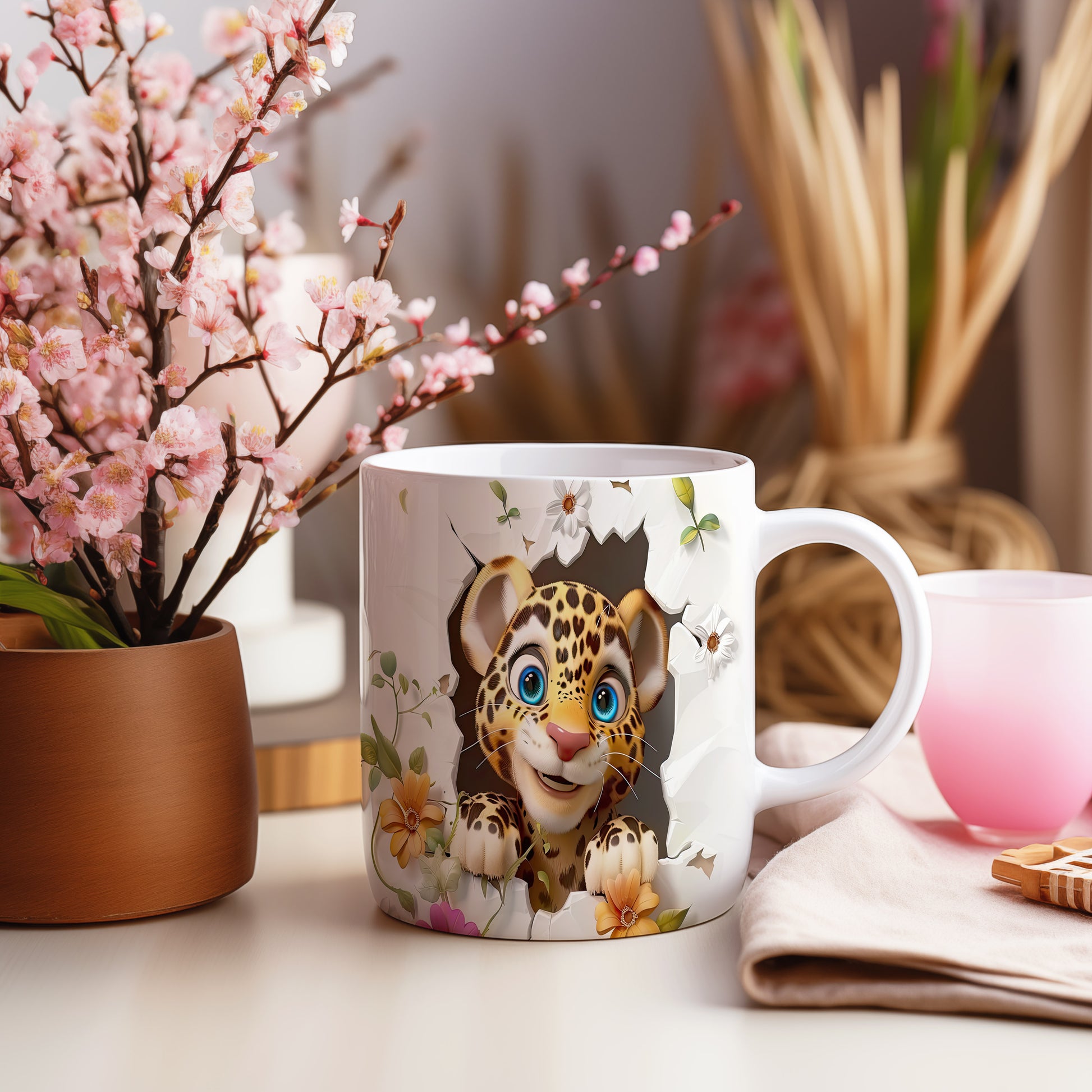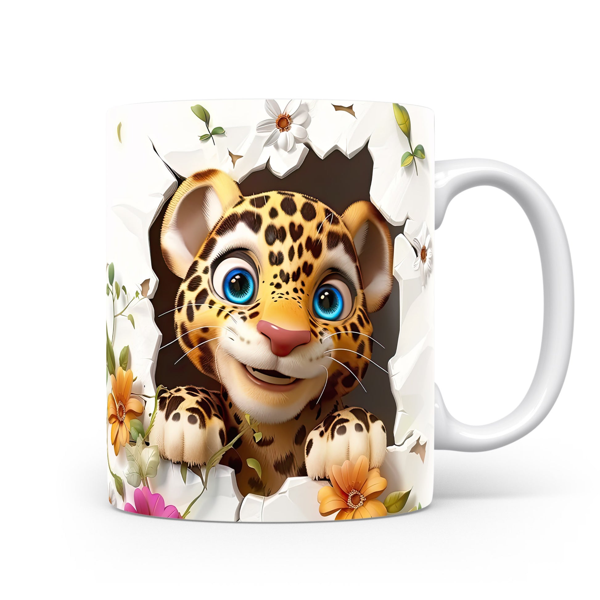 Hrnek s roztomilým levhartíkem a květinami je ideální volbou pro milovníky zvířat a přírody. Tento hrnek potěší každého, kdo hledá originální dárek pro své blízké. Materiál: keramika. Objem: 330 ml. Vhodné do myčky i mikrovlnky. Díky svému designu přináší radost do každodenního pití.