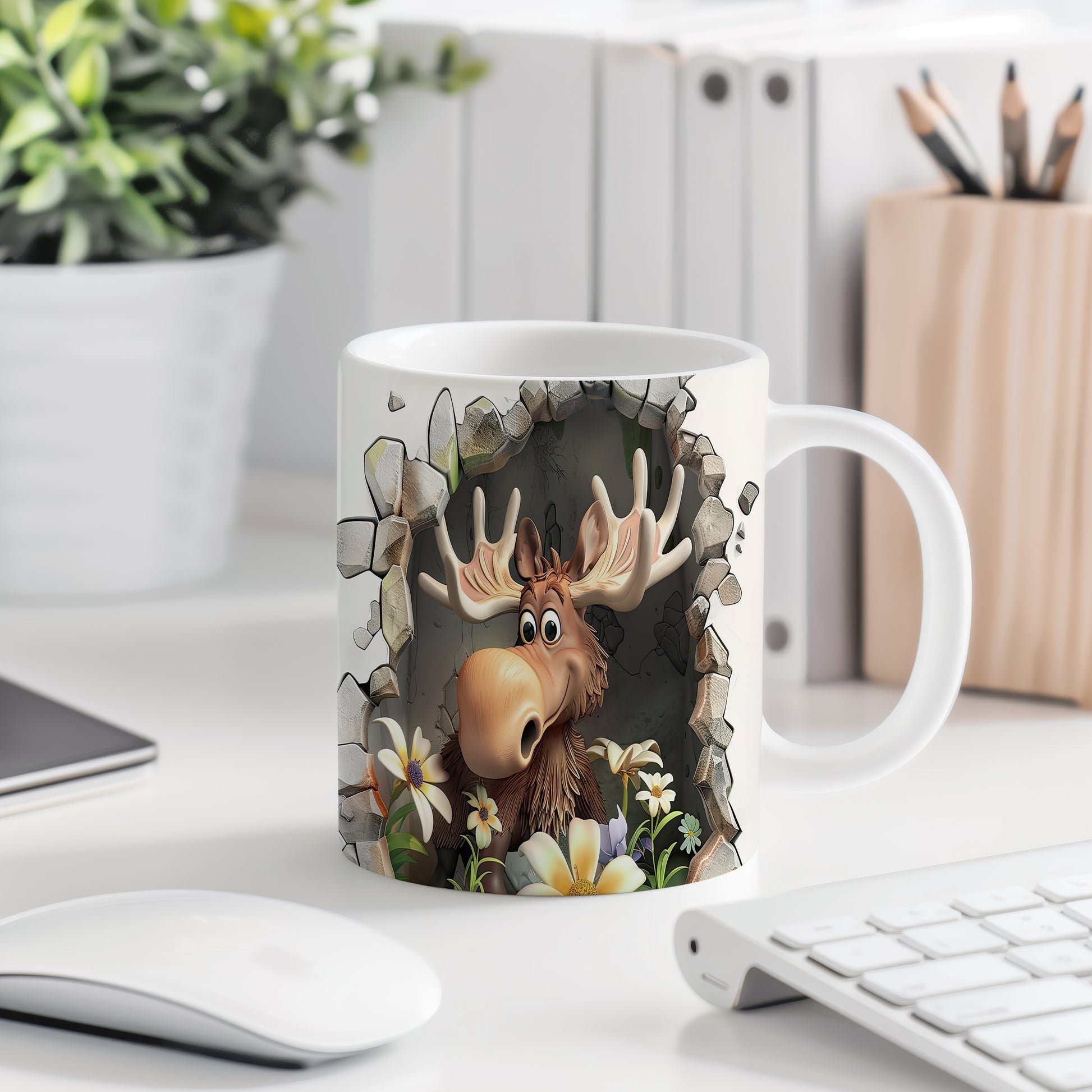 Hrnek s roztomilým losím motivem přináší hravou atmosféru a přírodní kouzlo. Je ideální pro milovníky zvířat a skvělým dárkem pro přátele či rodinu. Materiál: keramika. Objem: 330 ml. Vhodné do myčky i mikrovlnky. Tento hrnek vám zpříjemní každé sousto a dodá vašemu pití osobitý styl.