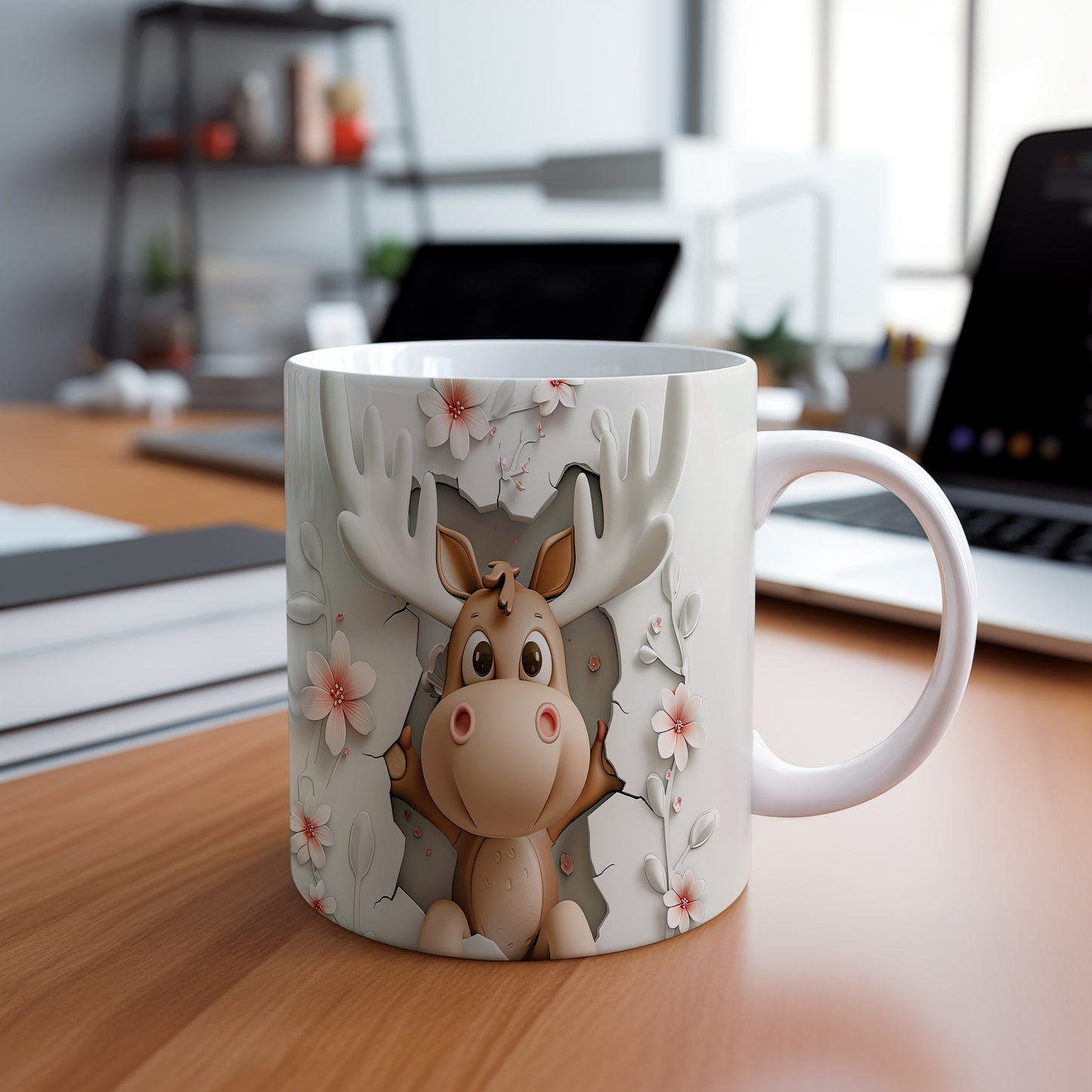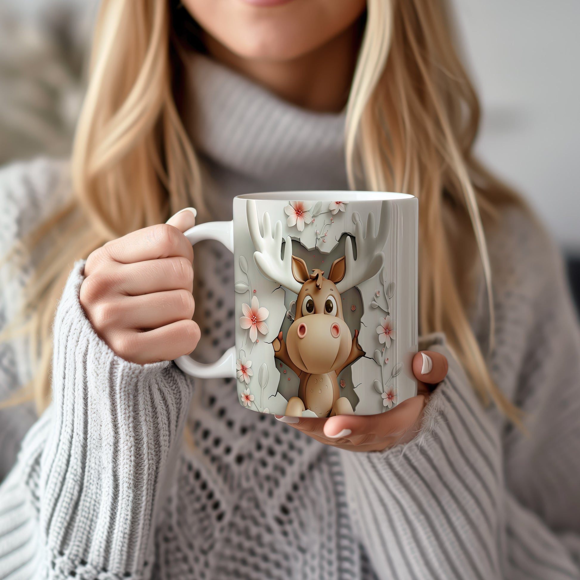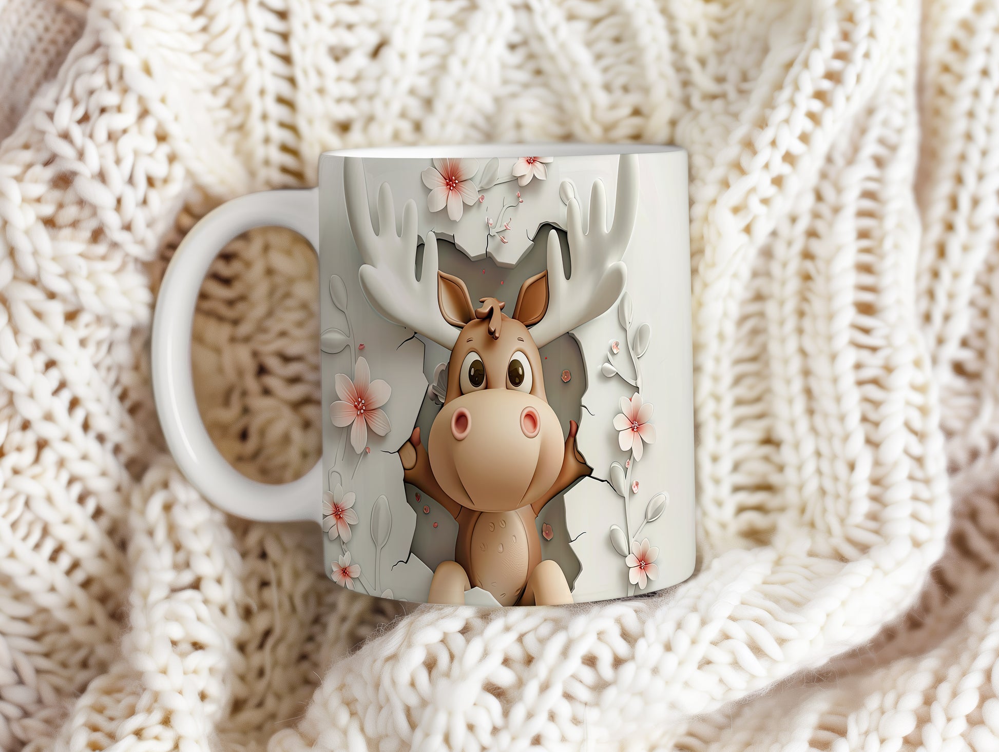 Hrnek s roztomilým losím motivem – bílým provedením