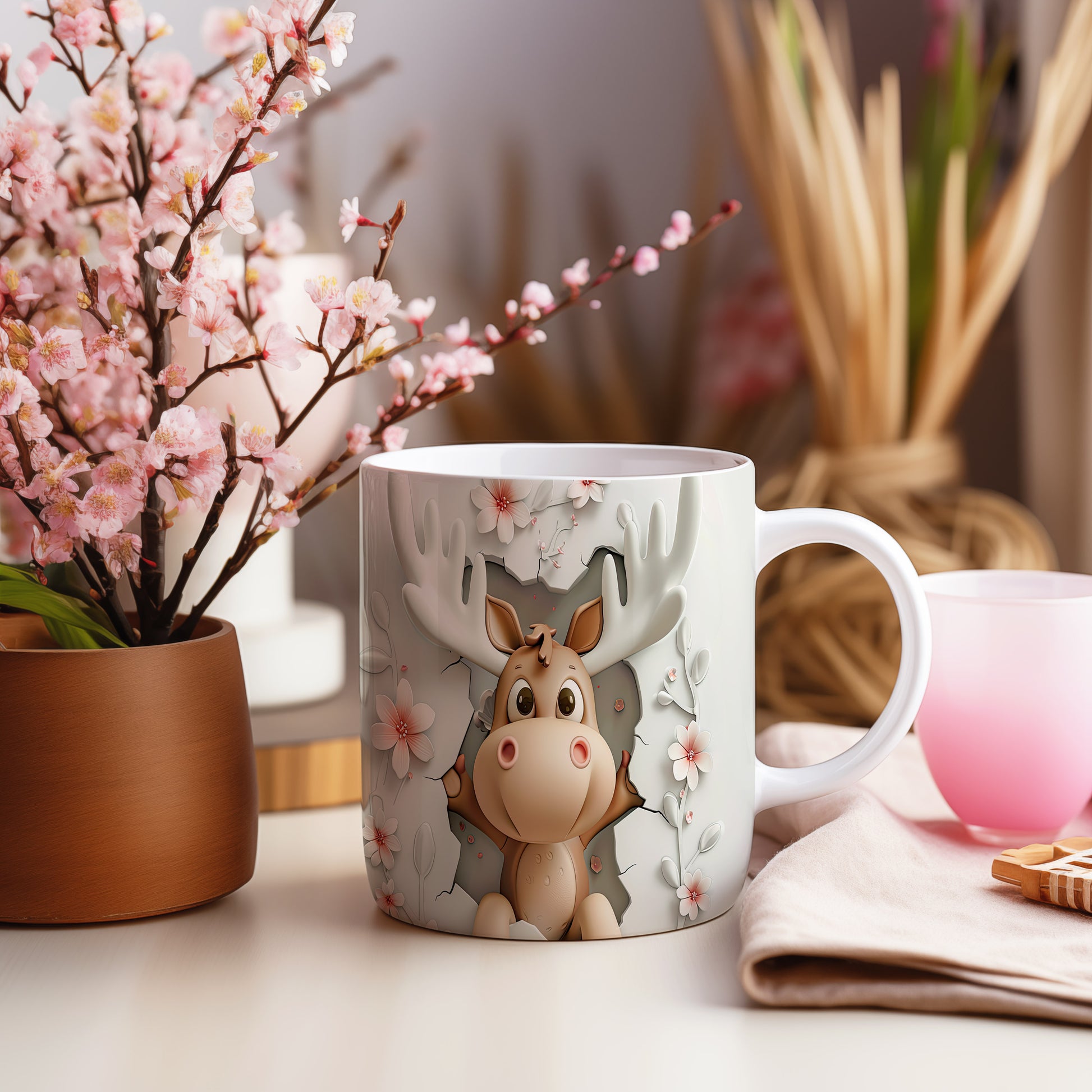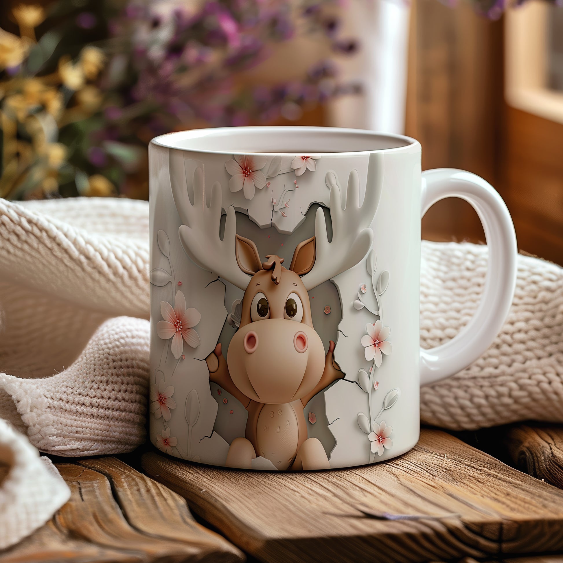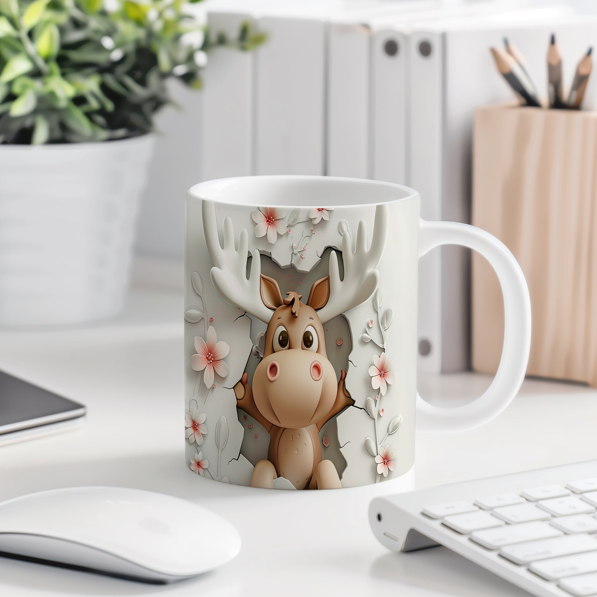 Hrnek s roztomilým losím motivem – bílým provedením