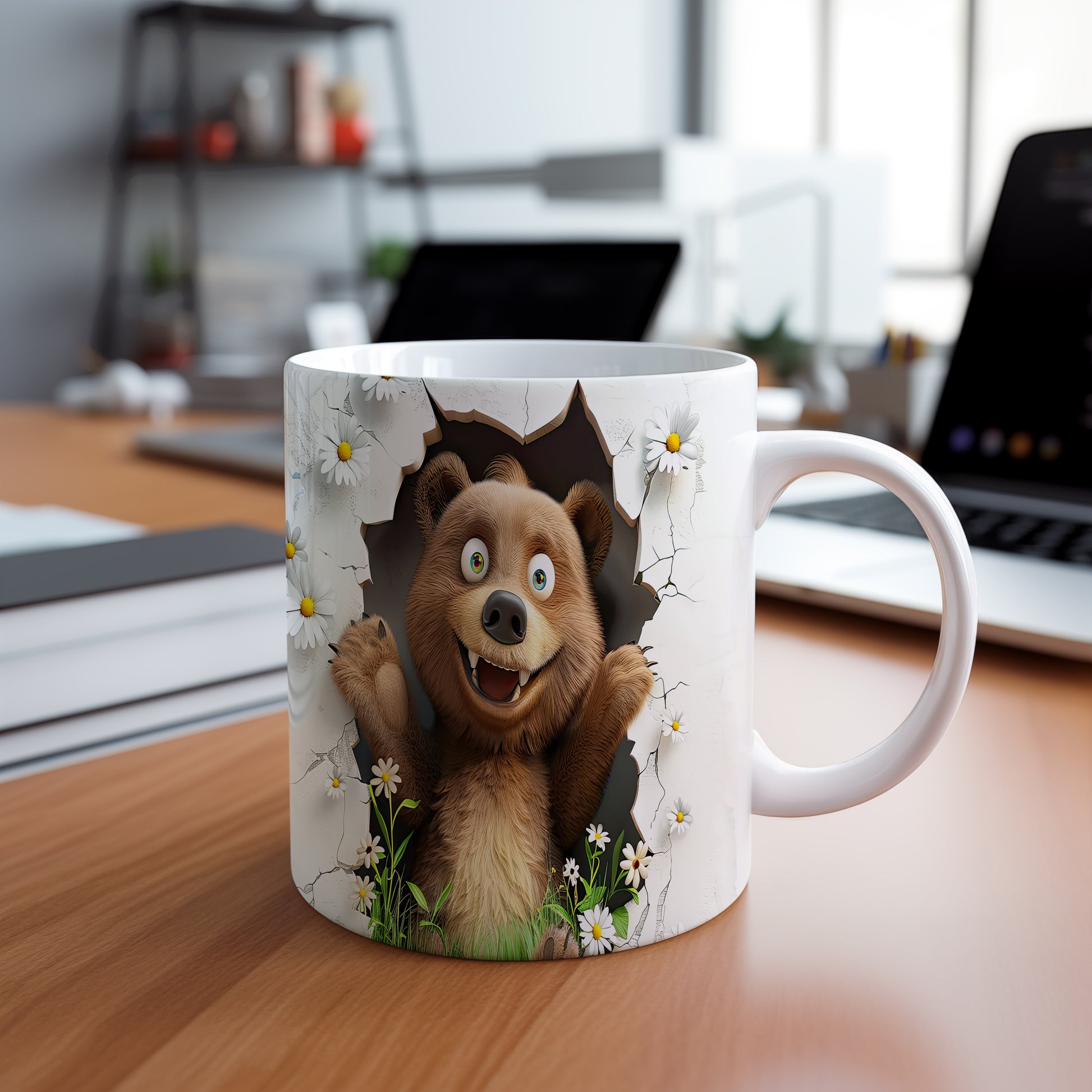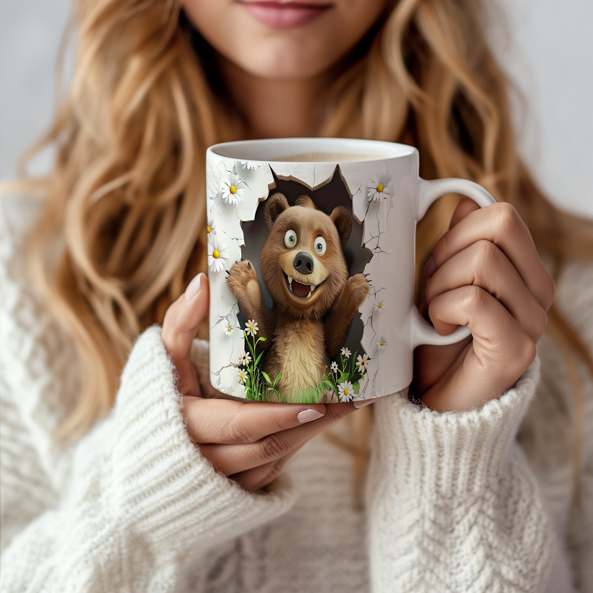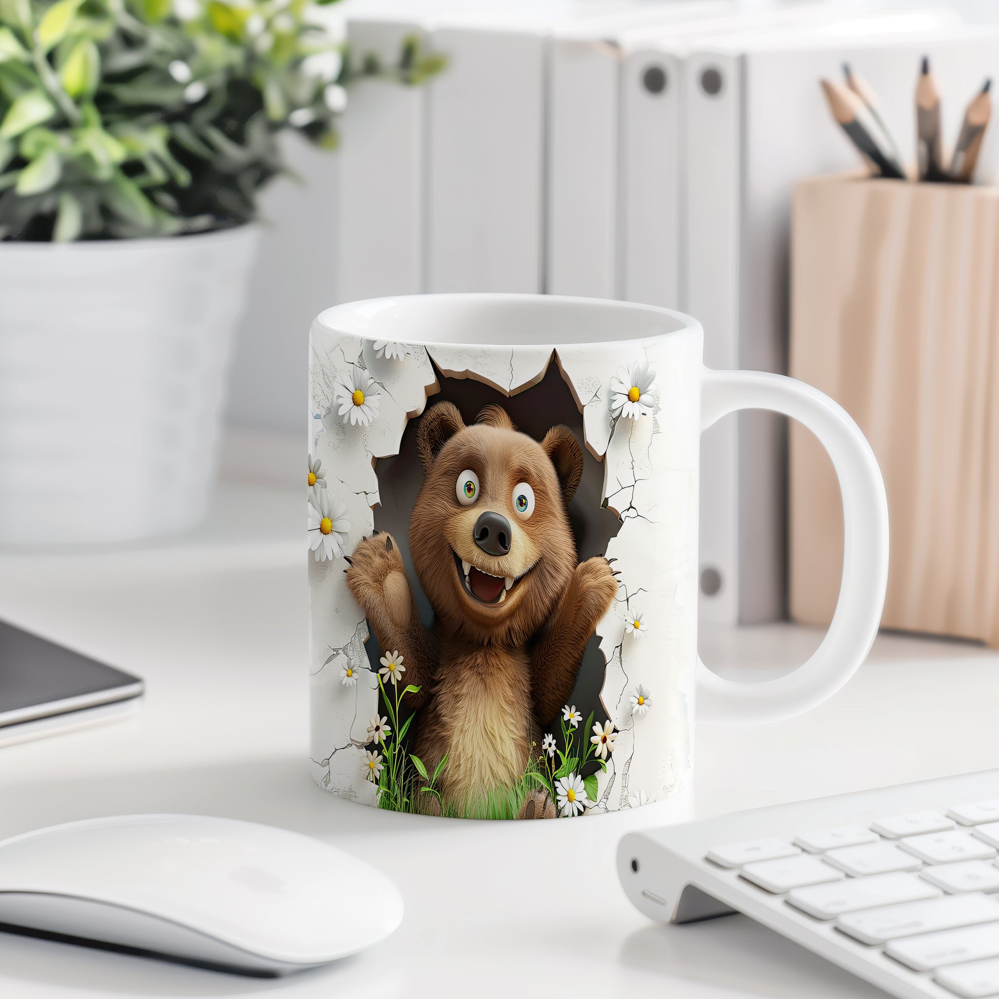 Hrnek s roztomilým medvídkem 3D efektem – bílým provedením