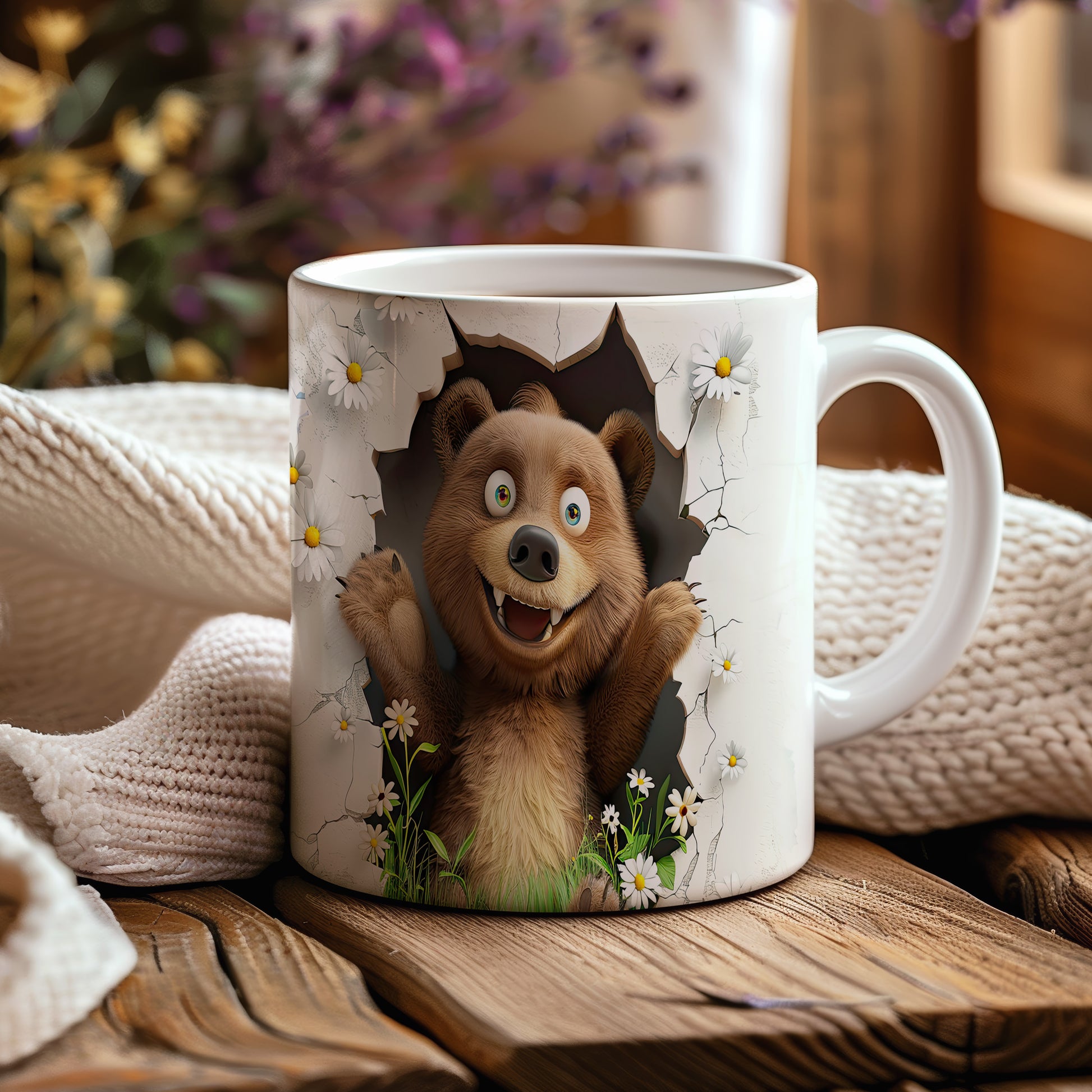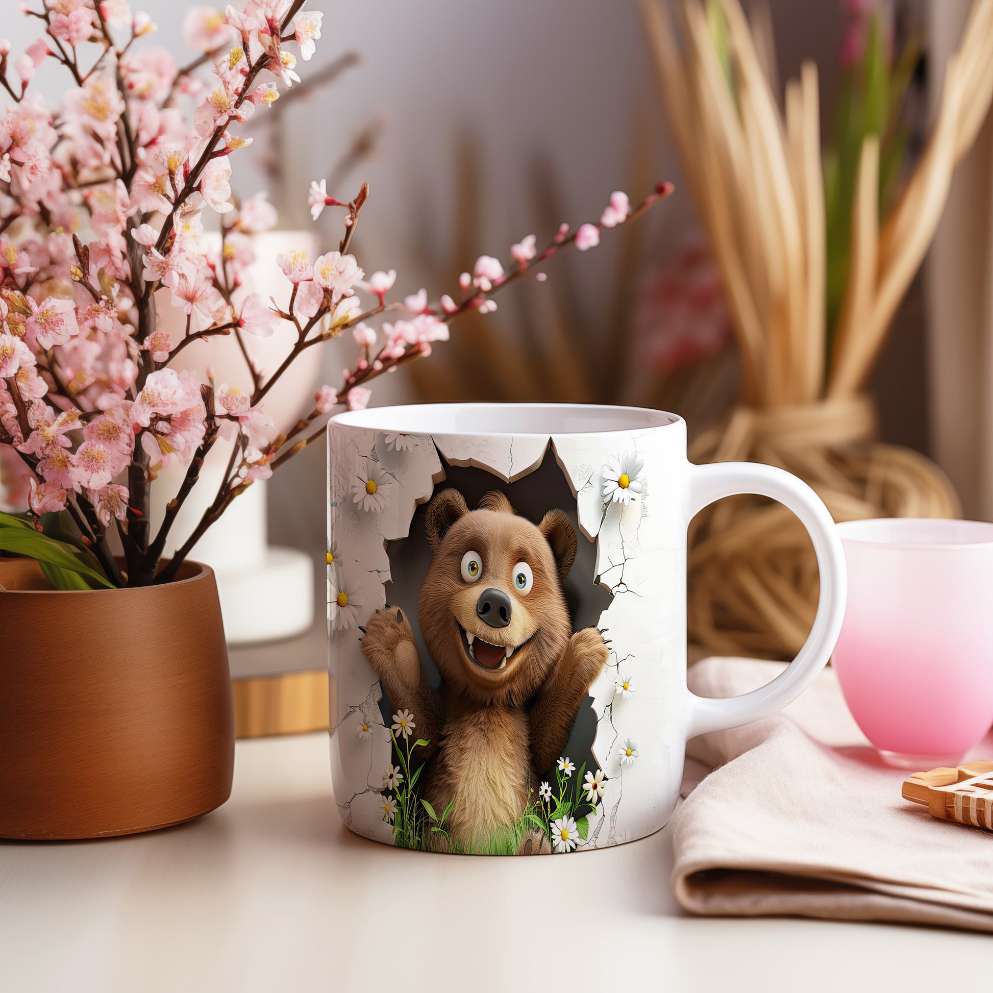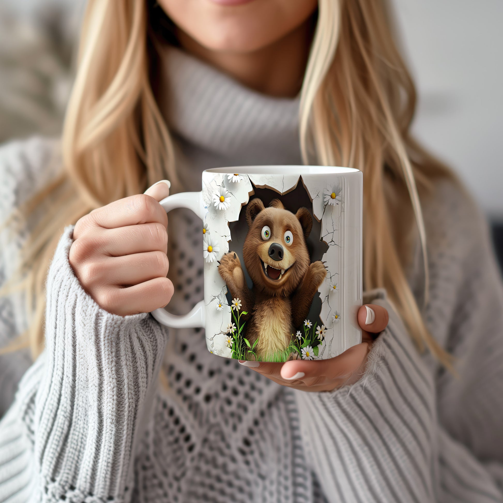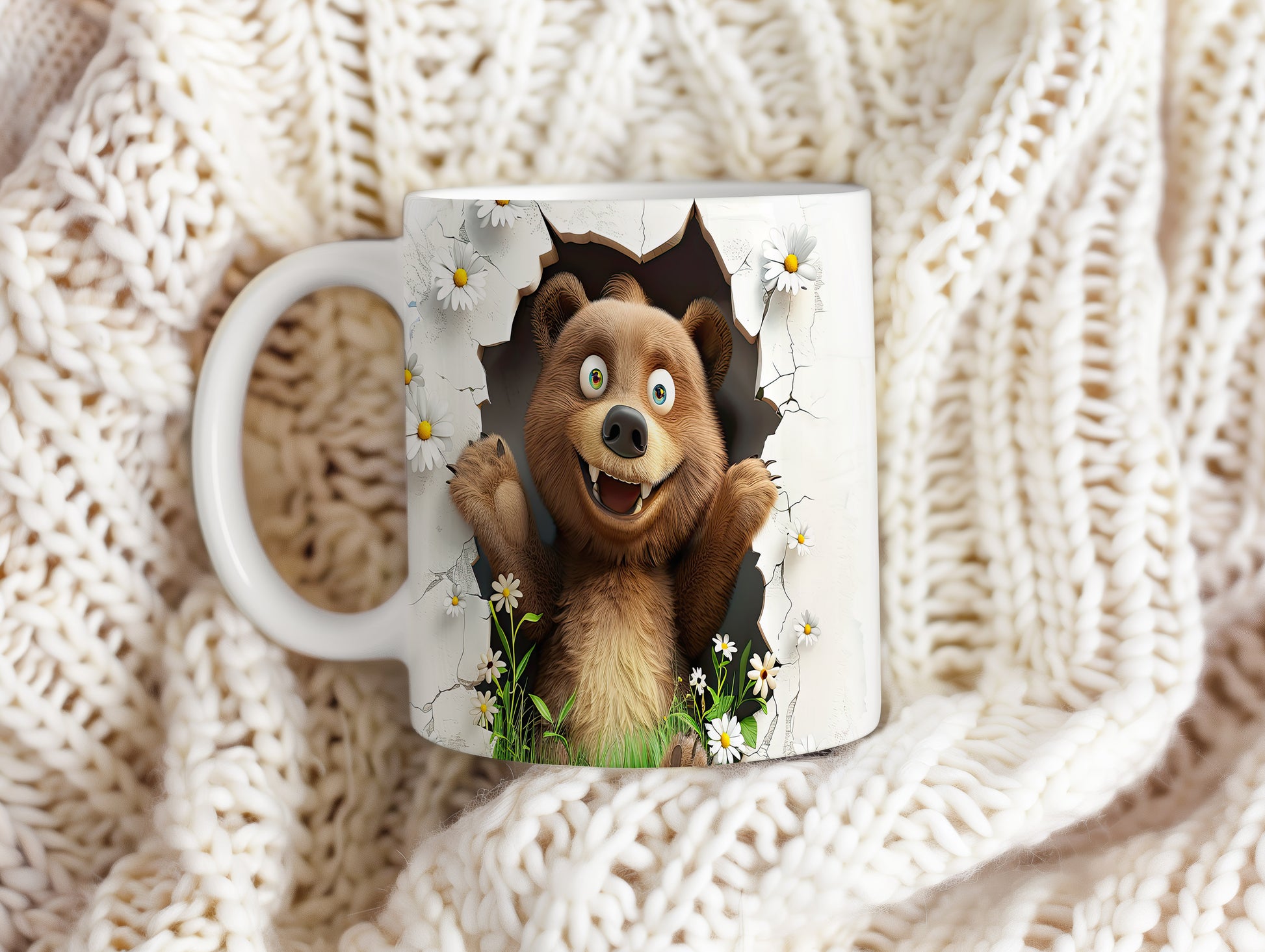 Hrnek s roztomilým medvídkem 3D efektem – bílým provedením