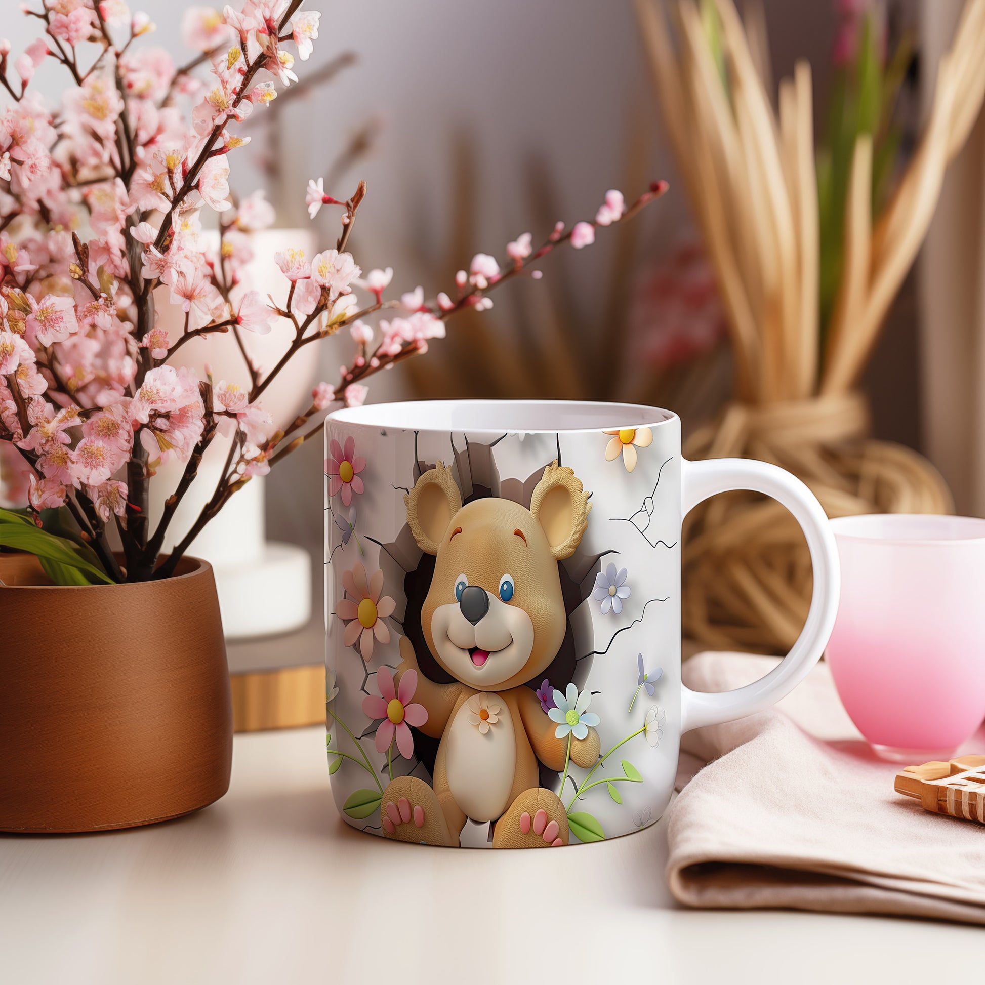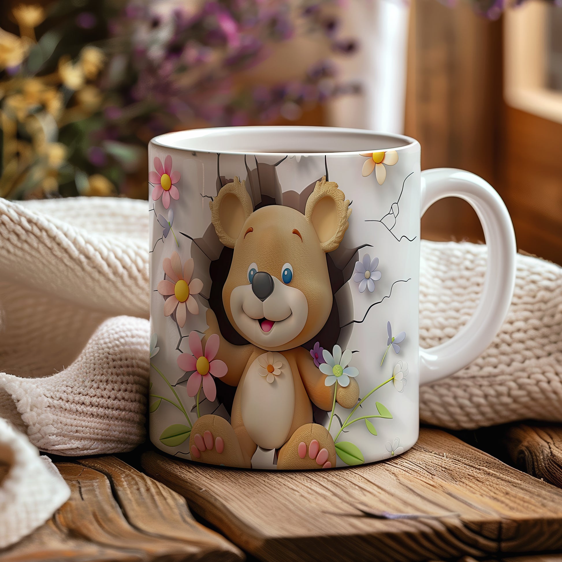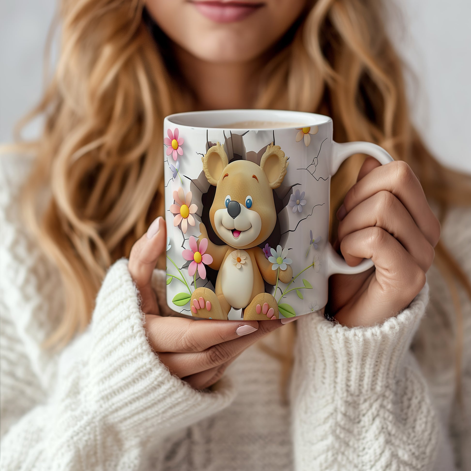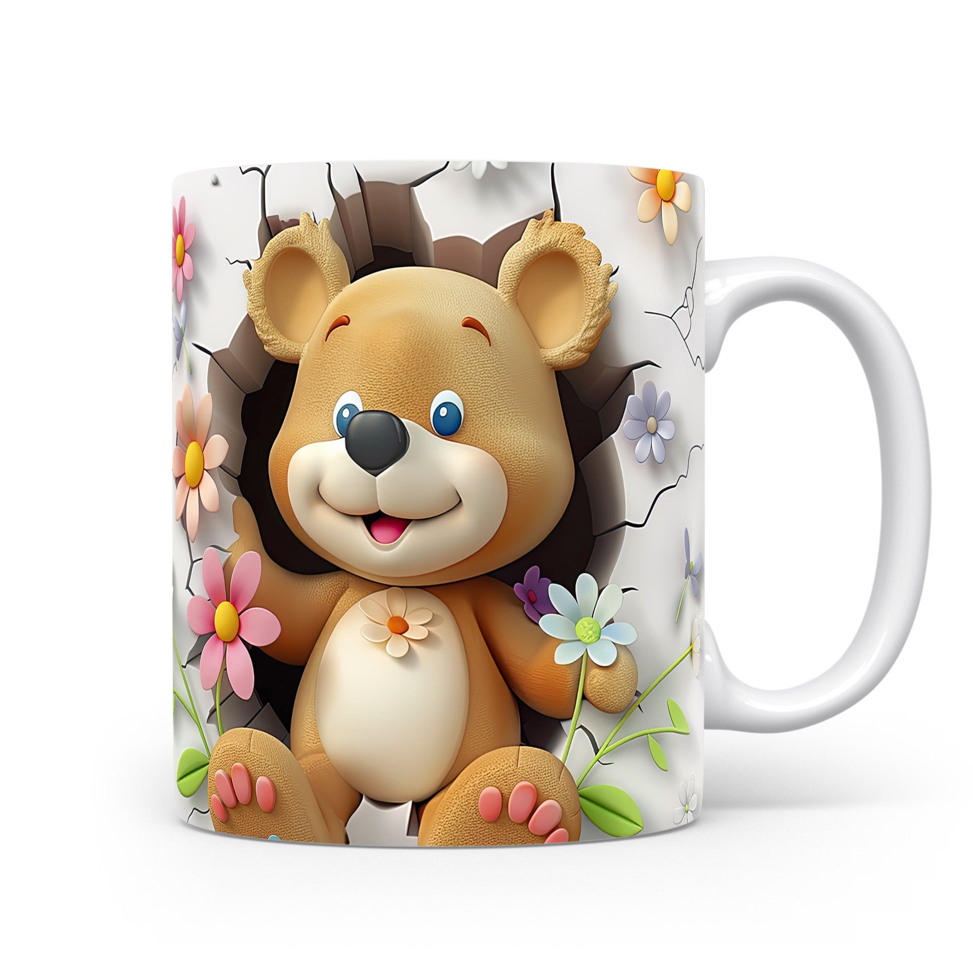 Keramický hrnek s motivem usměvavého medvídka obklopeného barevnými květinami. Tento hrnek je ideální pro děti a milovníky zvířat, skvělý tip na dárek k narozeninám nebo svátku. Materiál: keramika. Objem: 330 ml. Vhodné do myčky i mikrovlnky. Používáním tohoto hrnku si zpříjemníte každé ráno s úsměvem.