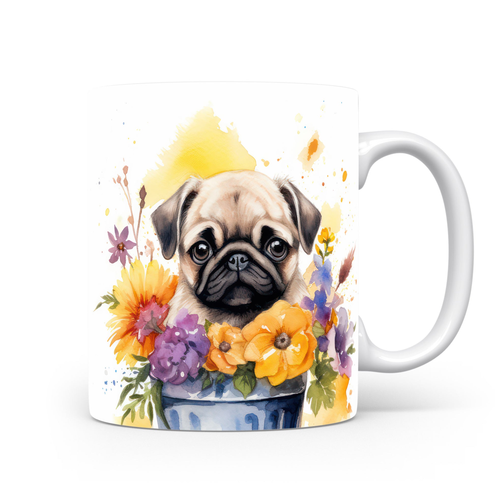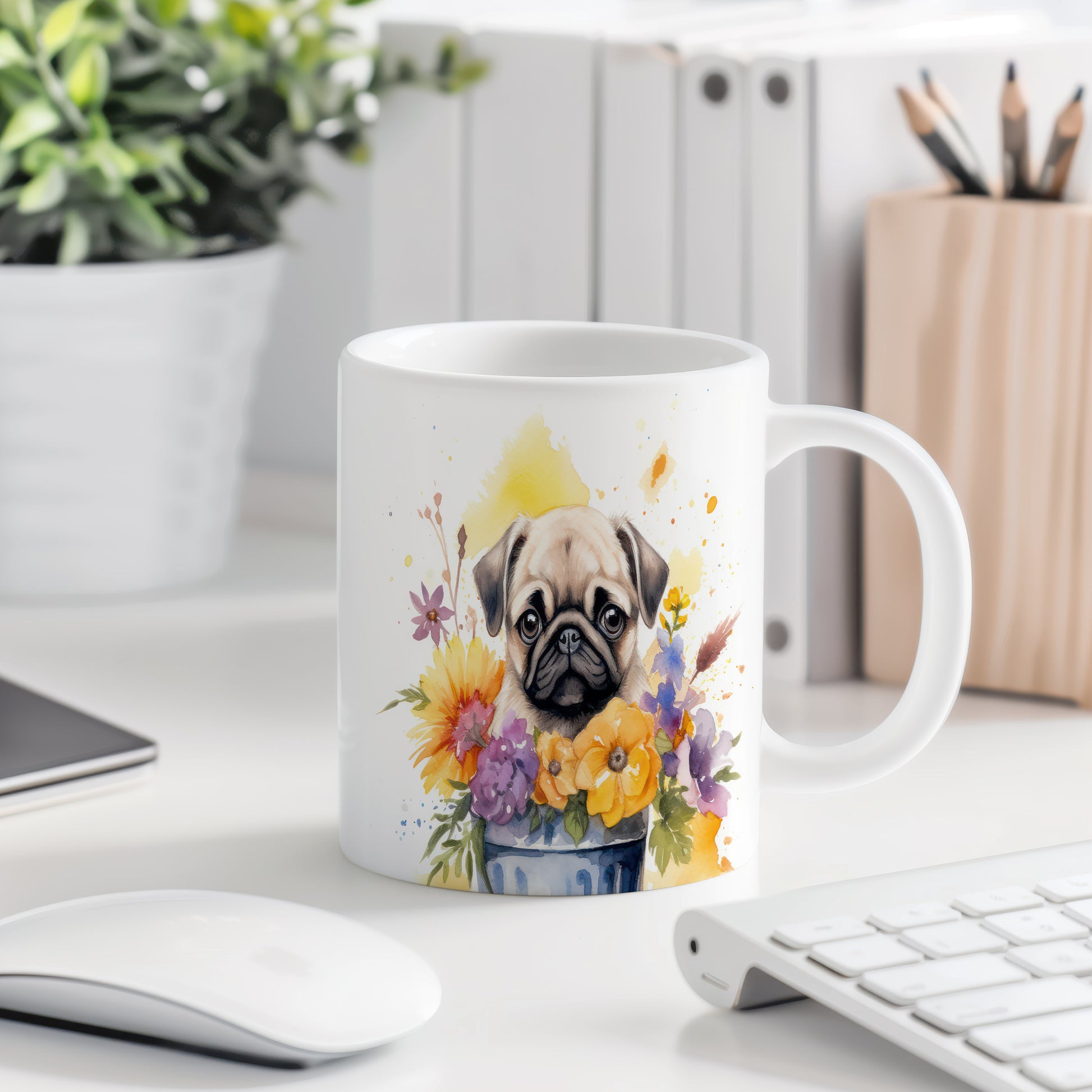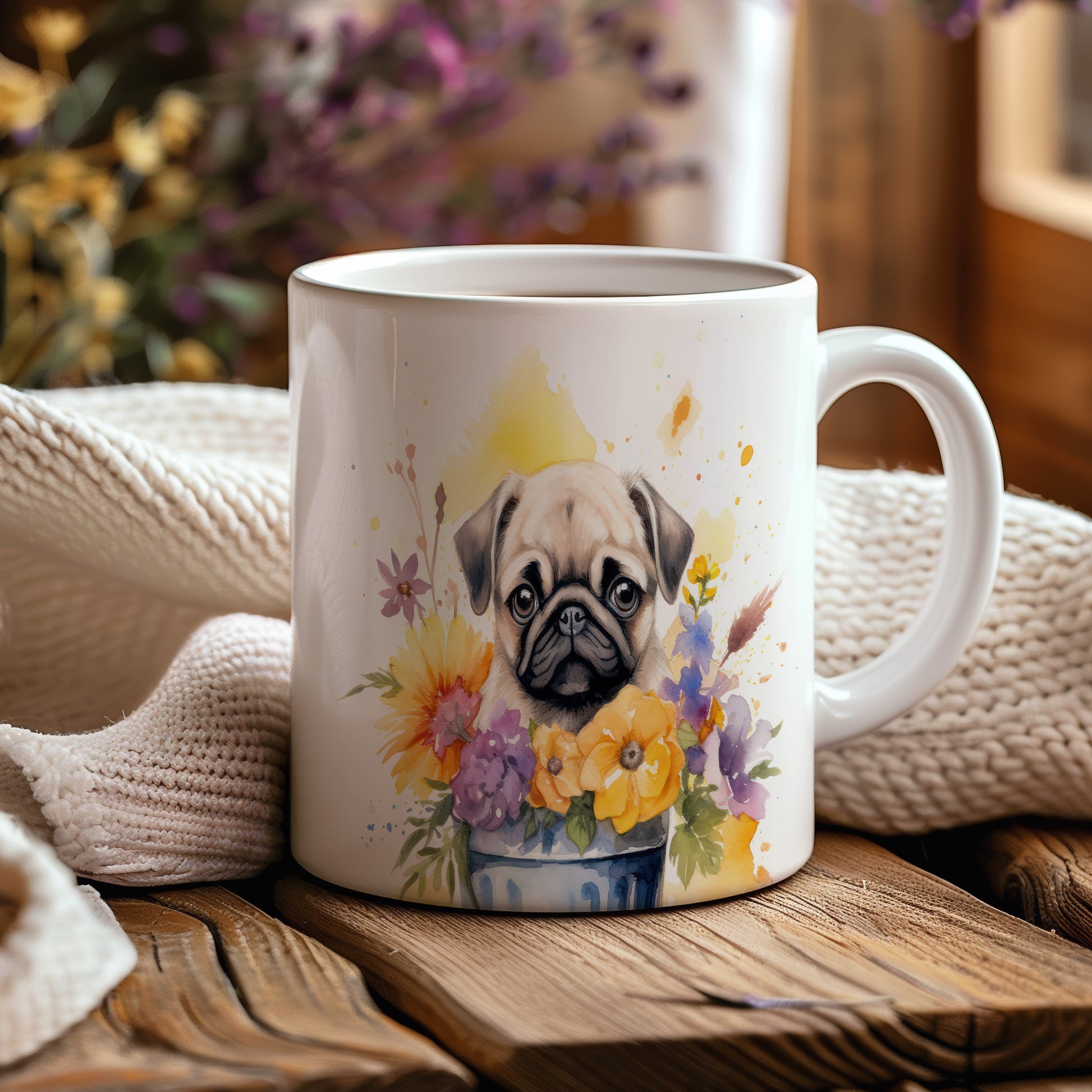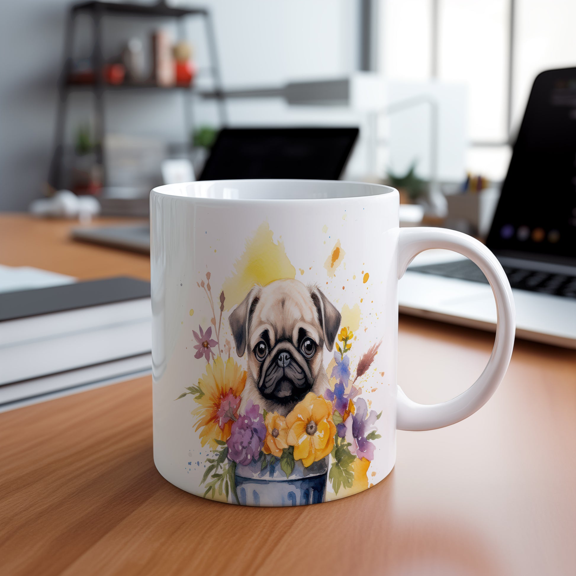 Hrnek s roztomilým mopsem v květinách je ideální pro milovníky zvířat a přírody. Tento hrnek potěší každého, kdo ocení krásu a hravost. Materiál: keramika. Objem: 330 ml. Vhodné do myčky i mikrovlnky. Používání tohoto hrnku přináší radost z každého doušku.