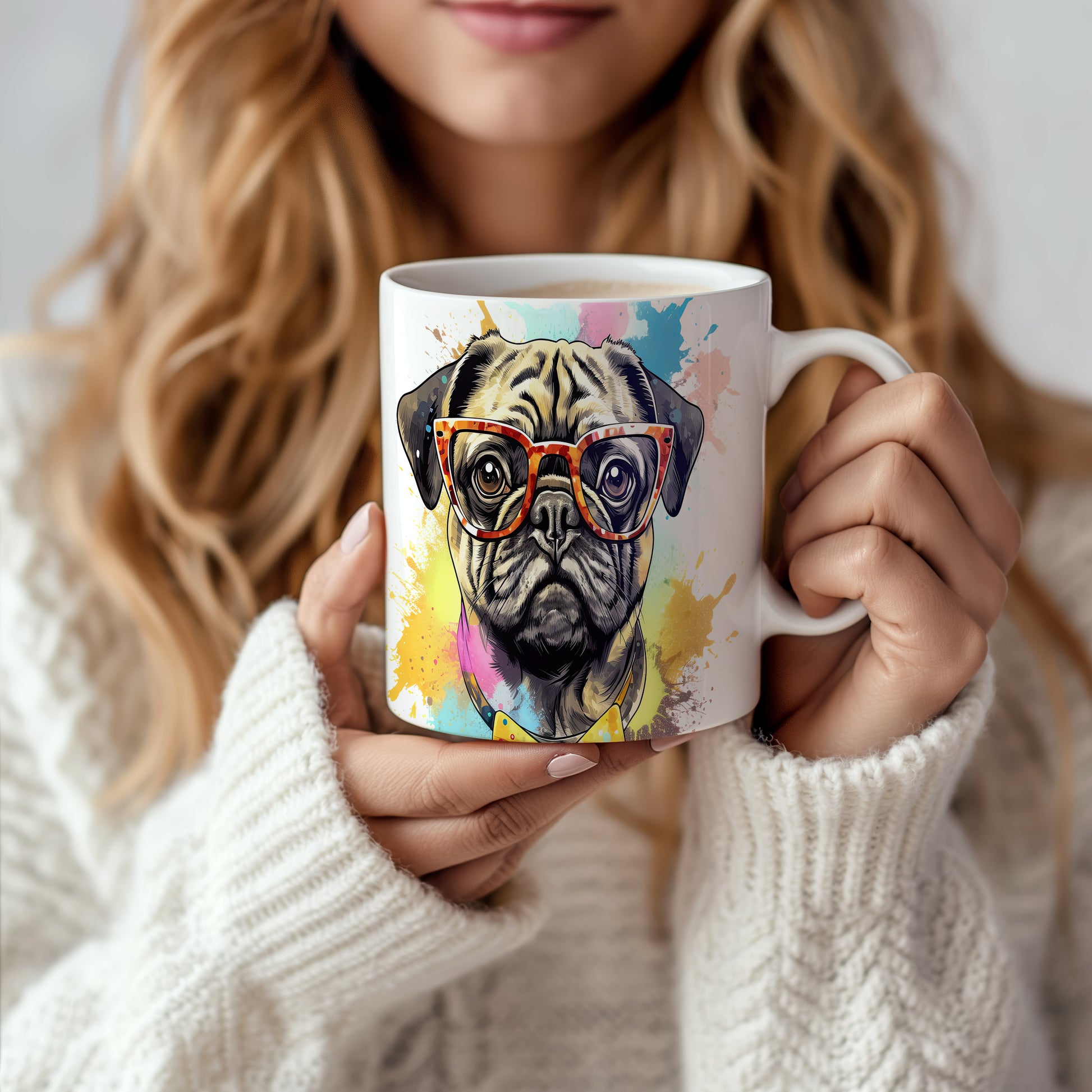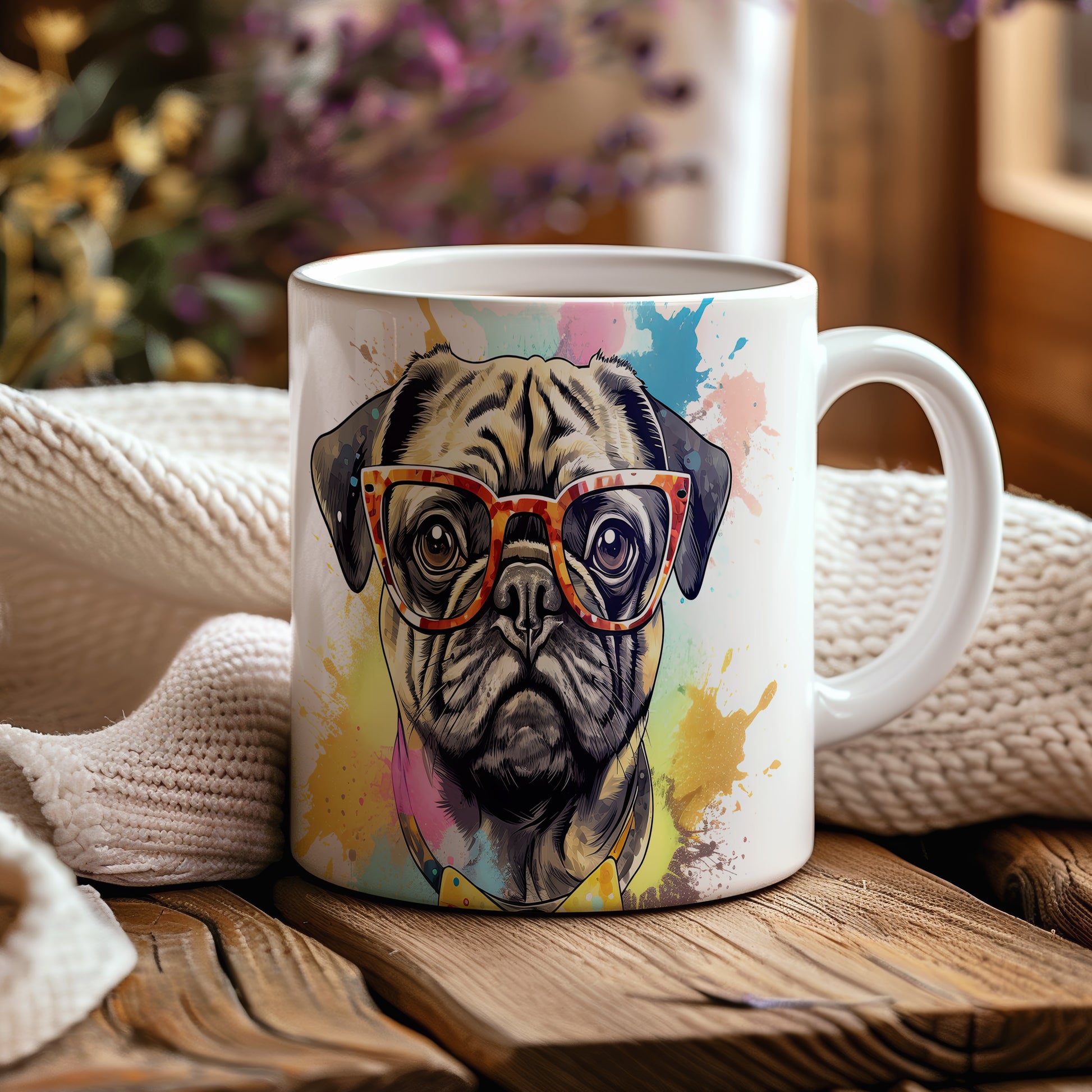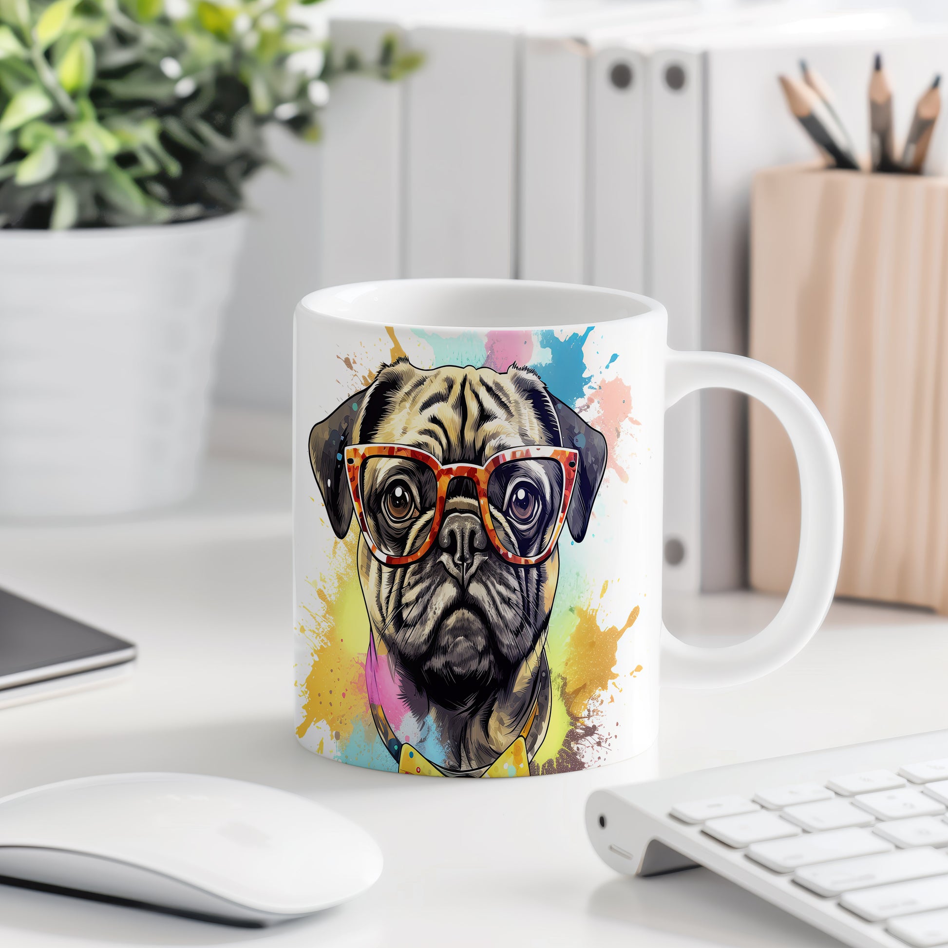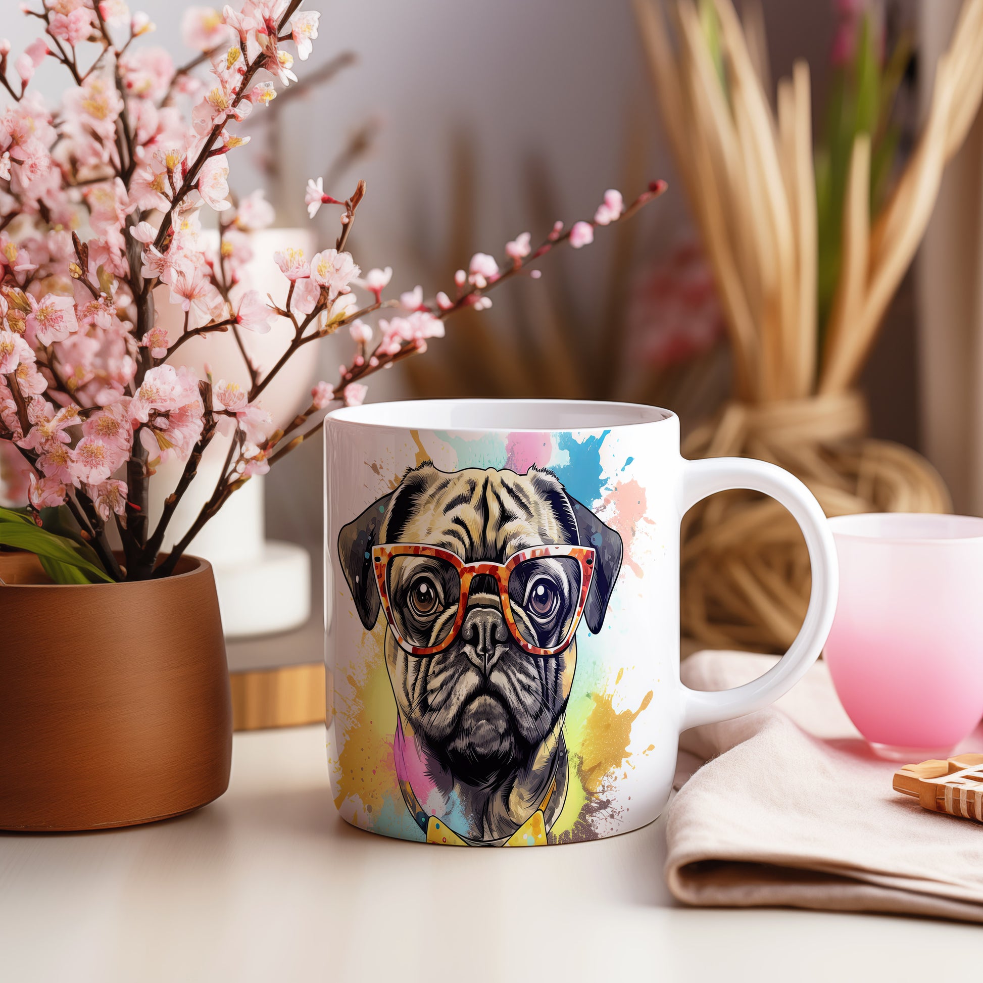 Hrnek s roztomilým mopslíkem v brýlích je skvělým doplňkem pro milovníky psů a zvířat. Tento hrnek potěší každého, kdo si rád vychutnává kávu nebo čaj. Materiál: keramika. Objem: 330 ml. Vhodné do myčky i mikrovlnky. Používáním tohoto hrnku si zpříjemníte každodenní chvíle s oblíbeným nápojem.