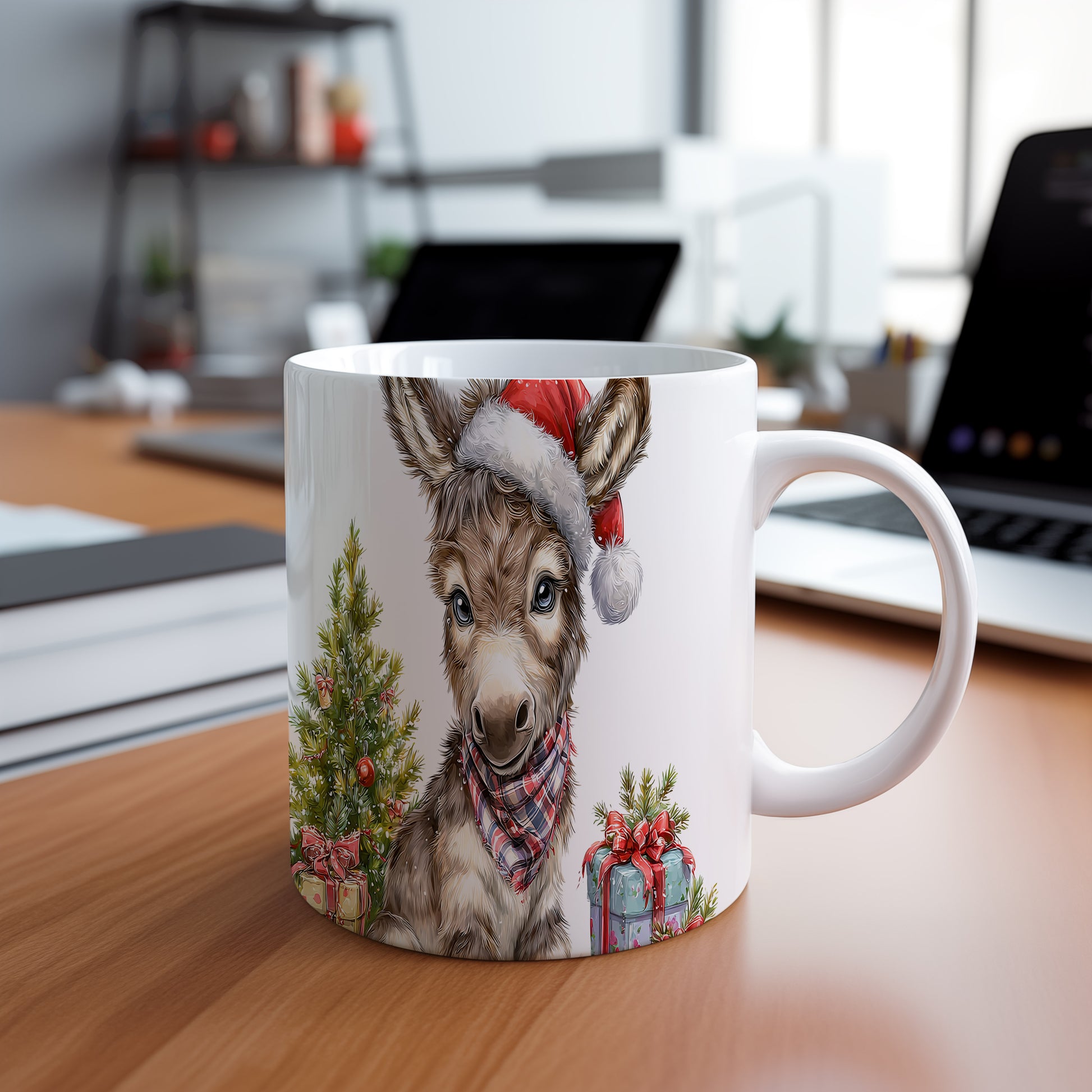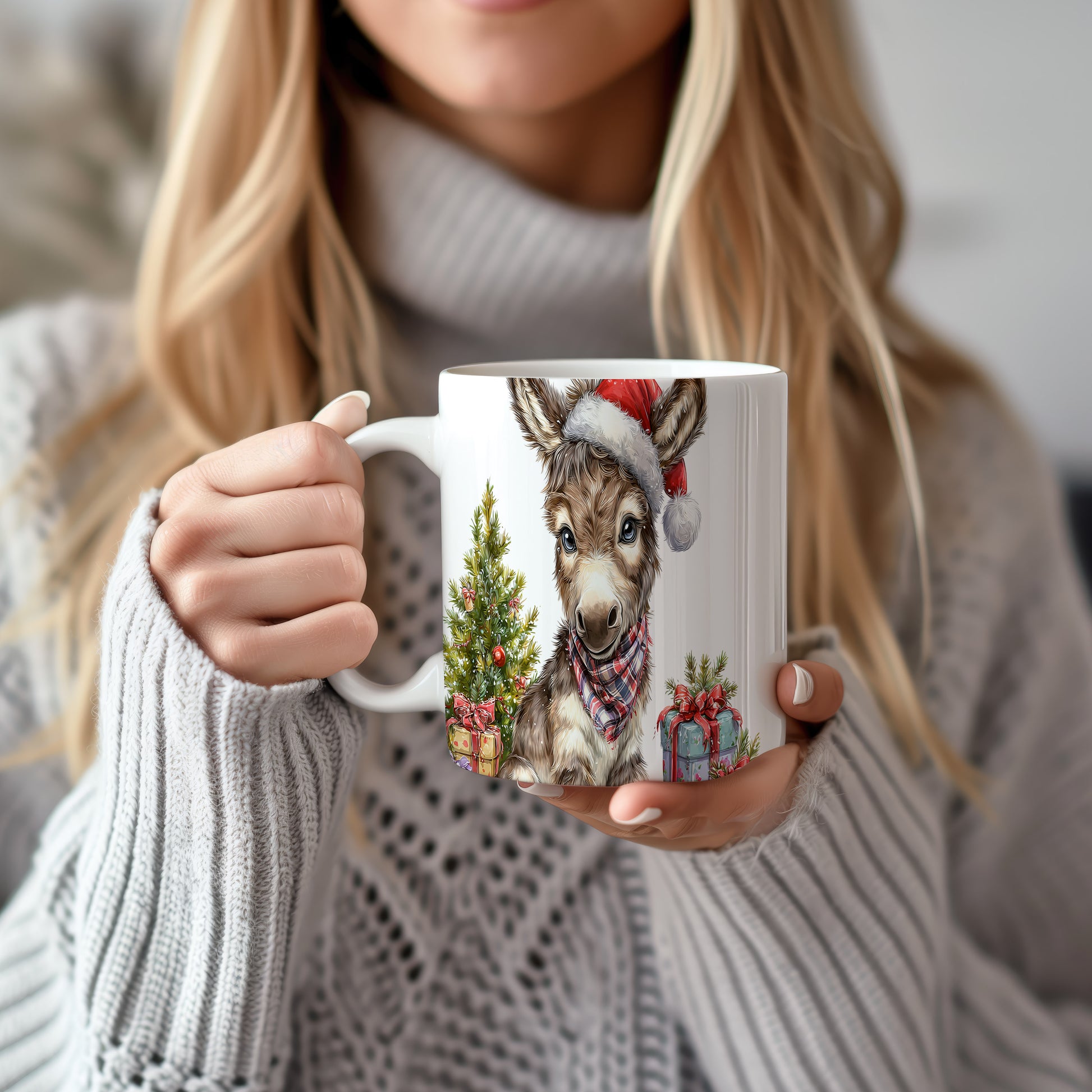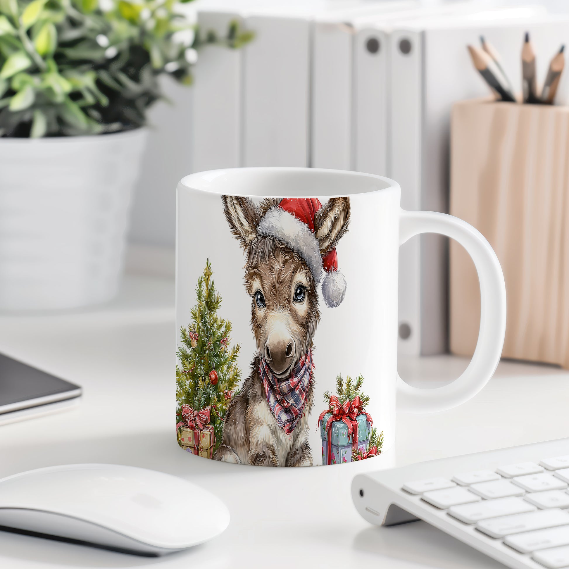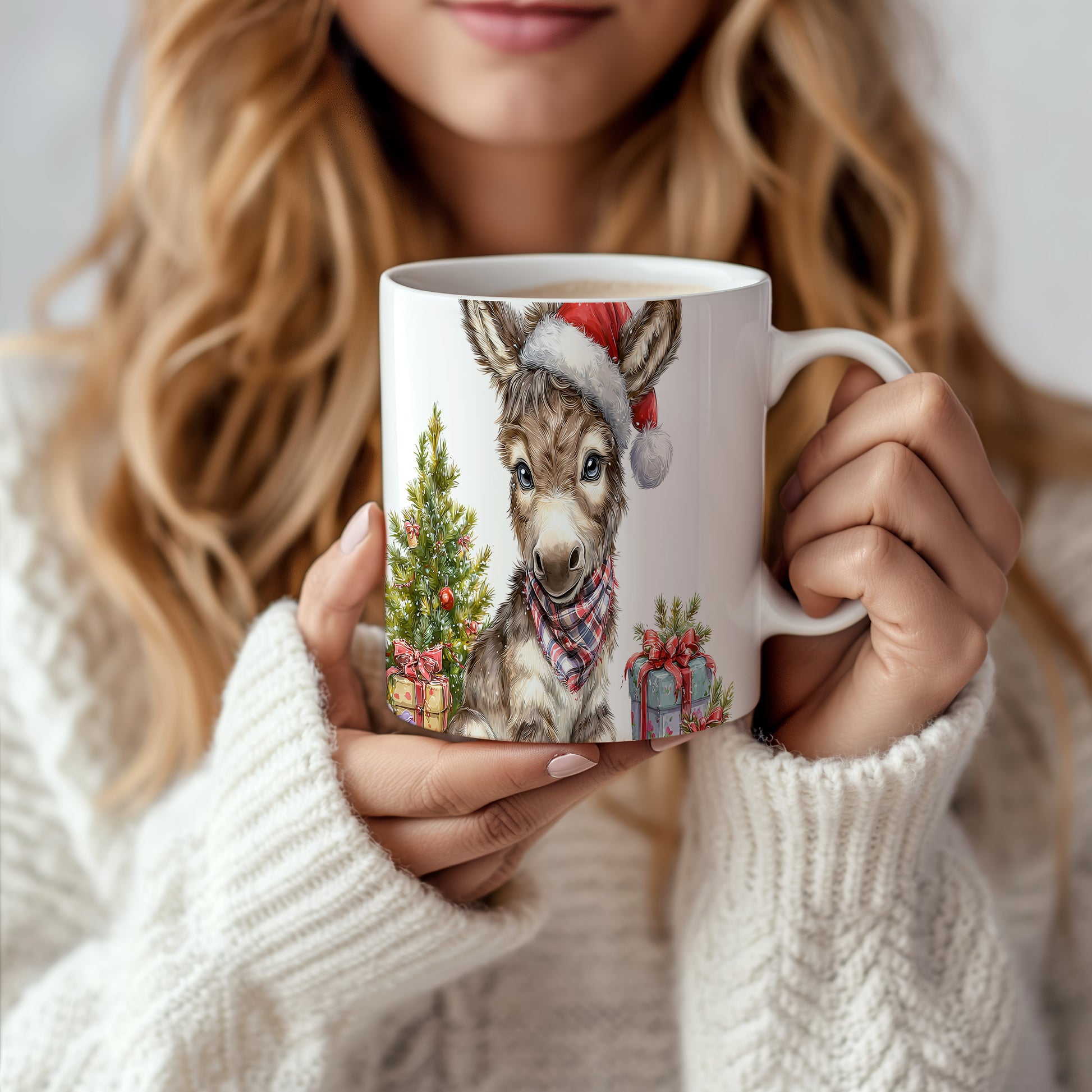 Tento hrnek s motivem roztomilého oslíka v čepici a šátku přináší vánoční atmosféru. Je ideální pro milovníky zvířat a skvělým dárkem pro děti i dospělé. Materiál: keramika. Objem: 330 ml. Vhodné do myčky i mikrovlnky. Užívejte si svůj oblíbený nápoj s úsměvem díky tomuto veselému hrnku.