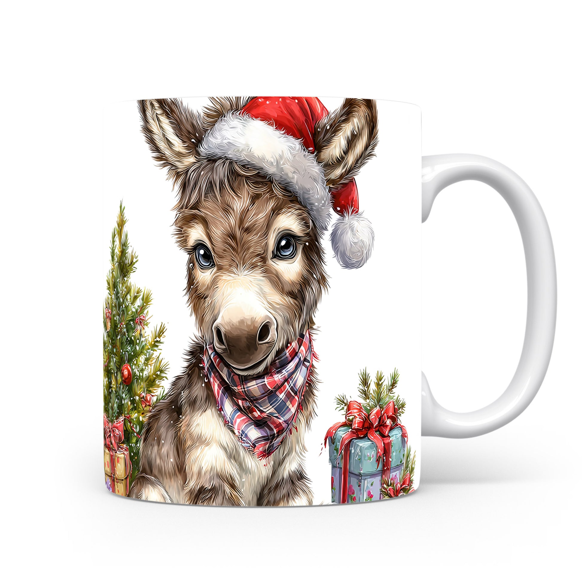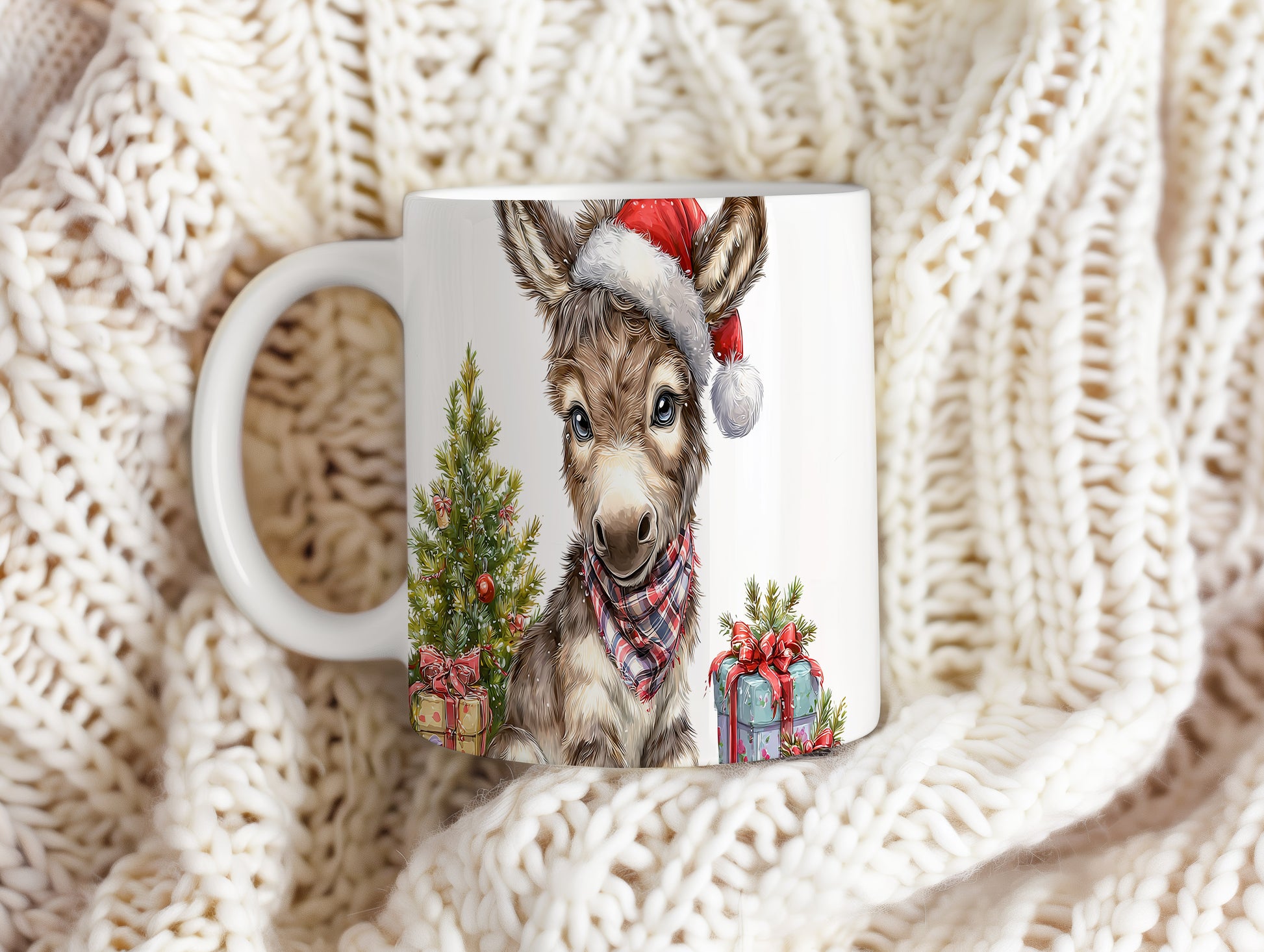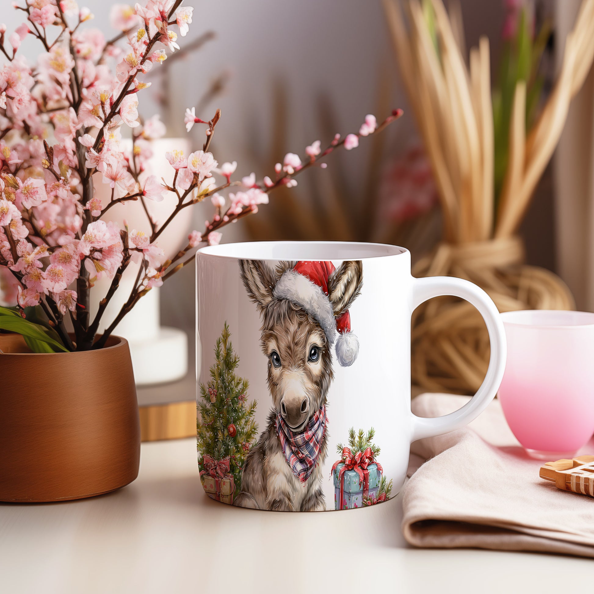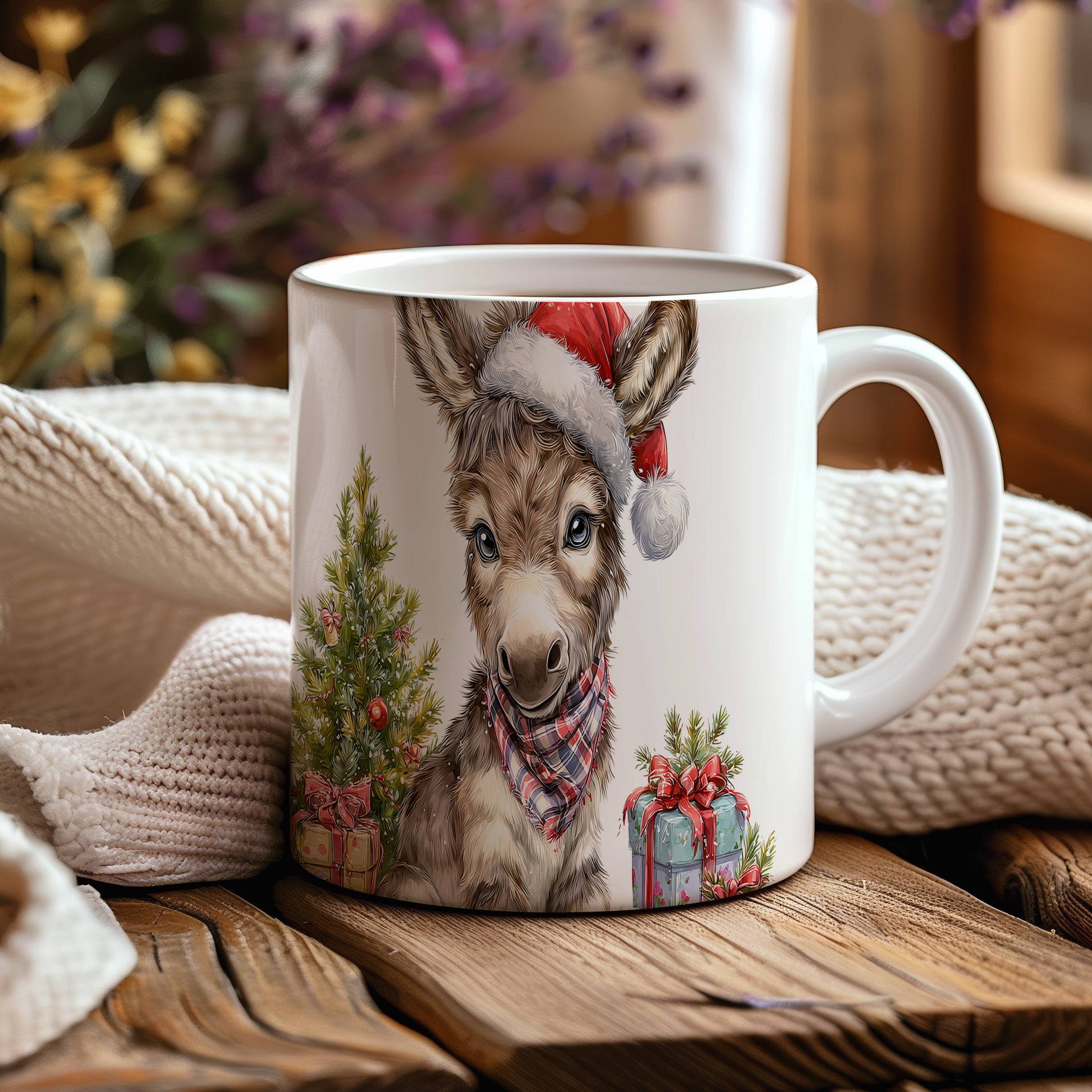 Tento hrnek s motivem roztomilého oslíka v čepici a šátku přináší vánoční atmosféru. Je ideální pro milovníky zvířat a skvělým dárkem pro děti i dospělé. Materiál: keramika. Objem: 330 ml. Vhodné do myčky i mikrovlnky. Užívejte si svůj oblíbený nápoj s úsměvem díky tomuto veselému hrnku.