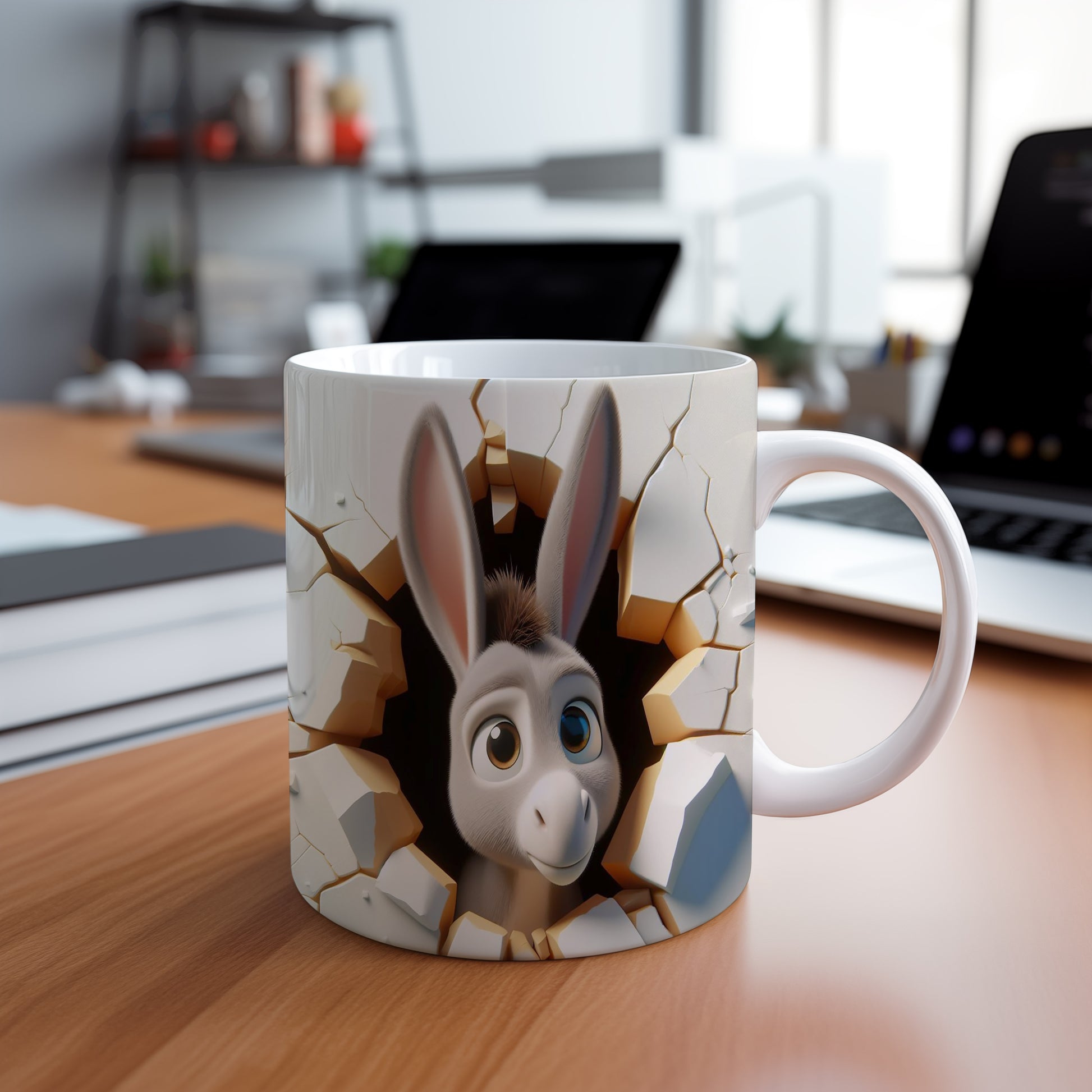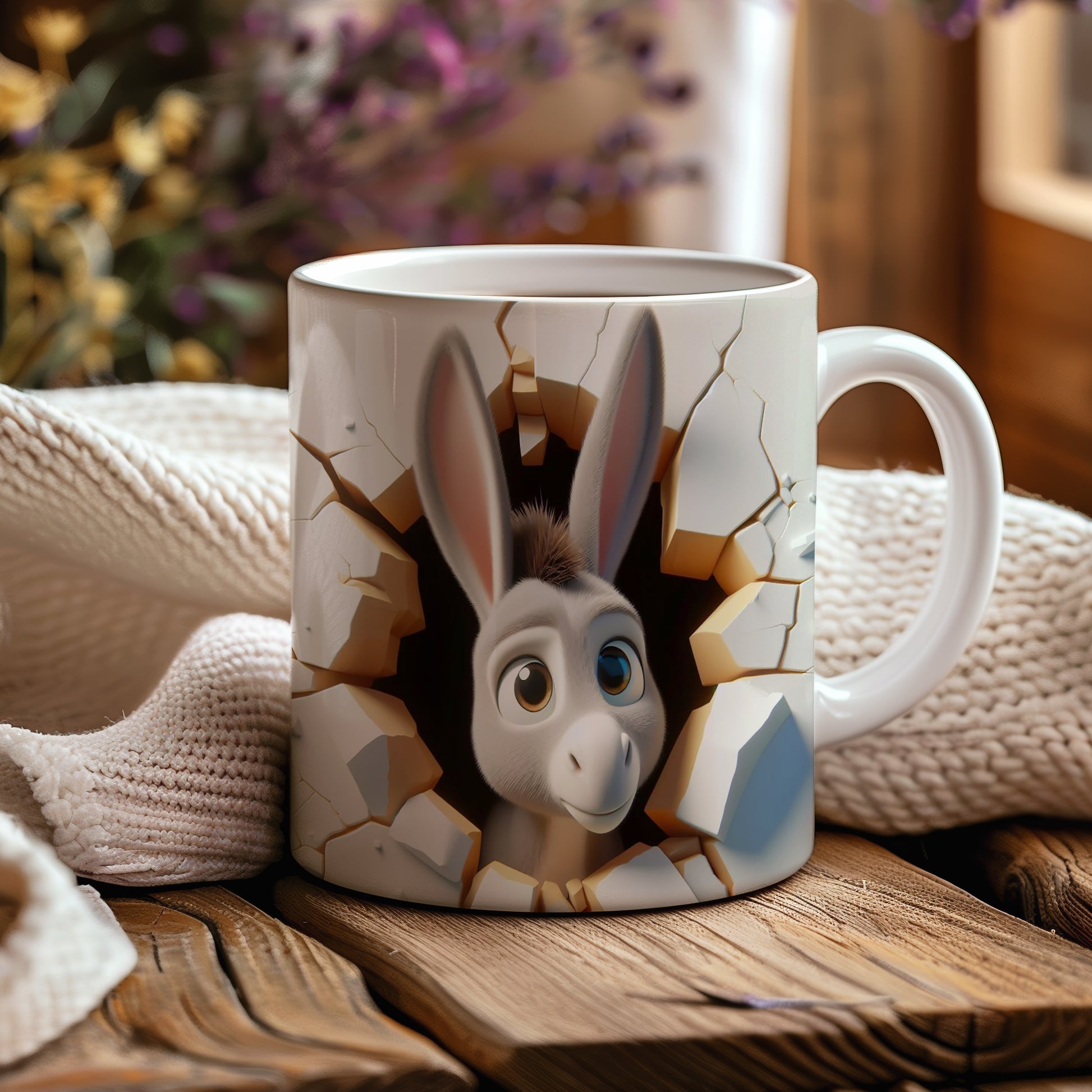 Hrnek zobrazuje roztomilého osla, který se na vás usmívá. Tento veselý motiv potěší každého milovníka zvířat a je skvělým dárkem pro přátele či rodinu. Materiál: keramika. Objem: 330 ml. Vhodné do myčky i mikrovlnky. Používání tohoto hrnku přináší radost do každodenního pití.